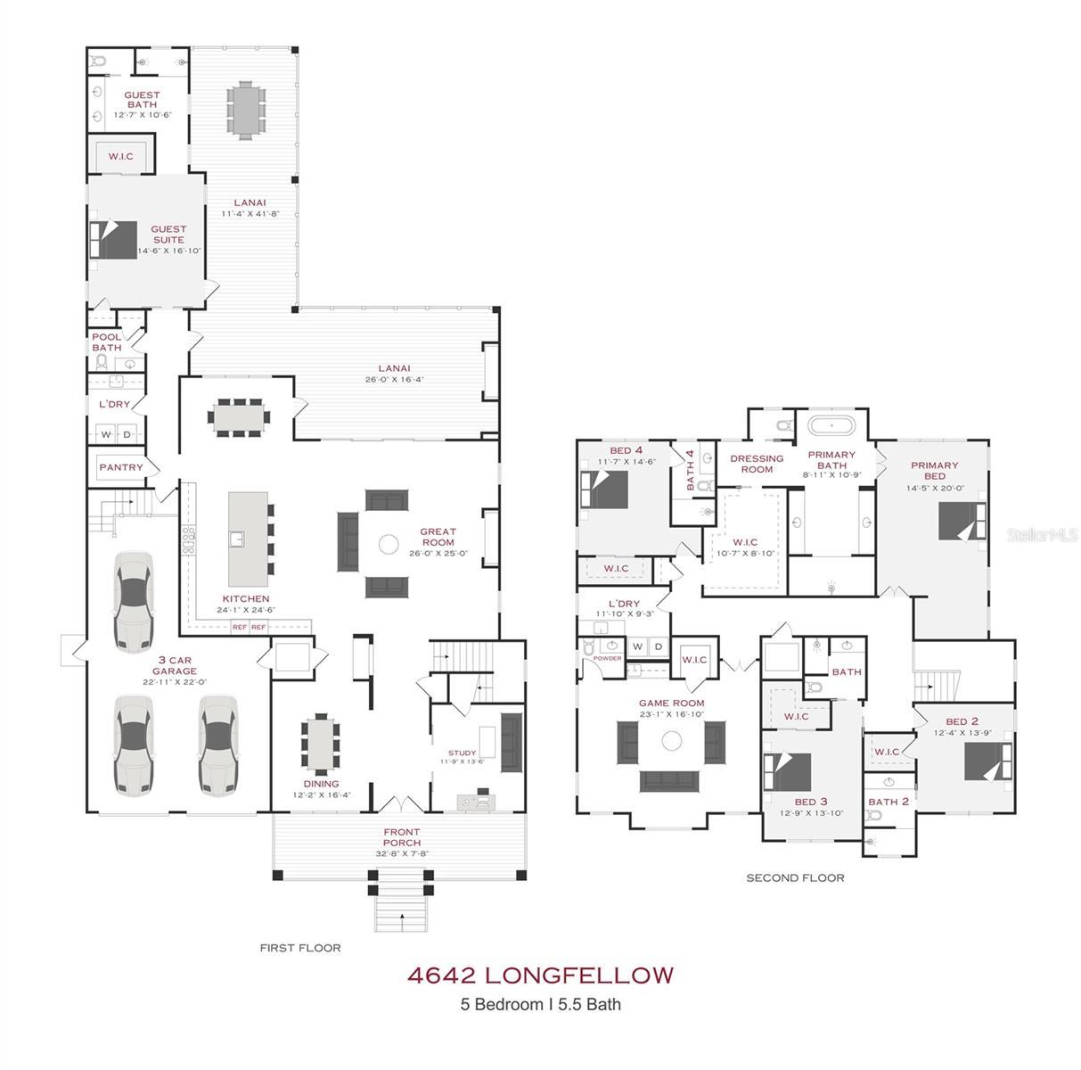 Under Construction. Welcome to the "Streamsong", the latest design by Taralon Homes. Located in the highly sought after Sunset Park neighborhood of South Tampa. This 5 bedroom, 5/2 bath home rests on an exceptional 200 foot deep site and features a Transitional style elevation with clean lines, sand stucco finish, square columns and a gable roof design with metal accents. Features include an open concept floorplan with spacious living and dining areas, saltwater pool and spa, 943sf covered lanai, outdoor kitchen, and a paver driveway. The first floor includes a Study, Dining Room, Great Room with fireplace, a Chef's kitchen with center island, Wolf/Subzero appliances and a luxury guest suite with private access to the covered lanai and pool. The second floor includes a well-appointed primary suite with exceptional spa-bath, a generous Game Room with wet bar and its own walk-in storage closet, and laundry room. Three additional bedrooms each with ensuite baths and walk-in closets, completes the second level. The home features 7.5" Naturally Aged Medallion Collection wood flooring, 7" crown molding and baseboards, insulated Low-E impact windows, Level 5 drywall finish on walls and ceilings, 2 tankless water heaters, solid core doors throughout, gas fireplace, and a 3-car garage. Additionally space for an elevator has been framed, should it be required by the family in the future. Located in a top-rated school district and just minutes to TIA, restaurants, shopping, and Gulf beaches. Construction is moving ahead of its scheduled completion in March 2026.