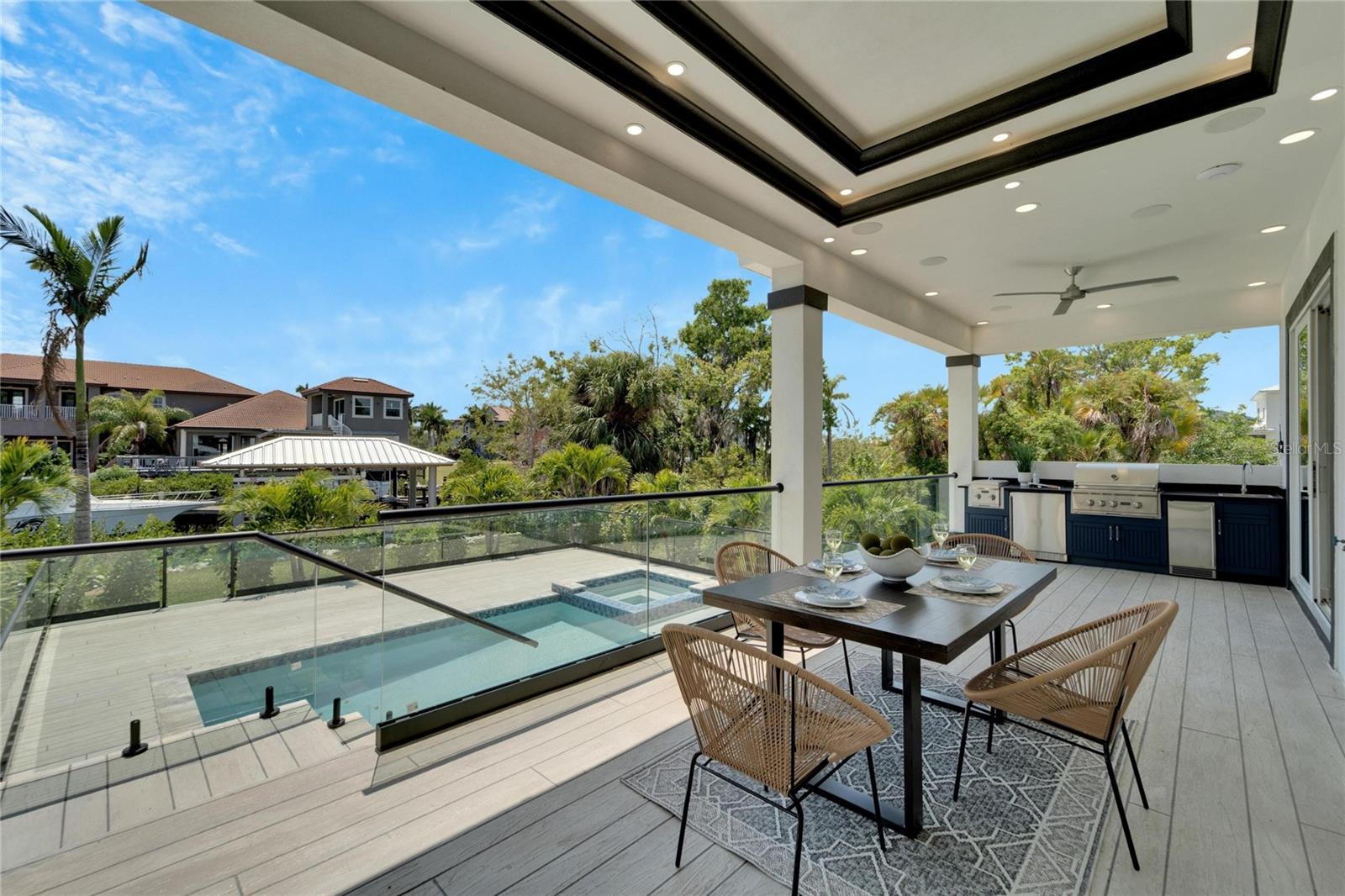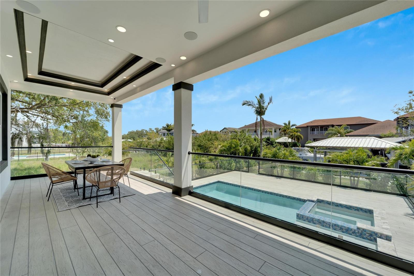 Welcome to 548 Estuary Shore Lane, Apollo Beach This custom-built 2023 home by Bistro Builders offers 4 bedrooms, 3 bathrooms, and a private boat dock with a lift for direct access to Tampa Bay. Be the first to own this 3,322 sq. ft. home, located in a gated community with low HOA fees and no CDD—exceptionally built for both comfort and peace of mind. Outdoor Living The home features a heated pool and spa, a fully equipped outdoor kitchen with a grill, fridge, and icemaker, and multiple balconies with waterfront views. The owner’s suite has a private balcony overlooking the canal and pool. Interior Features Designed for both daily living and entertaining, the kitchen includes imported quartz waterfall countertops, custom-built cabinetry, ample drawer storage, a pot filler, high-end appliances, and an ensuite bar/wine area. The living and dining areas feature a fireplace, triple tray ceilings, and custom LED lighting. Just off the upstairs loft, the primary suite includes a private balcony, imported tile flooring, custom lighting, tray ceilings, a large walk-in shower, a standalone tub, dual vanities, lighted mirrors, and built-in closet shelving. The bathroom also features a fireplace for added comfort. Construction & Energy Efficiency Built above the floodplain, this home is designed for durability and efficiency. Features include solid block construction on all floors, stem wall construction, hurricane-impact windows and doors, and spray foam insulation. The garage has epoxy flooring and ample overhead storage for additional space. Prime Location Located near the Tampa Aquarium Turtle Rescue Center and Manatee Viewing Center, the home offers easy access to nature. It also provides direct boating access to Tampa Bay in under five minutes, with no bridges, locks, or lifts to navigate. A Move-In Ready Waterfront Home 548 Estuary Shore Lane offers modern high-end features, energy-efficient construction, and direct waterfront access. Schedule a tour today to see everything this home provides
