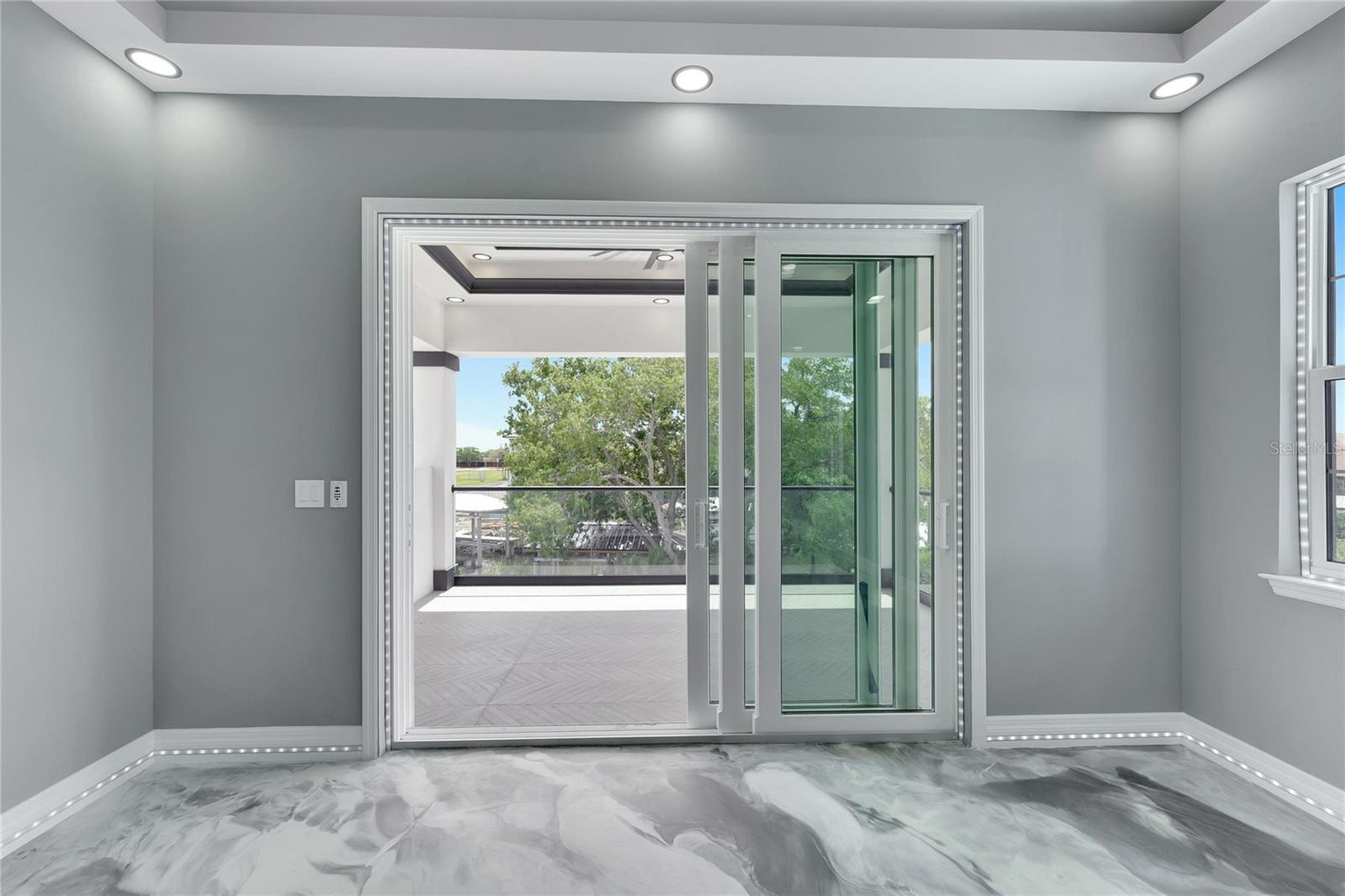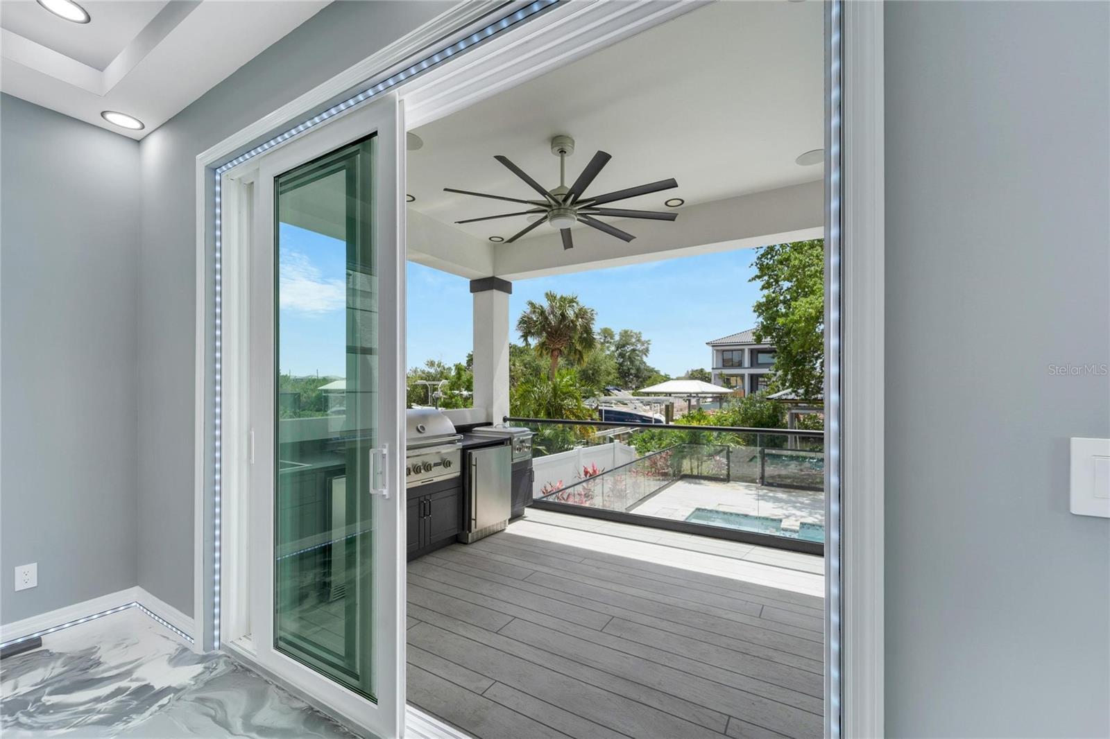 - Balcony, Lighting, Outdoor Grill, Outdoor Kitchen, Sidewalk, Sliding Doors