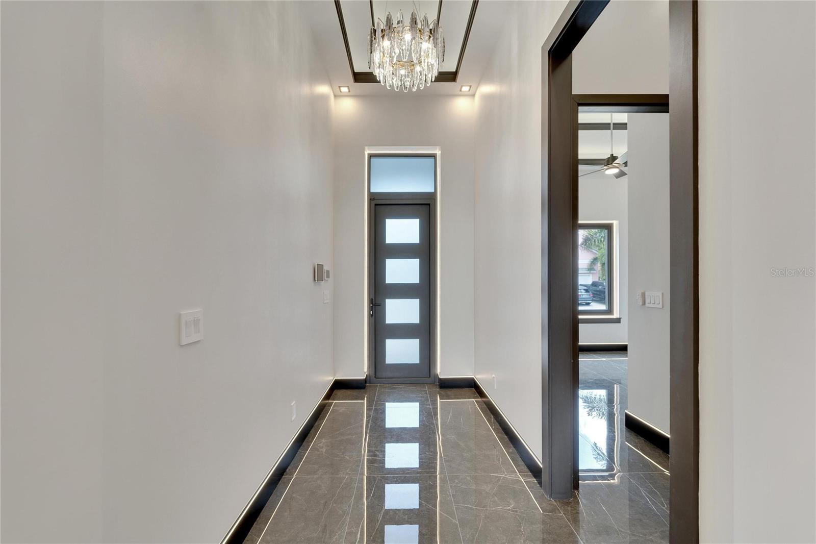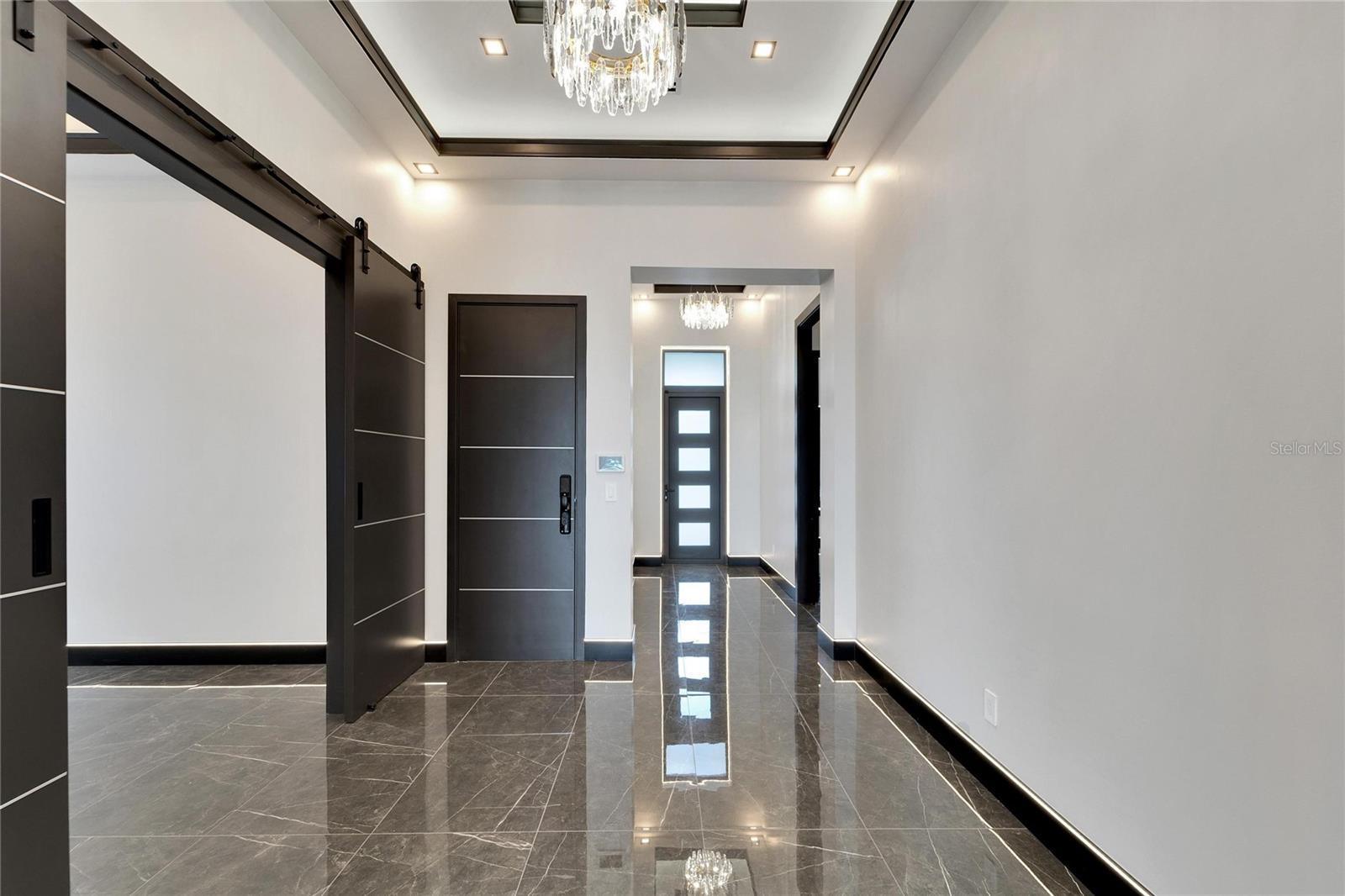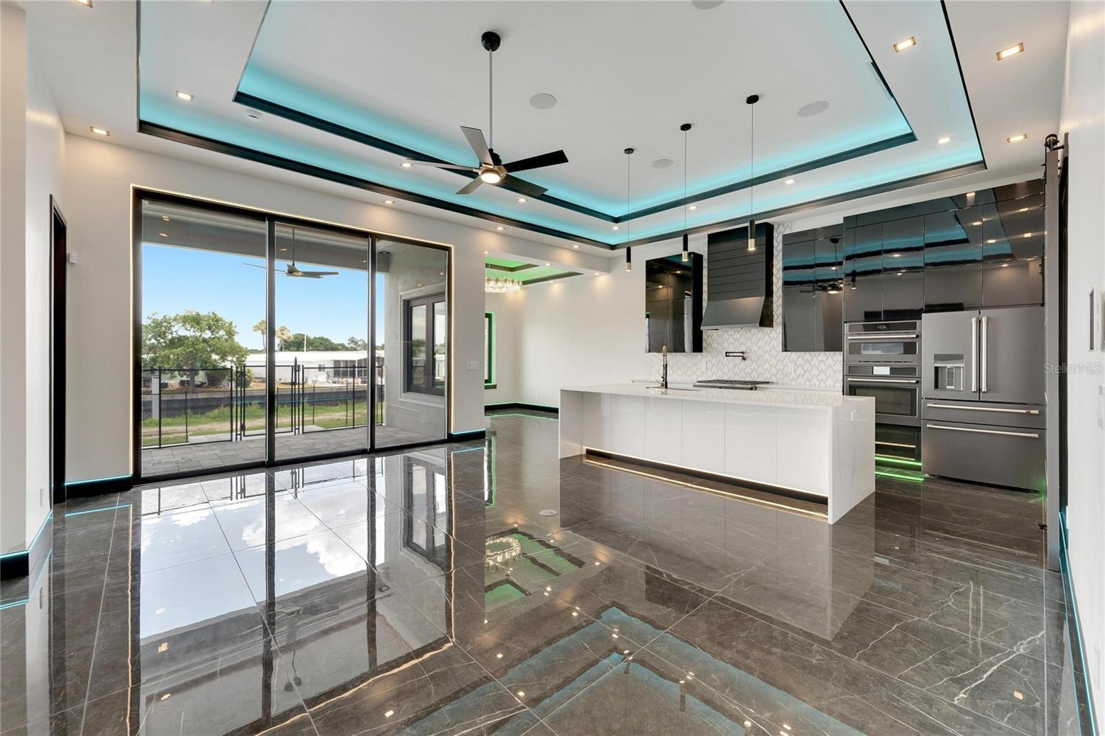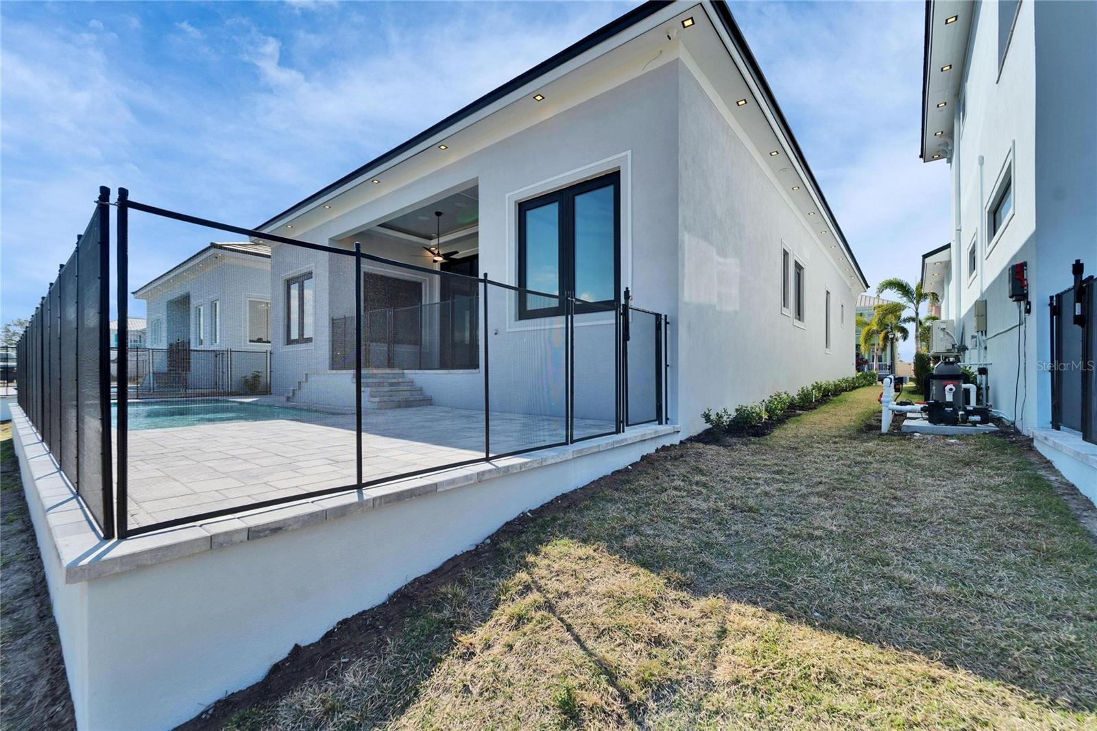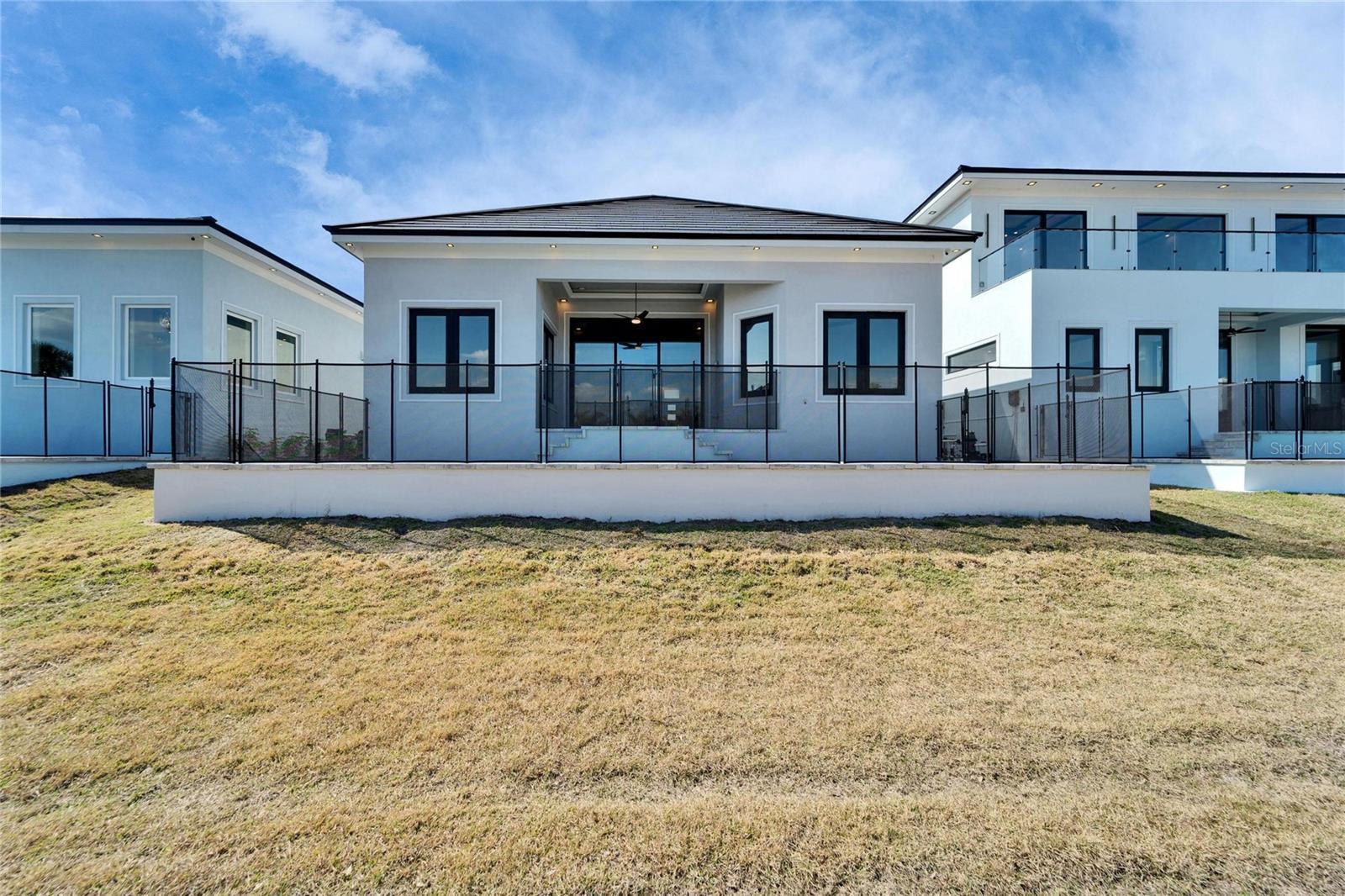 6540 Simone Shores Circle | The Marlin Floorplan 3 Beds | 3 Baths | Saltwater Pool, Spa & Dock with 10K Lift | 2-Car Garage | Direct Bay Access | 12 ft Elevation Waterfront living with direct access to Tampa Bay—this brand-new Apollo Beach pool home features a private dock with 10,000 lb lift, a heated saltwater pool and spa, and no build time required. Located in the small custom-home community of Hemingway Estates, this single-story, solar-powered home offers smart technology, high-end finishes, and strong, energy-efficient construction. Inside, the home welcomes you with smooth-finish walls, soaring ceilings, and a wide-open layout. The Great Room includes a mounted TV and electric fireplace, and the triple sliding glass doors lead straight out to the pool and canal. The kitchen includes quartz countertops, an island with waterfall edges, a built-in oven, gas cooktop with pot filler, wine fridge, and custom cabinetry with European pull-down and organizational shelving. The dining area brings in natural light and waterfront views. A private home office with barn doors and a full bath gives you the option for a guest suite, work-from-home space, or flex room. The home follows a true split-bedroom layout. Both secondary bedrooms include tray ceilings and custom closets. The primary suite is located at the rear of the home with views of the pool and water. The en suite bath includes dual vanities, a jetted soaking tub, and a floor-to-ceiling tiled walk-in shower with multiple showerheads and customizable pressure and lighting settings. This home was built for strength and energy savings, featuring full block construction, a stem wall foundation, solar tile roof with battery backup, hurricane-rated windows and doors, fire-resistant interior doors, Icynene spray foam insulation, and a hardwired security system with fingerprint and faceprint entry. Smart home features allow you to control the pool, lighting, thermostat, security, and garage right from your phone or mounted iPads. Custom lighting accents, built-in surround sound inside and out, automatic heated bidet toilets, and seamless hardware finish out the upgrades. Outdoors, the saltwater pool and spa are ready for year-round enjoyment. The private dock and lift sit behind a brand-new seawall. The two-car garage features multi-layer epoxy flooring and insulated hurricane-rated garage doors. Exterior soffit lighting is customizable—no need to hang holiday lights. Lawn care, landscaping, irrigation maintenance, and annual stormwater drain cleaning are included in the small monthly HOA. Located near schools, shopping, and major highways, 6540 Simone Shores offers modern living in a waterfront community.