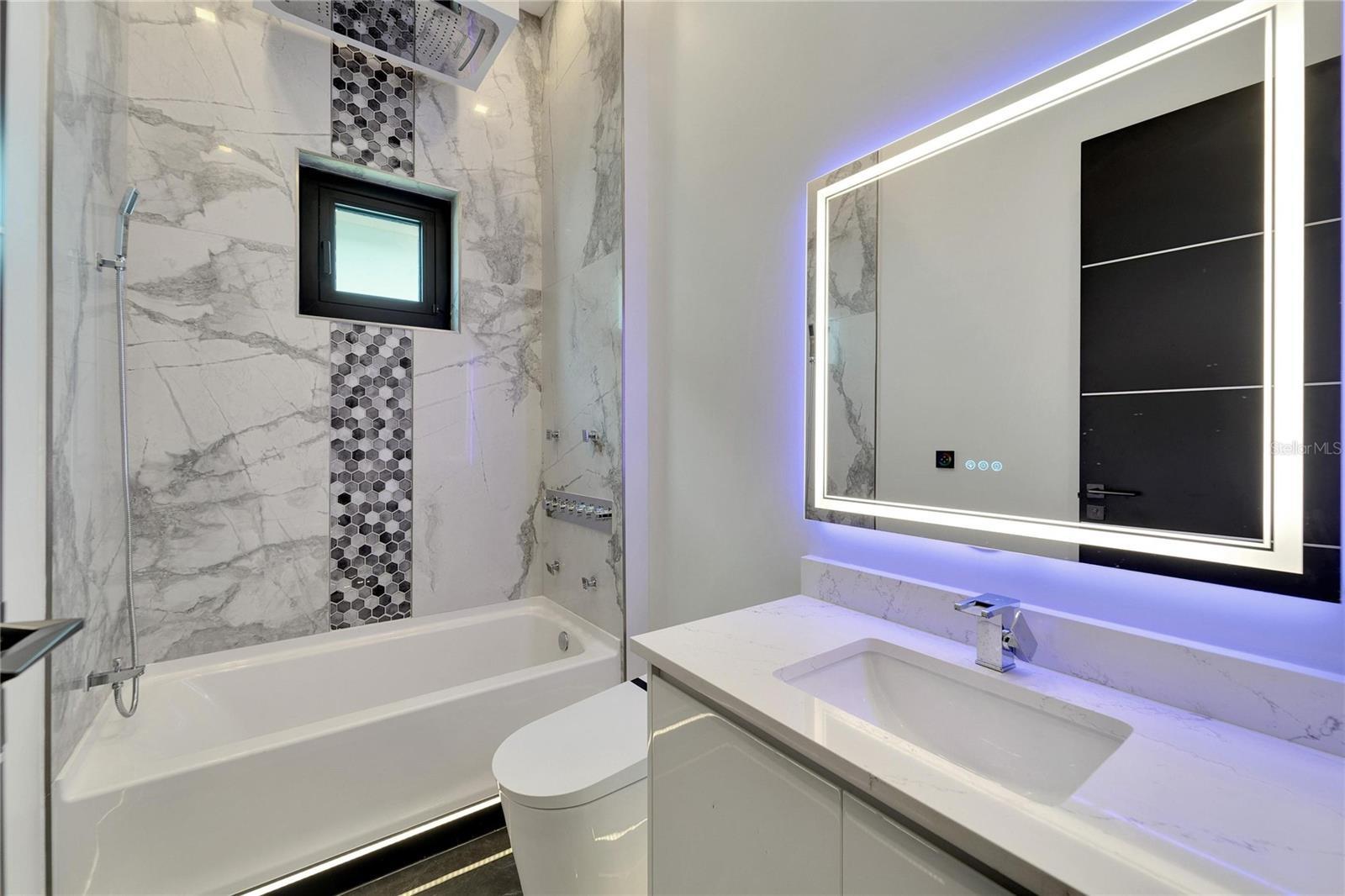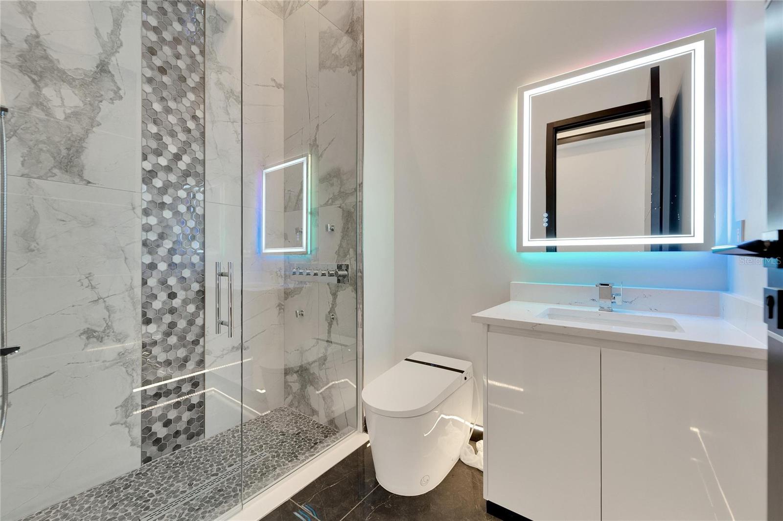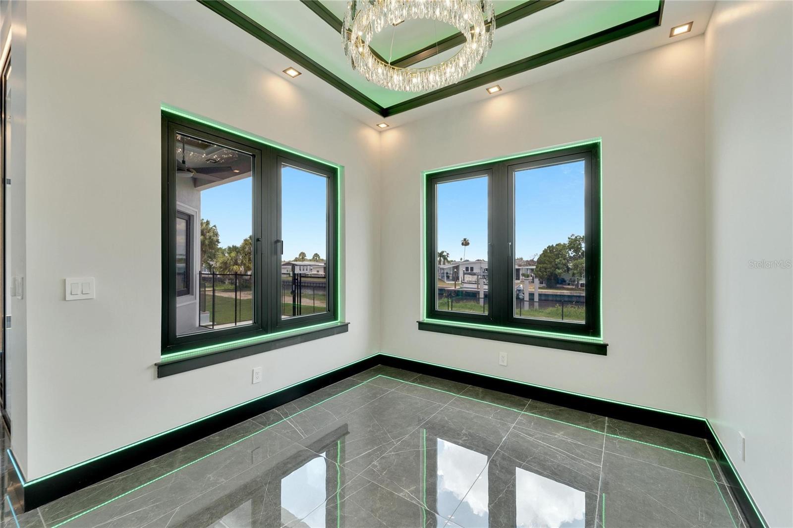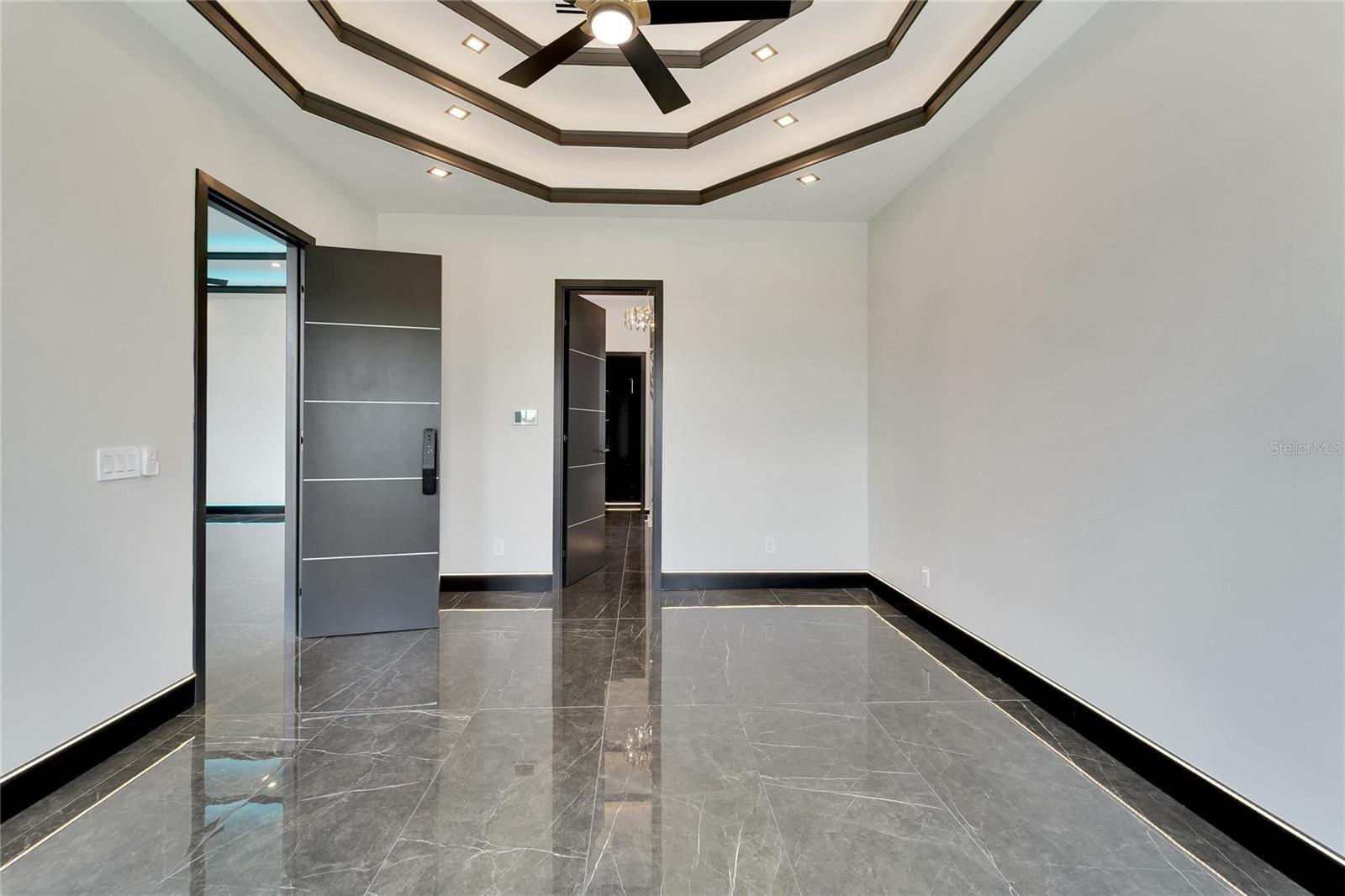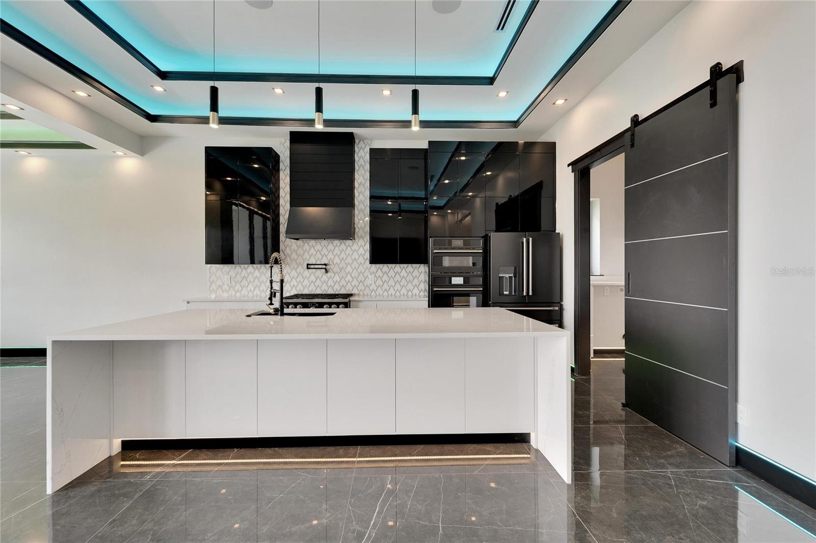 6540 Simone Shores Circle | The Marlin Floorplan 3 Beds | 3 Baths | Saltwater Pool, Spa & Dock with 10K Lift | 2-Car Garage | Direct Bay Access | 12 ft Elevation Waterfront living with direct access to Tampa Bay—this brand-new Apollo Beach pool home features a private dock with 10,000 lb lift, a heated saltwater pool and spa, and no build time required. Located in the small custom-home community of Hemingway Estates, this single-story, solar-powered home offers smart technology, high-end finishes, and strong, energy-efficient construction. Inside, the home welcomes you with smooth-finish walls, soaring ceilings, and a wide-open layout. The Great Room includes a mounted TV and electric fireplace, and the triple sliding glass doors lead straight out to the pool and canal. The kitchen includes quartz countertops, an island with waterfall edges, a built-in oven, gas cooktop with pot filler, wine fridge, and custom cabinetry with European pull-down and organizational shelving. The dining area brings in natural light and waterfront views. A private home office with barn doors and a full bath gives you the option for a guest suite, work-from-home space, or flex room. The home follows a true split-bedroom layout. Both secondary bedrooms include tray ceilings and custom closets. The primary suite is located at the rear of the home with views of the pool and water. The en suite bath includes dual vanities, a jetted soaking tub, and a floor-to-ceiling tiled walk-in shower with multiple showerheads and customizable pressure and lighting settings. This home was built for strength and energy savings, featuring full block construction, a stem wall foundation, solar tile roof with battery backup, hurricane-rated windows and doors, fire-resistant interior doors, Icynene spray foam insulation, and a hardwired security system with fingerprint and faceprint entry. Smart home features allow you to control the pool, lighting, thermostat, security, and garage right from your phone or mounted iPads. Custom lighting accents, built-in surround sound inside and out, automatic heated bidet toilets, and seamless hardware finish out the upgrades. Outdoors, the saltwater pool and spa are ready for year-round enjoyment. The private dock and lift sit behind a brand-new seawall. The two-car garage features multi-layer epoxy flooring and insulated hurricane-rated garage doors. Exterior soffit lighting is customizable—no need to hang holiday lights. Lawn care, landscaping, irrigation maintenance, and annual stormwater drain cleaning are included in the small monthly HOA. Located near schools, shopping, and major highways, 6540 Simone Shores offers modern living in a waterfront community.