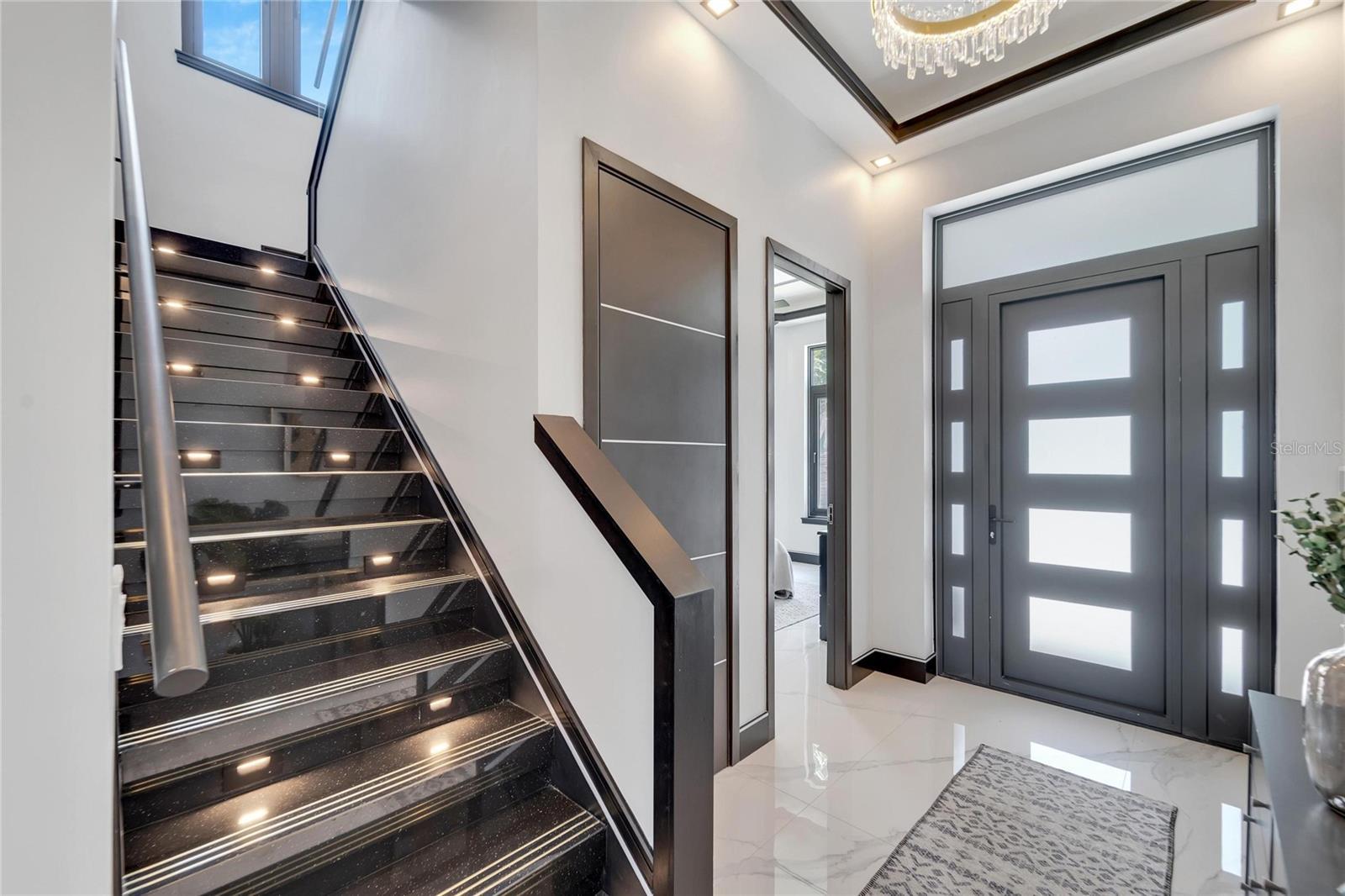 BRAND NEW Smart Home in Apollo Beach! Enjoy luxury living with an infinity pool, covered boat lift, spacious balcony, and exquisite outdoor living spaces complete with an outdoor kitchen and a home with large living areas and 6 bedrooms with multiple suites! As you approach, the long driveway with pavers and lush landscaping, including tropical palm trees, sets the stage for this remarkable residence. The first floor features two bedrooms, perfect for guests or multi-generational living, a grand great room with soaring ceilings, elegant statement lighting, an electric fireplace, and sliding glass doors that lead to the outdoor living area. The upgraded kitchen boasts state-of-the-art appliances, including a built-in oven and range, gas stove with pot filler, wine refrigerator, built-in espresso machine, cooking island, ample storage, and a convenient corner pantry. There's also a sunny dining area just off the kitchen, perfect for your daily meals. The outdoor living area is a paradise for entertainers, featuring a spacious lanai, outdoor kitchen with grill, flat top, room for two kegs, and an outdoor shower, ample seating space and poolside lounging. The sparkling infinity pool is a centerpiece with multiple water features and a spa, ideal for relaxation and entertainment. Venture upstairs to find three bedroom suites, each designed for comfort, with two offering balcony access for stunning views and relaxation. There's also a versatile home office/gym/6th bedroom and a loft area for additional living space. The primary suite is a true sanctuary with a luxury bath featuring a garden tub, shower with dual rain shower heads, and a massive walk-in closet. The suite also includes access to the expansive balcony, perfect for stargazing and enjoying cocktails. This waterfront home provides direct access to Tampa Bay with no bridge restrictions, allowing for sunset cruises or full-day adventures on the water. Additional features include impact windows and a concrete tile roof for durability and safety. Located in a gated community with no CDD, this home offers privacy and security. Its prime location is close to schools, highways, and popular restaurants on the boulevard. Nature lovers will appreciate proximity to Apollo Beach Park and the TECO Manatee Viewing Center, which offers trails and the Florida Aquarium turtle rescue. Come see this house in person to truly appreciate all the thoughtful upgrades and luxurious details designed with you in mind.