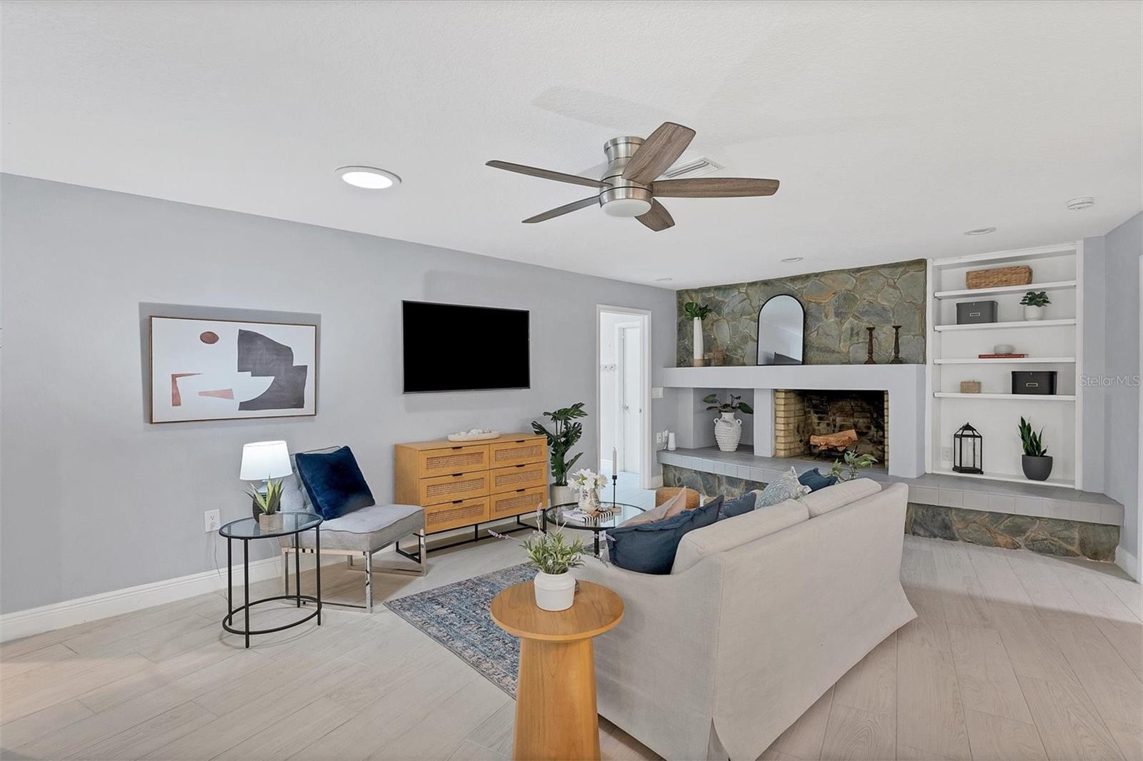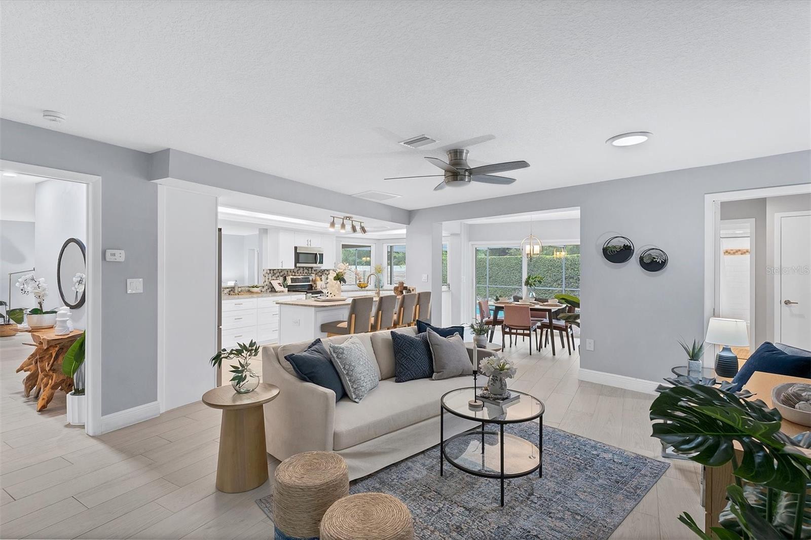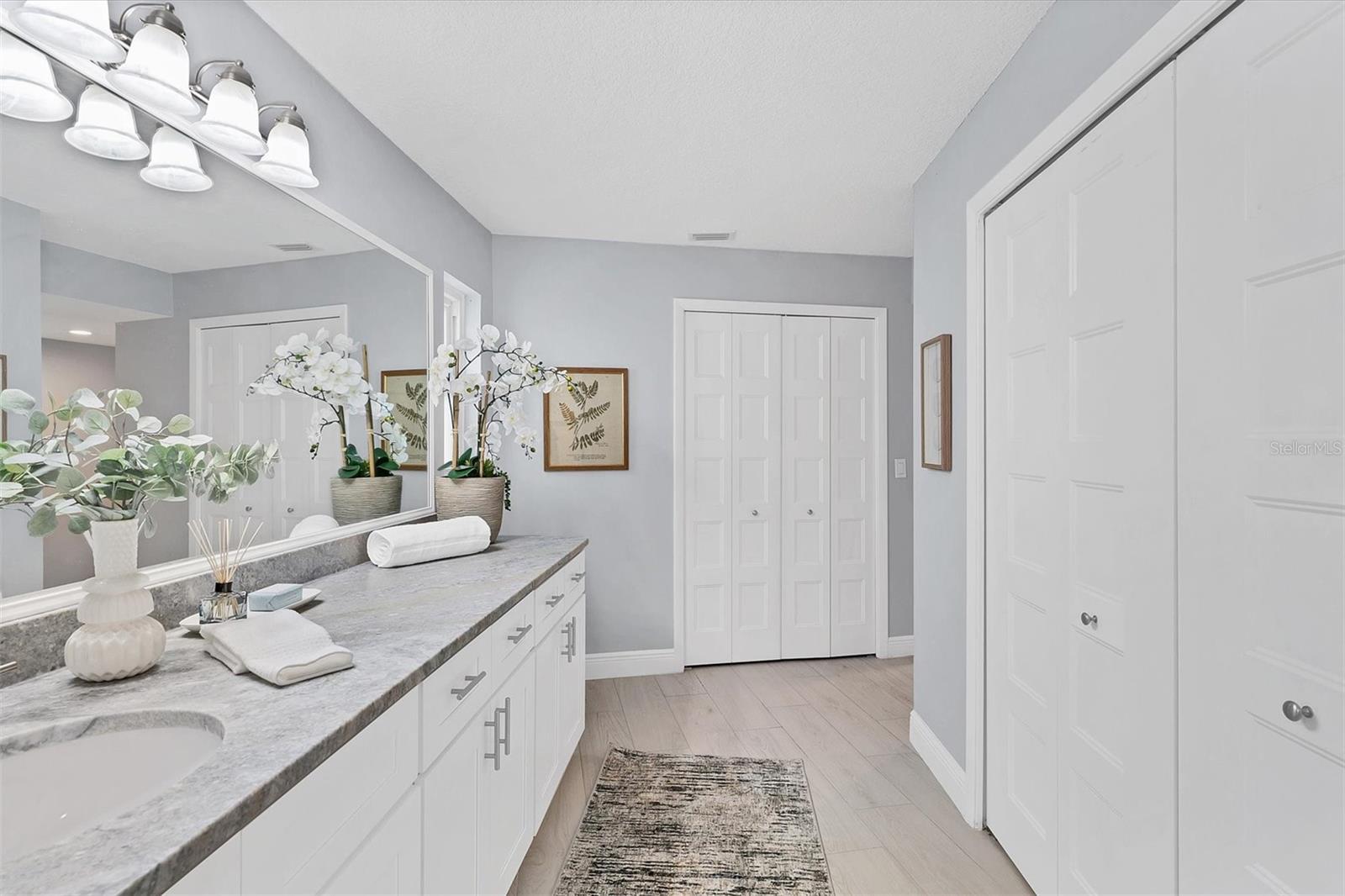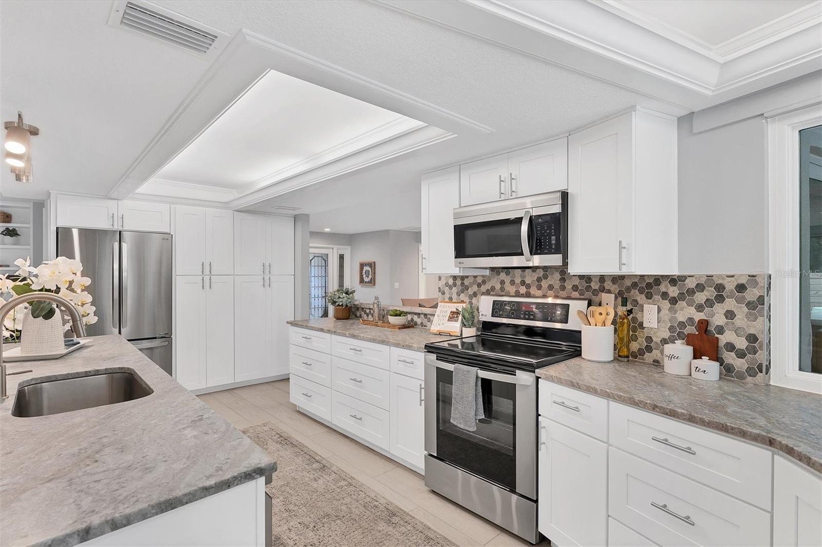 Under contract-accepting backup offers. BACK ON MARKET! PRICE REDUCED, for this incredible opportunity to own a beautiful home in Sweetwater! The Hurricane Helene flooding event in September has been professionally remediated, and this amazing home is like-new and better than ever! The beautifully appointed and spacious 4 BR/2.5 BA home, with 2-car garage and a huge pool, backs up to a wooded preserve. Located in the elegant and gated Sweetwater-Rocky Point. Very convenient to Tampa Airport, MacDill AF Base, and Berkeley Prep. Walk through the double front doors and take in the immediate view through to the private, walled backyard-pool! Lush, newly designed landscaped yards, with $25K spent on landscape design, in addition to backyard regrading and rock borders. The upgraded backyard turf (K9 turf) is constructed of special drainage material. The renovated interior includes: porcelain floor tile in LR, DR, FR, kitchen, dressing area and baths. A working wood-burning fireplace, Eat-in Kitchen with breakfast bar and nook. Brand-new carpeting in all bedrooms. Upgraded cabinets and granite countertops in the kitchen, bathrooms, dressing area, and laundry room. All new light fixtures and fans. New sliders and windows, New water heater. New hurricane rated garage door, a rennovated (2024) solar energy system, and pool heater. A gourmet's kitchen is central to the home, with easy-flowing access to the living room, family room, formal dining and casual dining rooms, as well as the pool. Maximum functionality with tall pantry, giant lazy-Susan, quiet closing drawers, including two dish drawers, 2 sinks, and an outdoor poolside counter. The spacious primary bedroom suite has double sliding doors opening to the poolside heated SPA and lanai, as well as a dressing area with large walk-in closet (with custom built-in closet system) and second closet (8 feet long), double sinks, walk-in Roman bath/shower combo. The 2nd and 3rd BRs share full bath, which has pool access. The fourth BR (easily a home office) has direct exterior access with sliders, and includes its own 1/2 bath. ENERGY UPGRADES: A recently-rennovated 10.2kw solar system is monitored free of charge by SOLAR22 until December 2024. Two solar-tube skylights help to flood the house with abundant natural light. Brand-new main roof (September 2024), 2016 lanai flat-roof, spray-foam insulation in attic greatly reduces your electric bills (TECO buys excess energy); Newer LG kitchen appliances; new A/C duct work, with a brand new HVAC installed in October 2024; New pool pump. New paint and new baseboards throughout. And with many extras, too numerous to list. This amazing home shows like a dream. Book your appointment TODAY before it's gone!