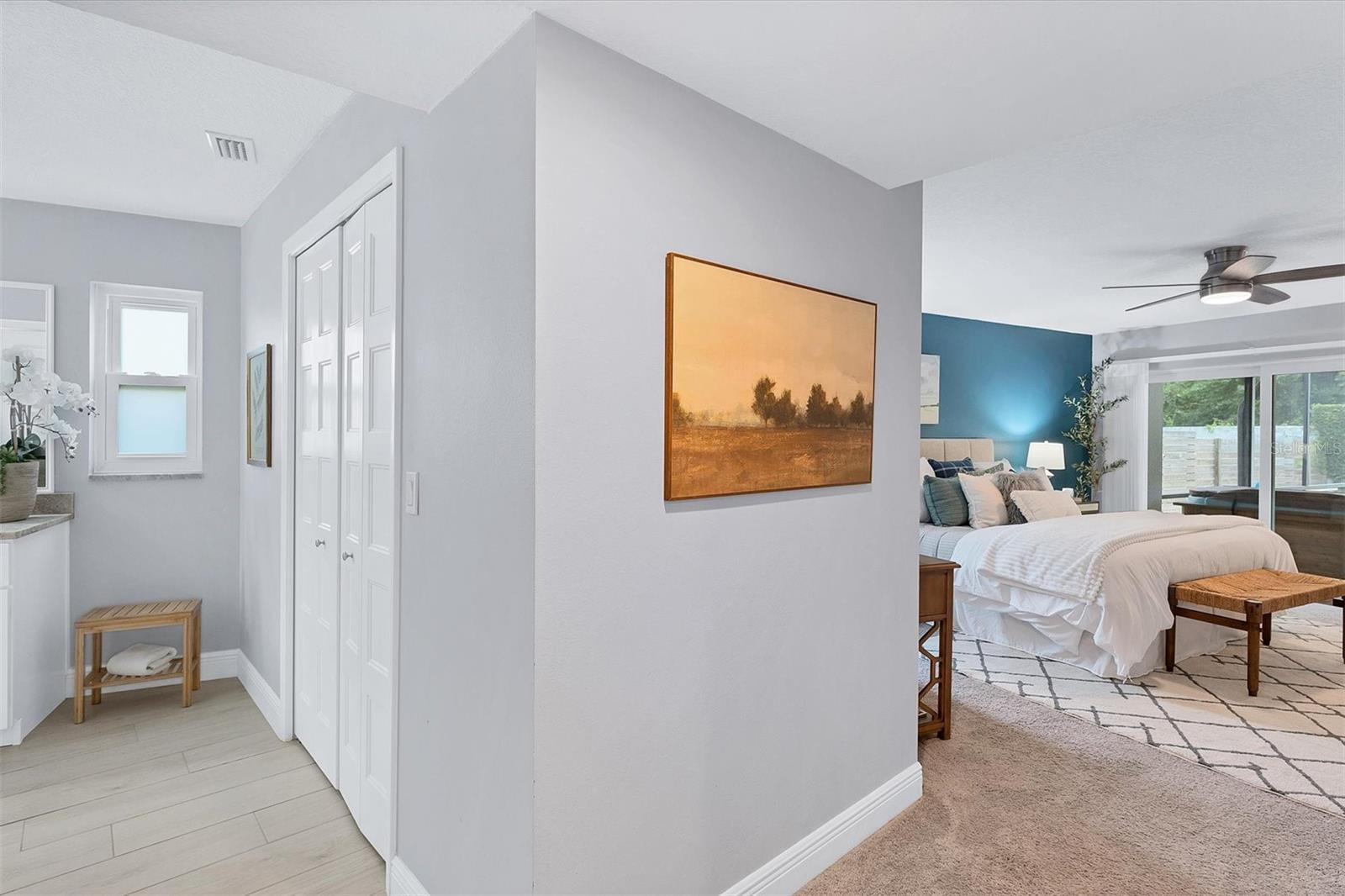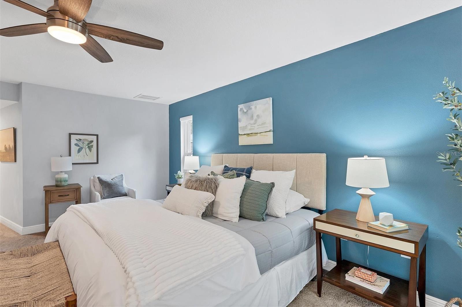 - Built-in Features, Ceiling Fans(s), Eat-in Kitchen, Open Floorplan, Primary Bedroom Main Floor, Solid Surface Counters, Split Bedroom, Stone Counters, Thermostat, Walk-In Closet(s), Wet Bar, Window Treatments