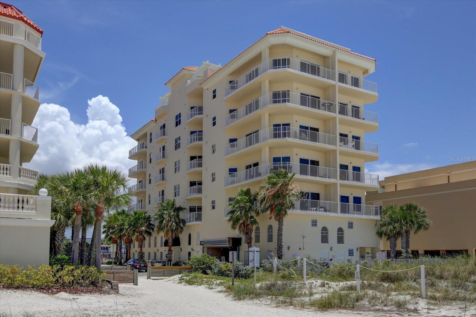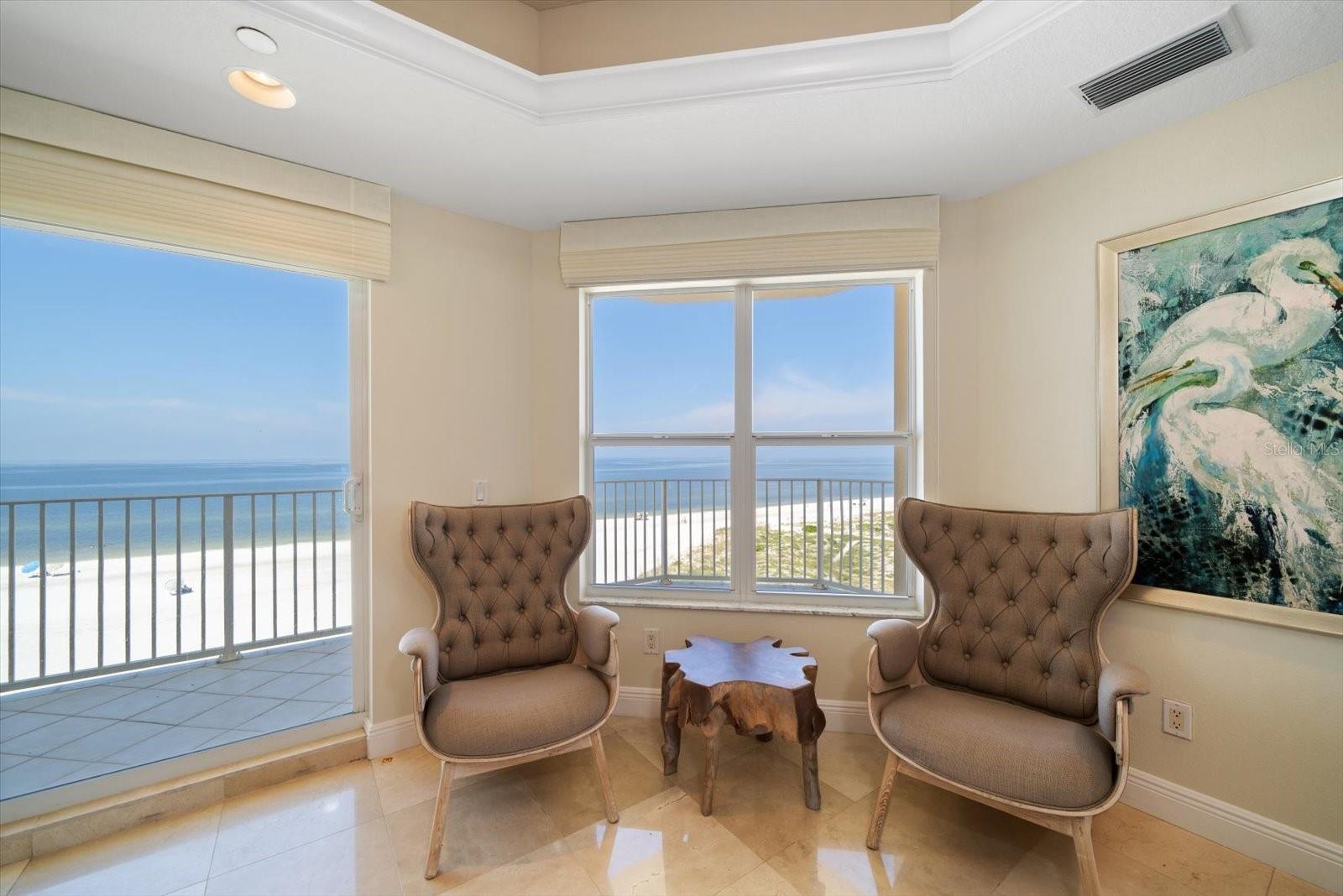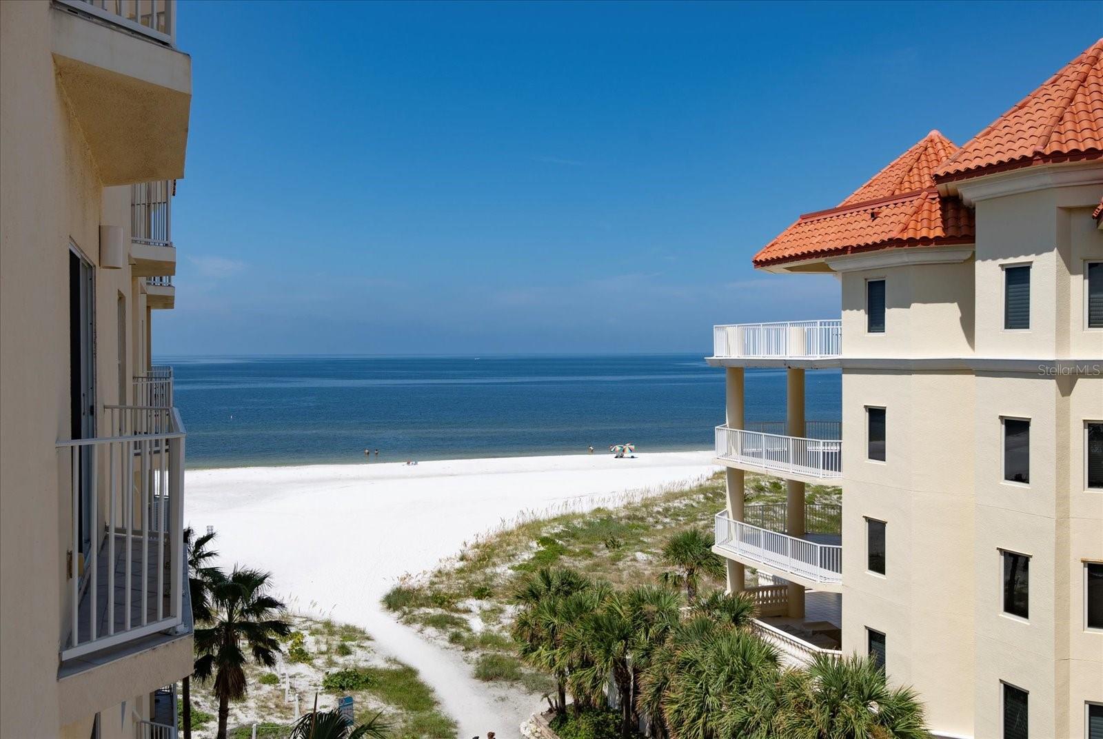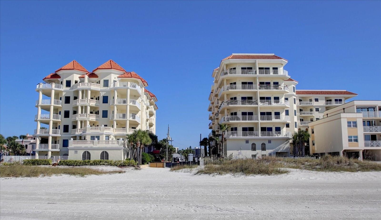 THE DIRECT GULF OF MEXICO, FAR WEST HORIZON, YEAR LONG SUNSET, SHORELINE ALL THE WAY DOWN TO CALADESI ISLAND VIEW IS A GIVEN WITHIN THIS FRONT AND CORNER NORTH CLEARWATER BEACH CONDO HOME SITED WITHIN THE BOUTIQUE BUILDING THAT IS CHATEAUS ON WHITE SANDS- APTLY NAMED FOR THE PRISTINE SUGAR SANDS THAT LAY BEFORE YOU WITHIN THIS RAREFIED & TREASURED GEOGRAPHY. But, now comes the nuance that makes for extraordinary living..IMAGINE BEING TWO BLOCKS AWAY FROM EVERY RESTAURANT, PUB, GELATO BAR, NOT TO MENTION A CONDE NAST RATED RESORT, AND YET BE ON THE MOST SERENE STRETCH OF SUN, SAND & SEA WITHIN THE NORTH BEACH CORRIDOR. Now, enter 6A, a 2,700 plus square foot 3 BEDROOM,3.5 BATH..BUT HERE’S MORE NUANCE, THERE’S A 4th ROOM THAT MAY BECOME: A SLEEPING OPTION, REMAIN THE HOME THEATRE, OR ANYTHING ELSE YOUR FAMILY AND ENTERTAINING DYNAMIC MAY REQUEST. A PRIVATE ELEVATOR VESTIBULE OPENS TO A WHOLLY INTEGRATED GREAT ROOM, DINING AREA, KITCHEN, AND LIVING ROOM. WHILE 3 BEDROOMS ENJOY EN SUITE STATUS W/ THEIR OWN ADJOINING BATHS AND WALK-IN CLOSETS WHICH MAKES FOR SUPERLATIVE AND PRIVATE LIVING. THE PRIMARY HOUSES A SPA BATH, TWO SIDE BY SIDE VOLUME WALK-INS, A GENEROUS SITTING AREA AND BALCONY WITH GULF & INTRACOASTAL VISTAS. ALL BUT ONE BEDROOM HAS BALCONY/TERRACE ACCESS. As for the interiors? Imagine warm, neutral paint treatments, custom all wood kitchen cabinetry, stone counters, HIGHLINE appliances inclusive of Thermador and Sub zero, stone counters, marble flooring, and stone and tile encased baths belying a transitional aesthetic. THE RESORT DRIVEN AMENITIES INCLUDE A SEASIDE POOL, SOCIAL ROOM FOR ENTERTAINING, AND FITNESS. TWO UNDER THE BUILDING PARKING SPACES CONVEY IN THE SALE OF THIS REMARKABLE RESIDENCE. I await your impressions..