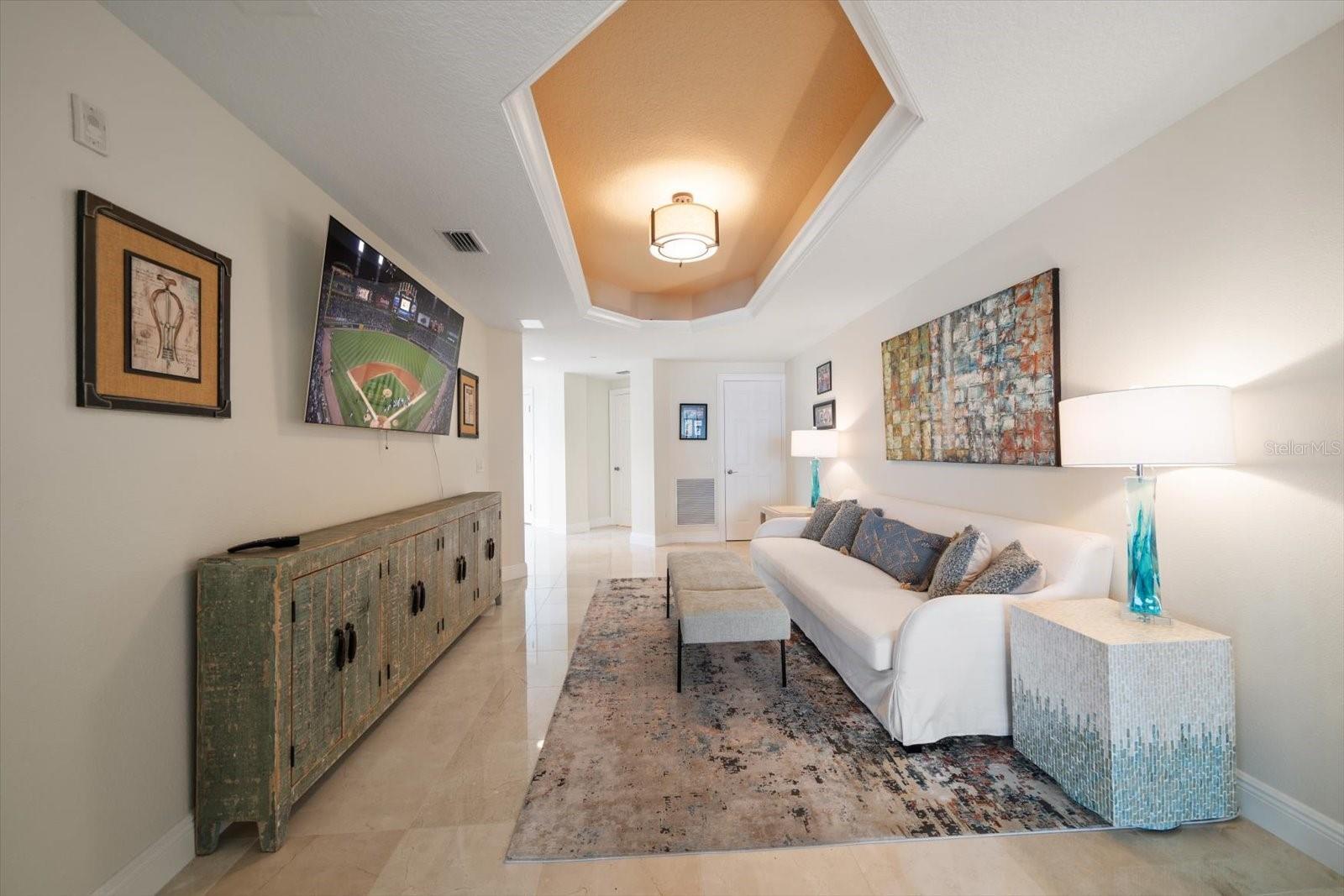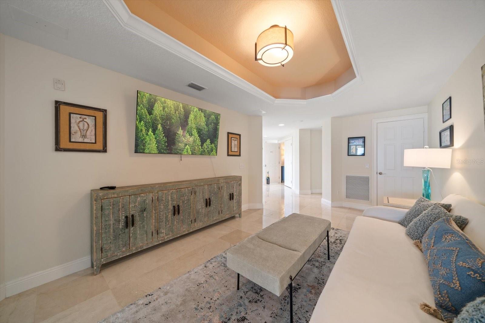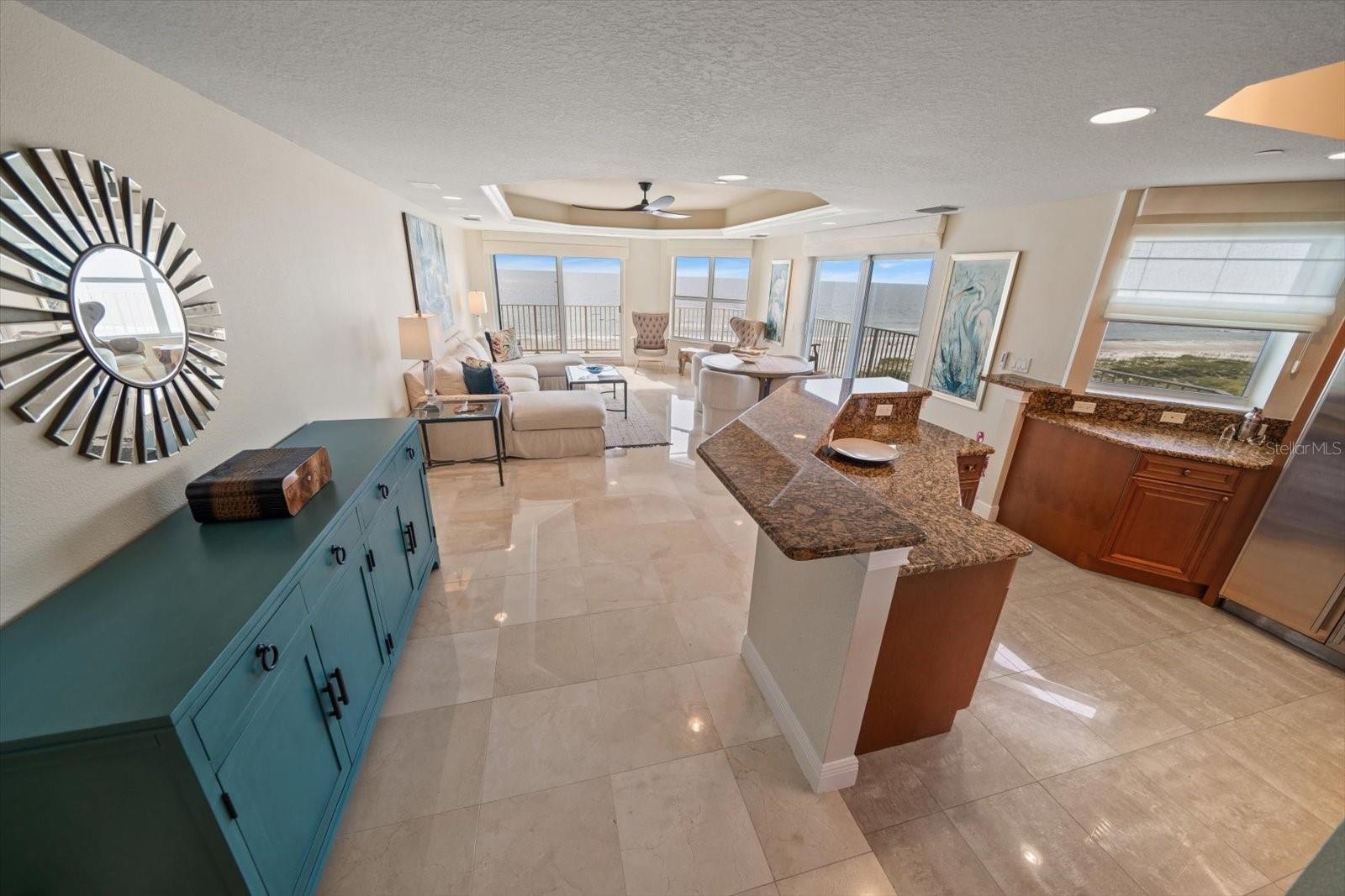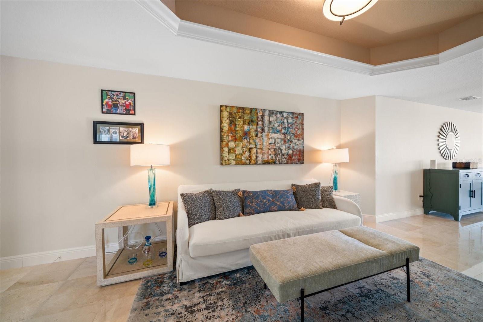 THE DIRECT GULF OF MEXICO, FAR WEST HORIZON, YEAR LONG SUNSET, SHORELINE ALL THE WAY DOWN TO CALADESI ISLAND VIEW IS A GIVEN WITHIN THIS FRONT AND CORNER NORTH CLEARWATER BEACH CONDO HOME SITED WITHIN THE BOUTIQUE BUILDING THAT IS CHATEAUS ON WHITE SANDS- APTLY NAMED FOR THE PRISTINE SUGAR SANDS THAT LAY BEFORE YOU WITHIN THIS RAREFIED & TREASURED GEOGRAPHY. But, now comes the nuance that makes for extraordinary living..IMAGINE BEING TWO BLOCKS AWAY FROM EVERY RESTAURANT, PUB, GELATO BAR, NOT TO MENTION A CONDE NAST RATED RESORT, AND YET BE ON THE MOST SERENE STRETCH OF SUN, SAND & SEA WITHIN THE NORTH BEACH CORRIDOR. Now, enter 6A, a 2,700 plus square foot 3 BEDROOM,3.5 BATH..BUT HERE’S MORE NUANCE, THERE’S A 4th ROOM THAT MAY BECOME: A SLEEPING OPTION, REMAIN THE HOME THEATRE, OR ANYTHING ELSE YOUR FAMILY AND ENTERTAINING DYNAMIC MAY REQUEST. A PRIVATE ELEVATOR VESTIBULE OPENS TO A WHOLLY INTEGRATED GREAT ROOM, DINING AREA, KITCHEN, AND LIVING ROOM. WHILE 3 BEDROOMS ENJOY EN SUITE STATUS W/ THEIR OWN ADJOINING BATHS AND WALK-IN CLOSETS WHICH MAKES FOR SUPERLATIVE AND PRIVATE LIVING. THE PRIMARY HOUSES A SPA BATH, TWO SIDE BY SIDE VOLUME WALK-INS, A GENEROUS SITTING AREA AND BALCONY WITH GULF & INTRACOASTAL VISTAS. ALL BUT ONE BEDROOM HAS BALCONY/TERRACE ACCESS. As for the interiors? Imagine warm, neutral paint treatments, custom all wood kitchen cabinetry, stone counters, HIGHLINE appliances inclusive of Thermador and Sub zero, stone counters, marble flooring, and stone and tile encased baths belying a transitional aesthetic. THE RESORT DRIVEN AMENITIES INCLUDE A SEASIDE POOL, SOCIAL ROOM FOR ENTERTAINING, AND FITNESS. TWO UNDER THE BUILDING PARKING SPACES CONVEY IN THE SALE OF THIS REMARKABLE RESIDENCE. I await your impressions..