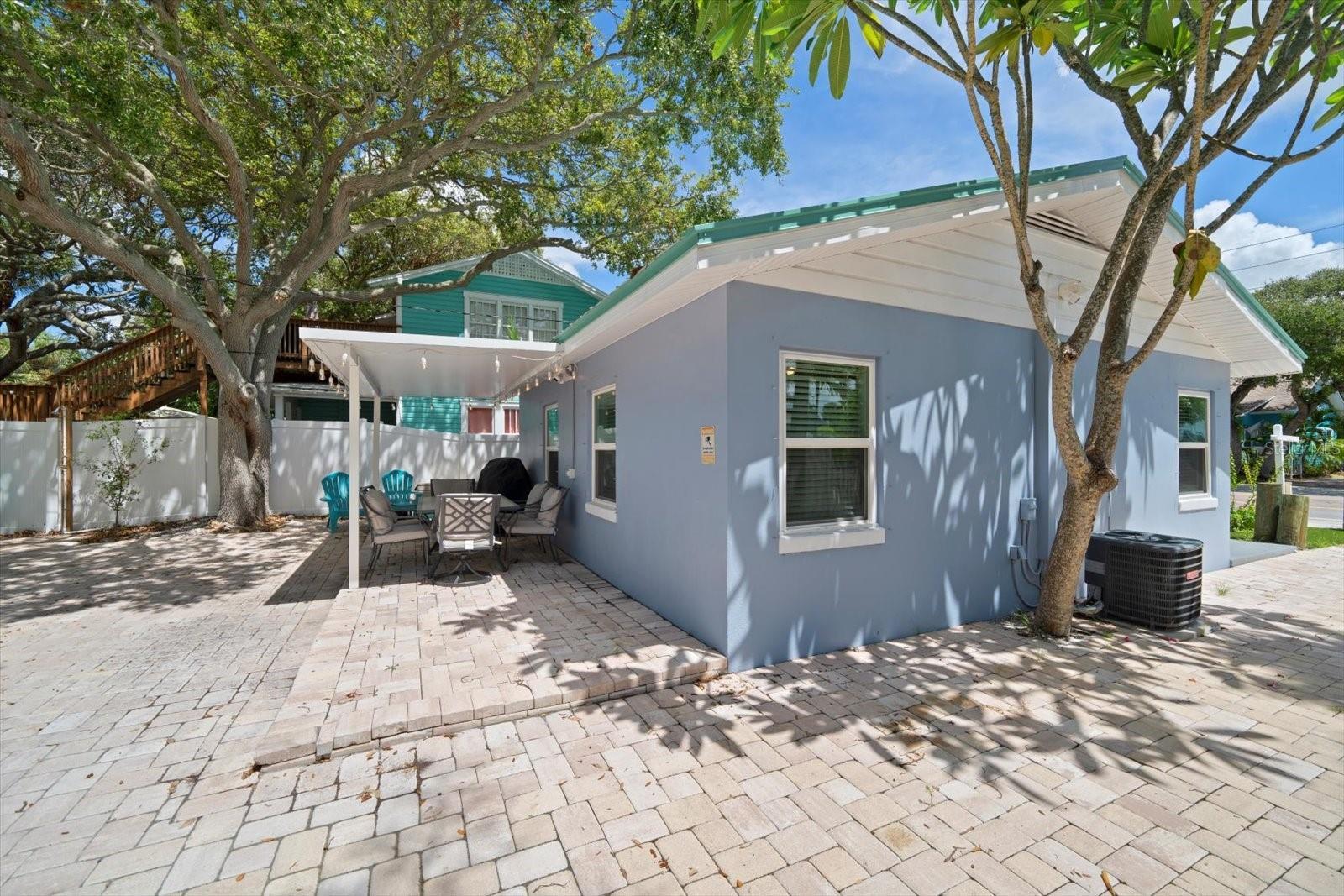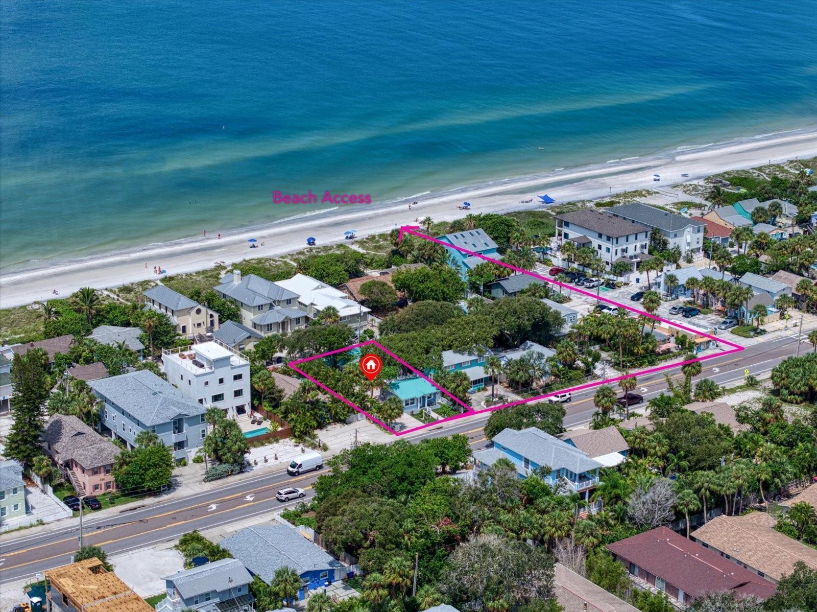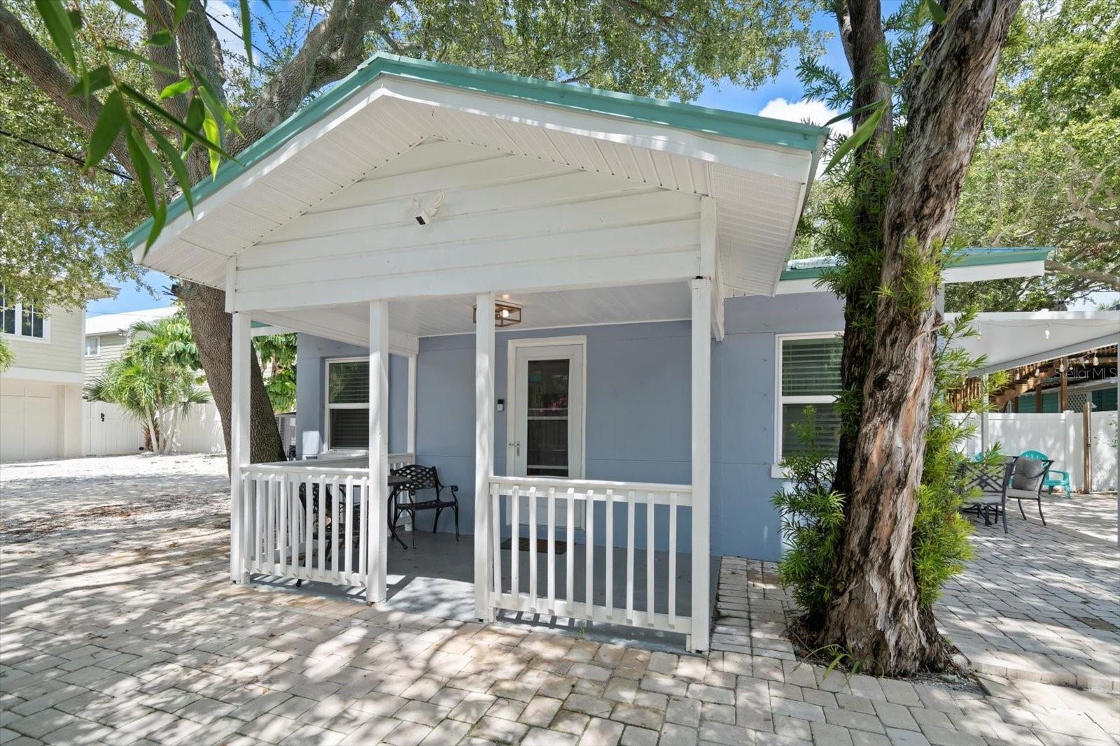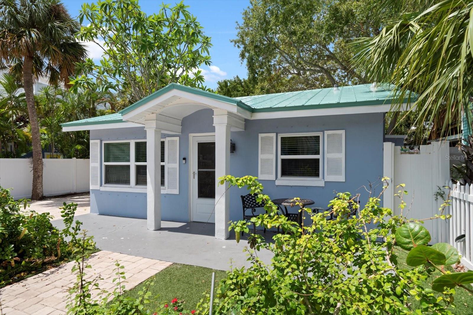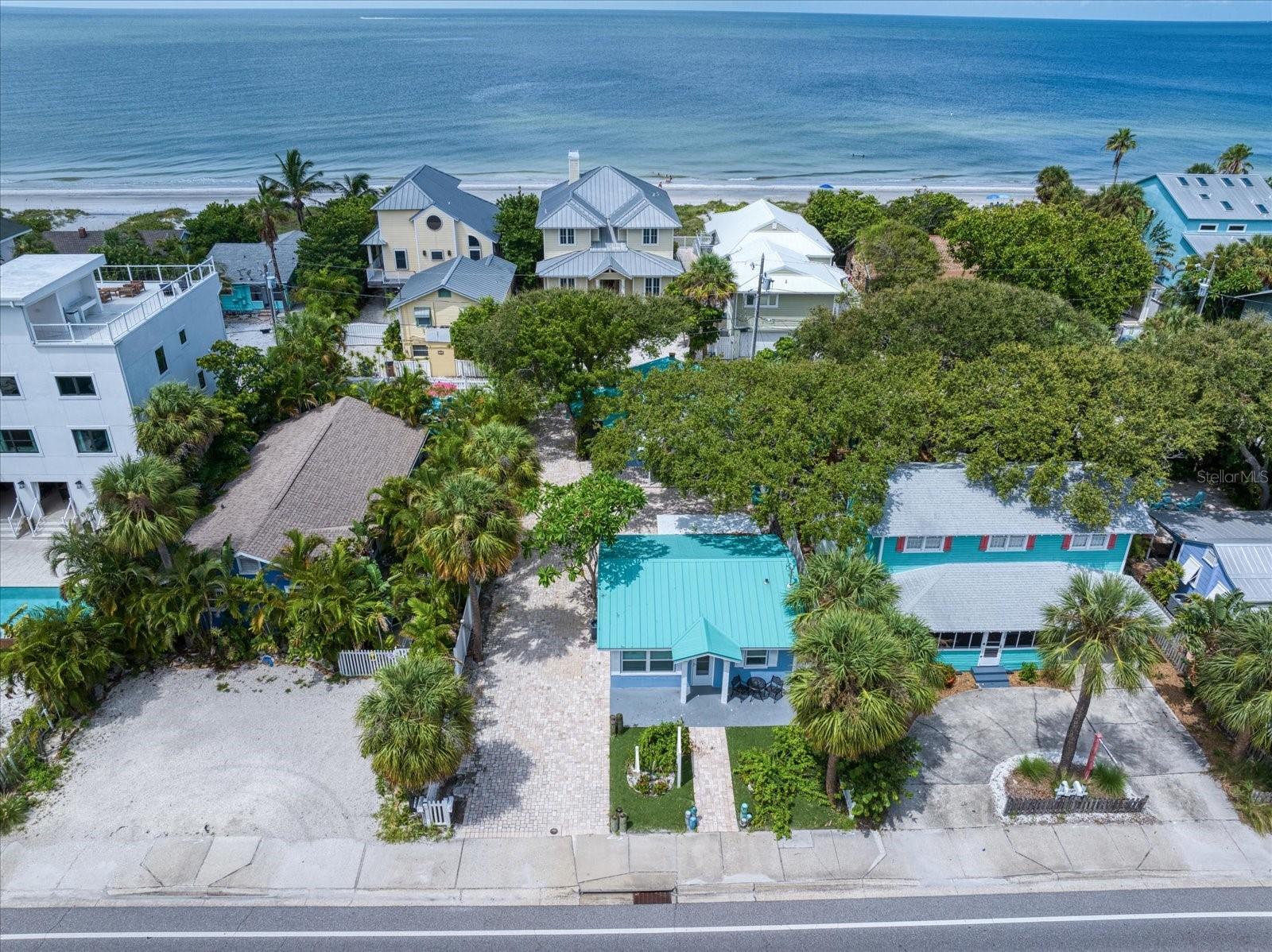 These two recently updated and turn-key, single-family beach cottages sit on the coveted West side of Gulf Blvd, surrounded by beautiful shade trees and lush tropical landscaping, offering a charming, Florida feel that is hard to come by. Just steps away from the pristine white sugar sands of Indian Rocks Beach, this property is the ideal retreat for both vacationers and owners seeking a tranquil getaway. Each cottage is fully furnished, featuring tile flooring throughout, newly remodeled bathrooms, and full kitchens that have been thoughtfully upgraded with custom shaker cabinetry, stunning waterfall edge counters, and graphite stainless-steel appliances. The kitchens are accented by a custom backsplash, adding a touch of modern elegance to these cozy, inviting spaces. For added convenience, the cottages are each equipped with front-loading washer and dryer units, making laundry a breeze. The outdoor space, surrounded with white privacy fence, was designed for relaxation and easy living. The maintenance-free turf ensures you spend more time enjoying your surroundings and less time on upkeep, while the pavered driveway provides a warm welcome as you arrive home. The metal roofs (only 2 years old) add extra charm to the Beach cottages. Guests and owners alike can lounge on their patios, savor the sea breeze, and dine al fresco after a day at the beach. An outdoor shower offers the perfect spot to rinse off after a sandy day by the shore. As evening falls, take a sunset stroll along the beach before heading out to enjoy live music and some of the best seafood the area has to offer. The unbeatable location allows you to venture out to nearby shopping, dining, and recreational activities, or hop on the beach trolley to explore the vibrant local scene. This property is not only a serene coastal escape but also a lucrative investment. The current owners rent both units short-term on Airbnb, boasting an excellent rental history and future revenue already on the books. Whether you choose to rent one unit and live in the other or enjoy the income from both, this stunning property is ready to go.