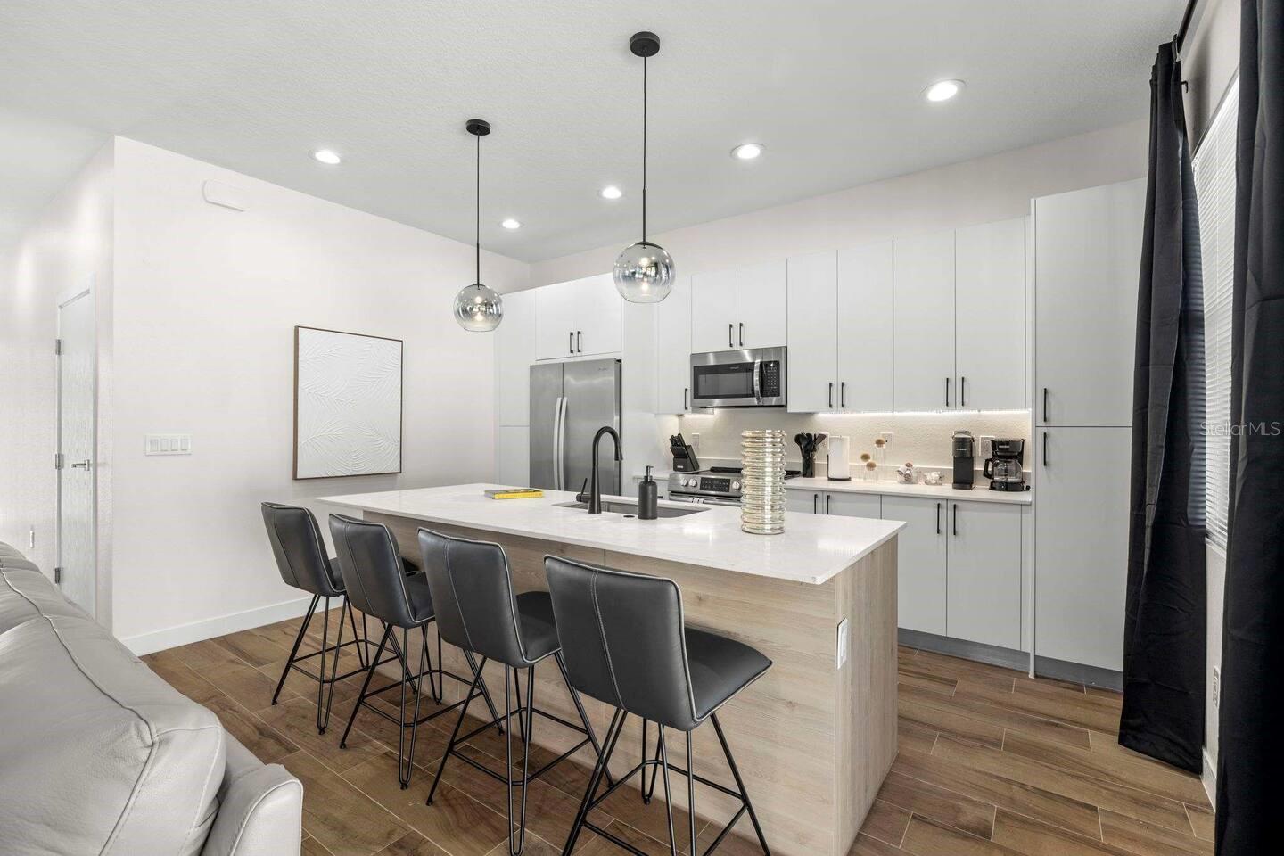 Welcome to this stunning newly constructed 3-bedroom, 2.5-bathroom residence, ideally situated in a peaceful neighborhood of Tampa, Florida. This modern home combines elegance and comfort, making it perfect for families, vacationers, or business travelers. With a spacious layout designed for both relaxation and entertainment, it comfortably accommodates up to six guests. Step inside to discover a beautifully designed interior that boasts a seamless open floor plan. The living room features a 55" Smart TV, offering the perfect spot for family movie nights or catching up on your favorite shows. The fully stocked chef’s kitchen is a culinary delight, equipped with high-end stainless steel appliances, ample cabinetry, and a large island with seating. Enjoy morning coffee from the Keurig or Mr. Coffee maker as you bask in the natural light streaming through the large windows. The three well-appointed bedrooms are designed for rest and relaxation, with plush bedding ensuring a peaceful night’s sleep. The master bedroom features a king-sized bed, a Smart TV, and an ensuite bathroom, while the additional two bedrooms are furnished with queen-sized beds and also include Smart TVs for added convenience. Step outside to enjoy the private outdoor seating area, perfect for soaking up the Florida sunshine or unwinding after a day of exploring nearby attractions. Conveniently located just minutes from downtown Tampa, this home provides easy access to shopping, dining, and entertainment options. Whether you’re visiting for leisure or work, this luxurious home offers the ideal combination of modern amenities and classic charm. Don’t miss your chance to experience the best of Tampa living in this remarkable property. Schedule a showing today and make this stunning home your next destination!