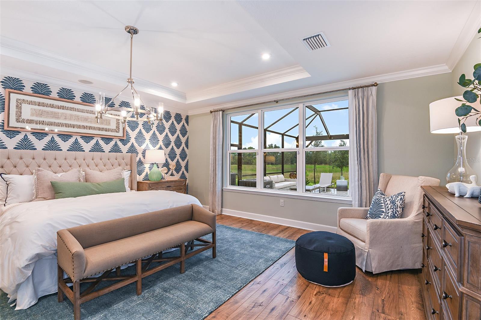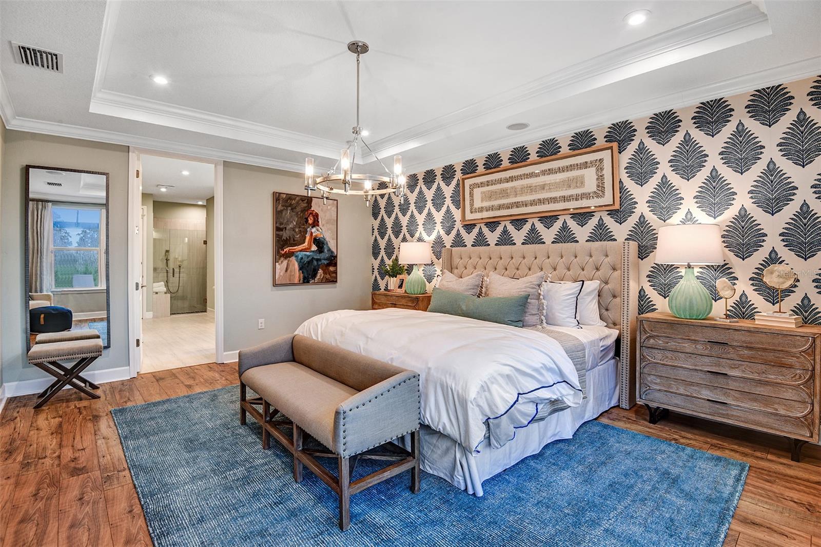 - Open Floorplan, Primary Bedroom Main Floor, Split Bedroom, Tray Ceiling(s), Walk-In Closet(s)