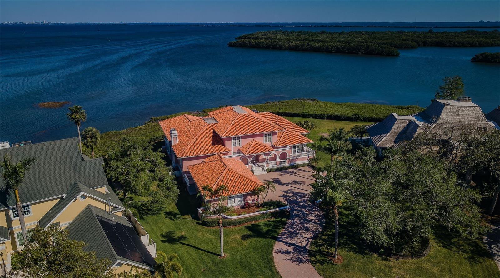 NO WATER INTRUSION TO THE RESIDENCE ...EVER. Nestled in a private gated enclave just one mile from charming downtown Safety Harbor, this 5,512 sq ft luxury waterfront estate offers the ultimate Florida lifestyle with breathtaking bay views from every room. Set on .64 acres, this four-bedroom, 4.5-bathroom home is designed for security, comfort, and elegance. Inside, soaring ceilings, and a gas fireplace. Pella double-paned windows fill the home with natural light, while plantation shutters on windows and sliding glass doors add timeless style. The spacious kitchen flows seamlessly into the living areas, making it perfect for entertaining. The primary suite is a true retreat, featuring a bonus room overlooking the bay, ideal for a home gym or relaxation space. A second-floor office provides stunning waterfront views, while another bedroom boasts a bonus craft/sewing room for added versatility. Every walk-in closet is customized with built-in closet systems, offering ample storage throughout. Venture outside to enjoy the screened lanai with an in-ground, pool and spa, where you can unwind while taking in the wildlife, birds, and serene water views. This home also features a whole-house generator, a Life Source water system, three air conditioners, and a new water heater. An elevator provides effortless access between floors. Completing this stunning property is a spacious three-car garage and a basement space under the home providing storage or use your imagination to create an enormous, unique play space. Braeside Place is a Prime Location offering easy access to Tampa, Clearwater, St. Petersburg, and beyond. This rare waterfront estate is a must-see for those seeking luxury, privacy, and unparalleled views.