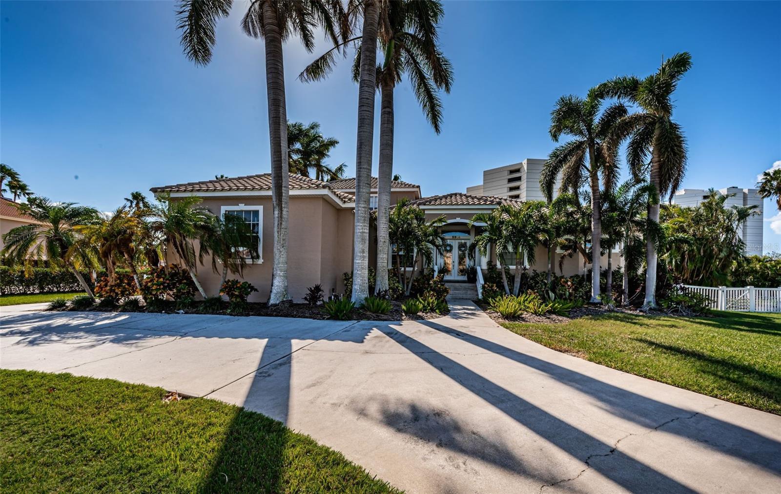 RESTING ON A QUIET CUL DE SAC, WITH A BEAUTIFUL CURB APPEAL, LARGE CIRCULAR DRIVEWAY AND TOWERING ROYAL PALMS, THIS IMPRESSIVE 5 BEDROOM, 3 ½ BATH, 4948 TOTAL SQFT (UNDER ROOF) RESIDENCE OFFER TREMENDOUS FEXIBILITY AND A WONDERFUL LIVING EXPERIENCE WITHIN PINELLAS COUNTY’S ONLY GATED BOATING, GOLF AND TENNIS COMMUNITY. Beyond its attractive covered entry, you’ll discover rich crown trim finishes, lovely driftwood-style flooring and an expansive split-bedroom floor plan. Open dining/multi-purpose great room overlooks the back yard and transitions to a sumptuous kitchen with fine maple cabinetry, granite surfaces, multi-level breakfast bar, stainless steel appliances, walk-in pantry and matching butler’s pantry with separate wine and beverage centers. A double door entry opens to an owner’s bedroom featuring a large bedroom, two sizable walk-in closets, and a sitting area that opens to the back yard lanai. The owner’s bath is an elegant retreat, with two wide vanities, a large cosmetics sitting area, a spacious dual entry shower, and private rest room. Den/fitness room is complemented by a dedicated office. First level guest bedroom and full guest bath. Upstairs you’ll find a huge family room/entertainment and media center, two spacious bedrooms and full bath with walk-in glass shower enclosure. The home offers a large indoor laundry with built in sink and extensive cabinetry and counter space. Living room opens to a 330+ sqft covered deck with half bath and a spacious private back yard. Home has solar electric panels, plantation shutters, 3-car garage, PVC fencing and lots of parking space. The Pasadena Yacht and Country Club’s superior amenities including golf, tennis, fitness centers, marina, restaurant, community pool and clubhouse. Avoid the extensive country club wait list by purchasing this most pleasing home. Dimensions are estimates, buyer to verify dimensions. Flood insurance is under $800 per year. Assumable.