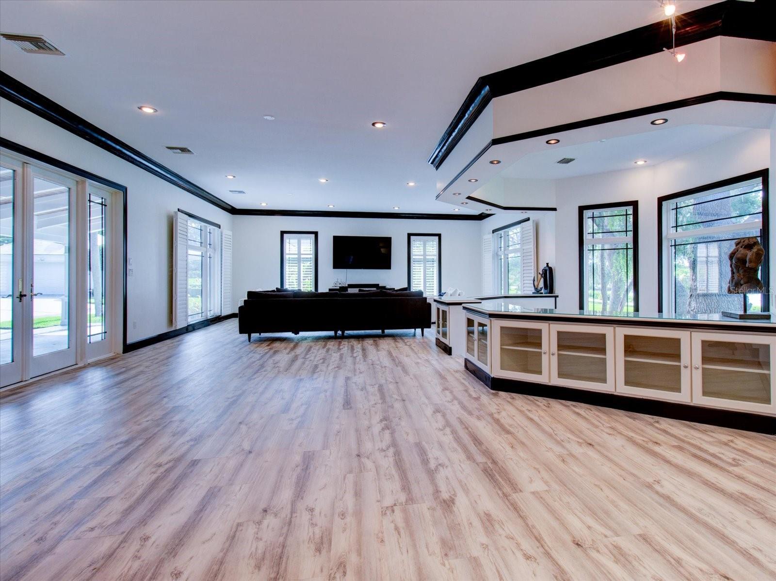 - Crown Molding, Dry Bar, Dumbwaiter, Open Floorplan, Sauna, Stone Counters, Thermostat, Walk-In Closet(s), Wet Bar, Window Treatments