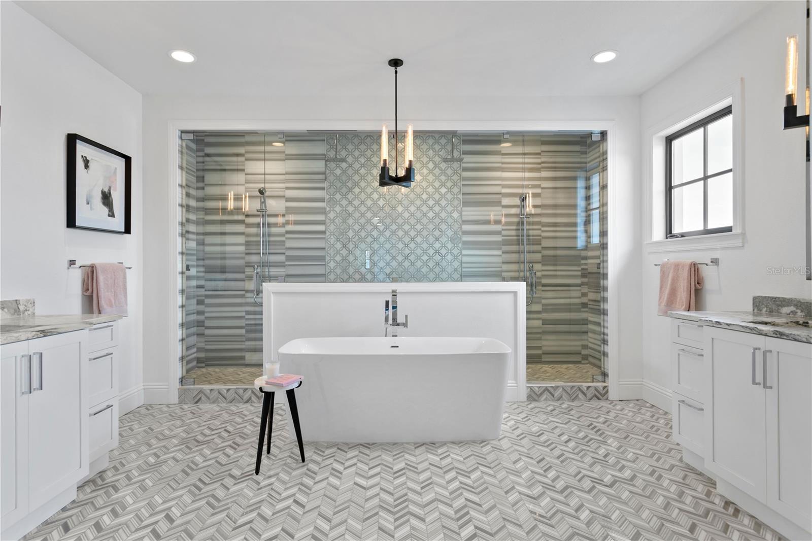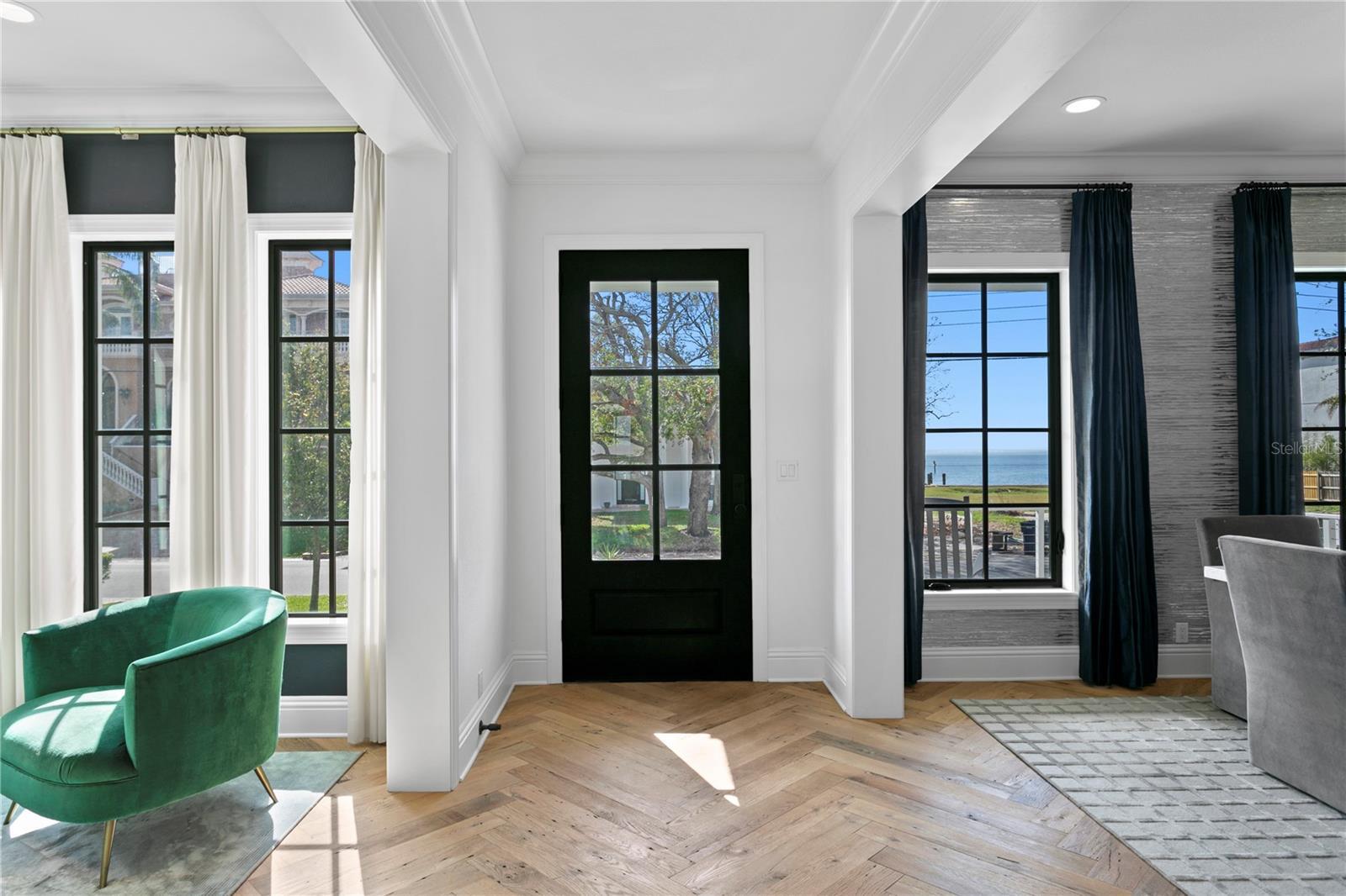 Minutes to the OPEN BAY and nestled among the shore of Tampa's coveted BEACH PARK neighborhood, this extraordinary 5-bedroom, 5 1/2 bath plus office, WATERFRONT home features over 5,000 sf of living spaces, all block construction, insulated impact windows/doors and an unparalleled blend of modern luxury and timeless craftsmanship including gas lanterns and white oak herringbone pattern reclaimed wood floors from the Biltmore Hotel. This custom-built home is perfectly situated on a 10,000 square foot waterfront lot offering stunning views, a saltwater pool, paver patio, private dock with boat lift and direct boating access to Tampa Bay. First floor features formal living and dining spaces, great room with gas fireplace, chef's kitchen with Wolf and Sub-Zero appliances, 170-bottle wine room, a generous sized en-suite bedroom, office/study room, downstairs laundry and pool bath. Upstairs the luxurious primary suite offers water views, a private balcony, and a spa-like bathroom with separate vanities, a soaking tub, oversized walk-in shower and dual water closets. 3 additional bedrooms, 2 full baths and an upstairs laundry room complete the second floor. Located in a top-rated school district just minutes to Tampa International Airport, International Plaza, Downtown Tampa, shopping, restaurants, sporting venues and providing easy access to all local bridges. Attention to detail and design throughout makes this home a must see!