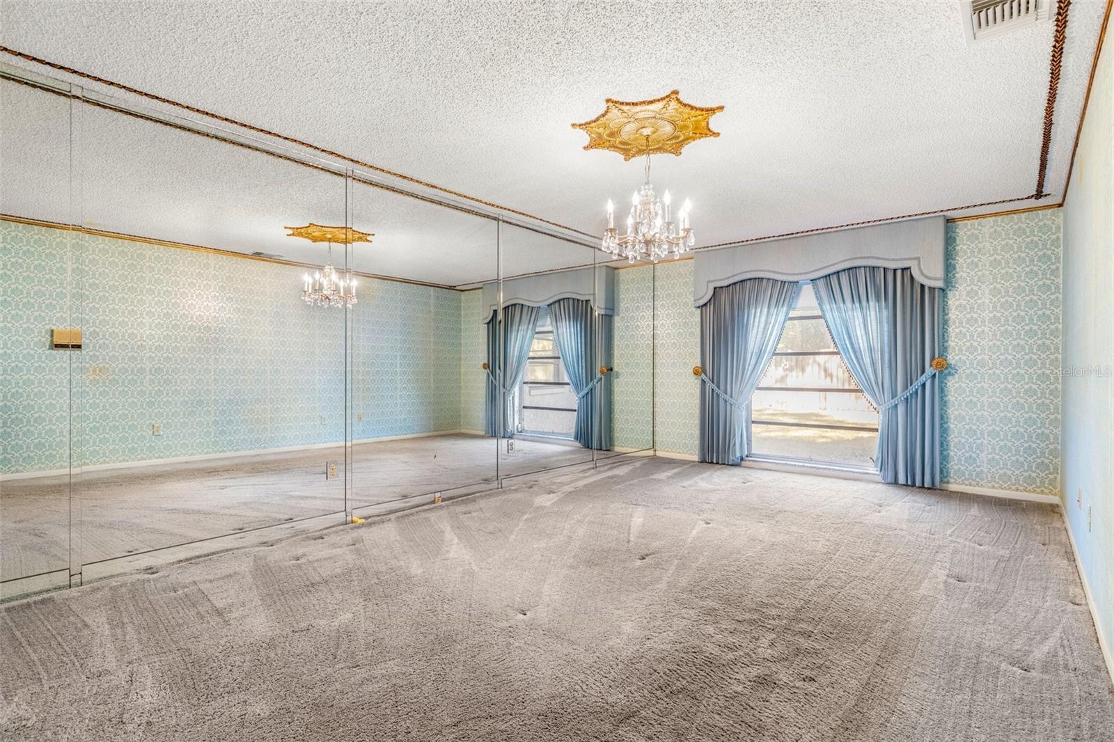 - Crown Molding, Dry Bar, Open Floorplan, Primary Bedroom Main Floor, Split Bedroom, Thermostat, Walk-In Closet(s), Window Treatments