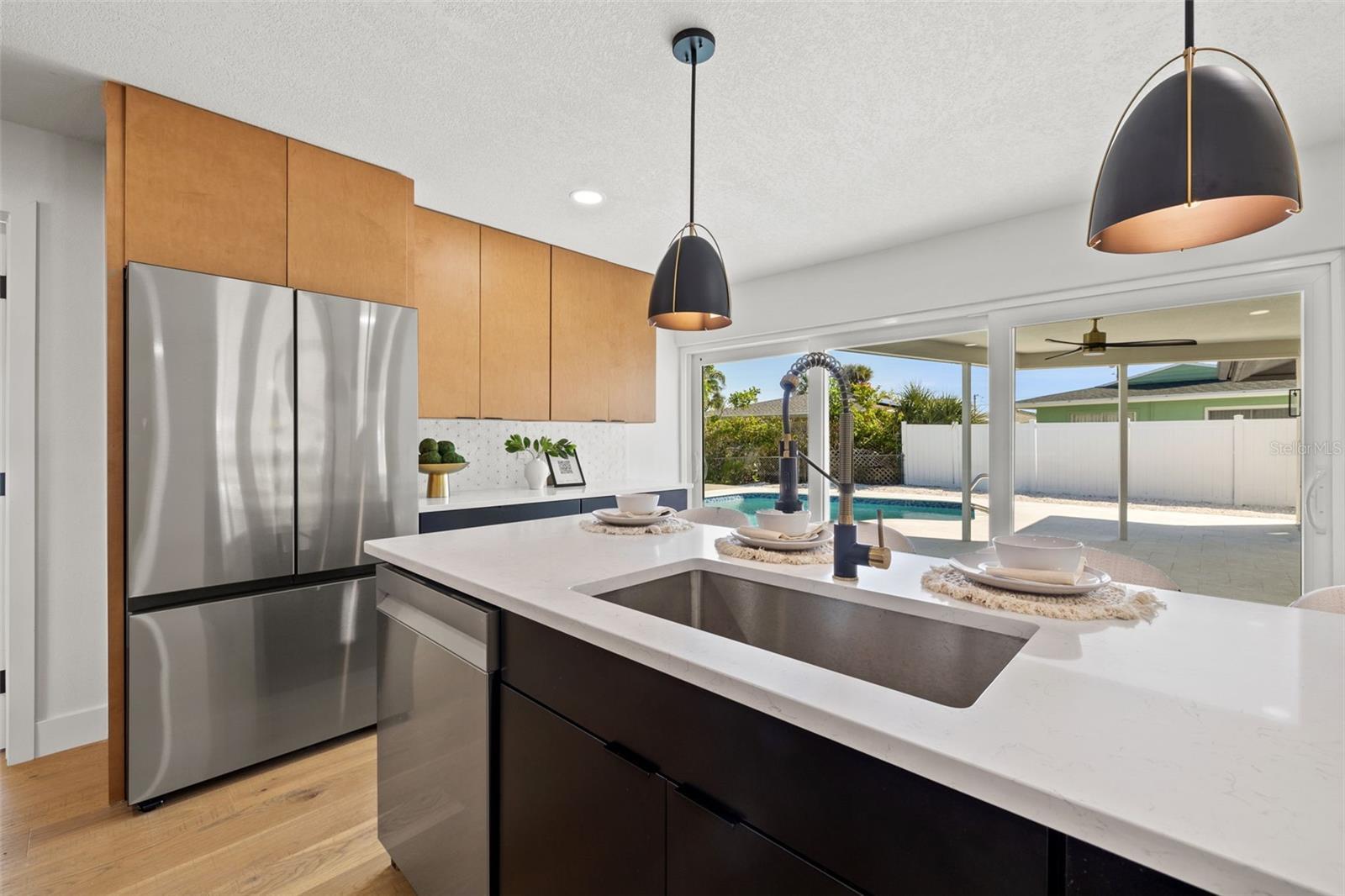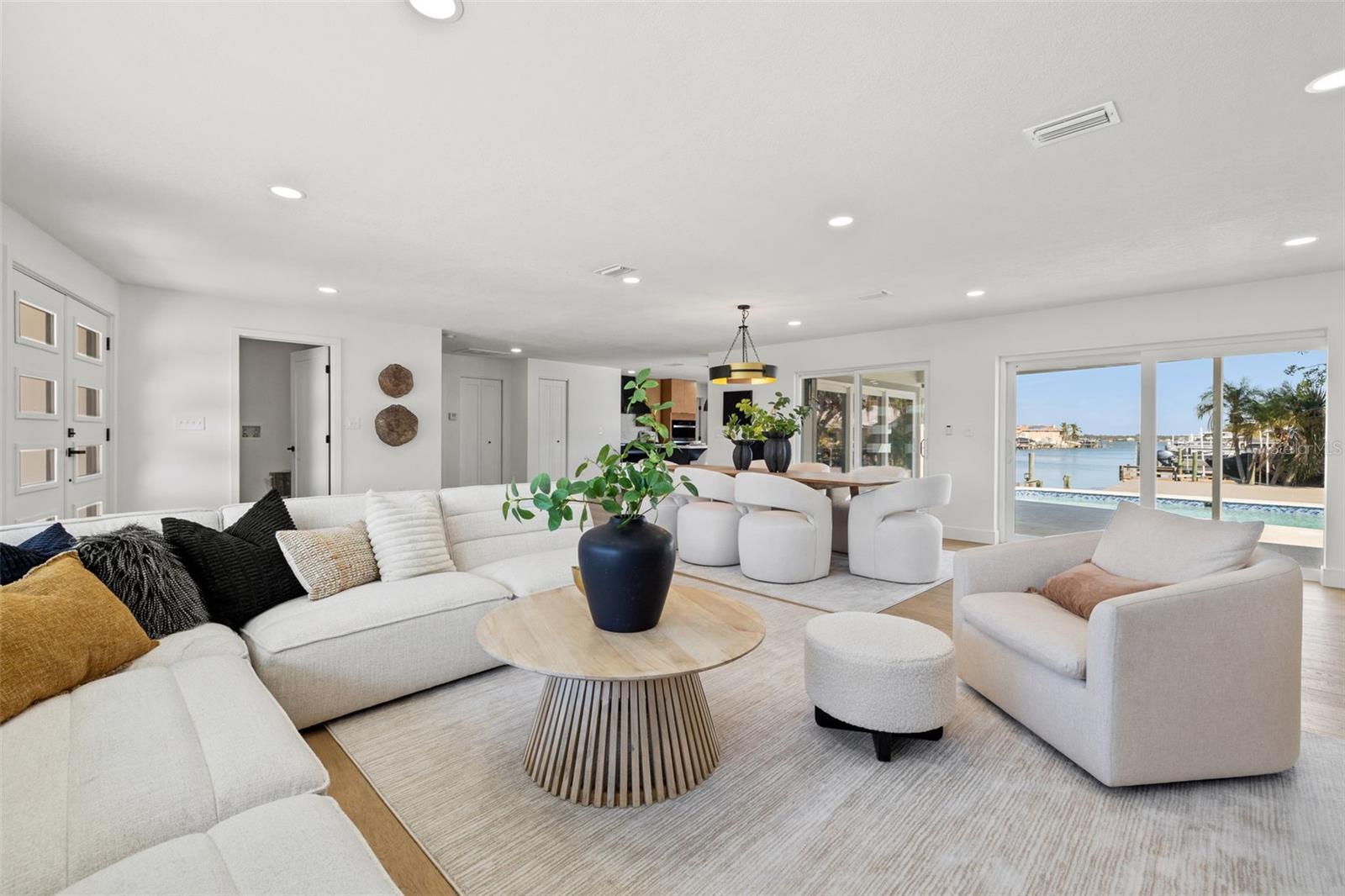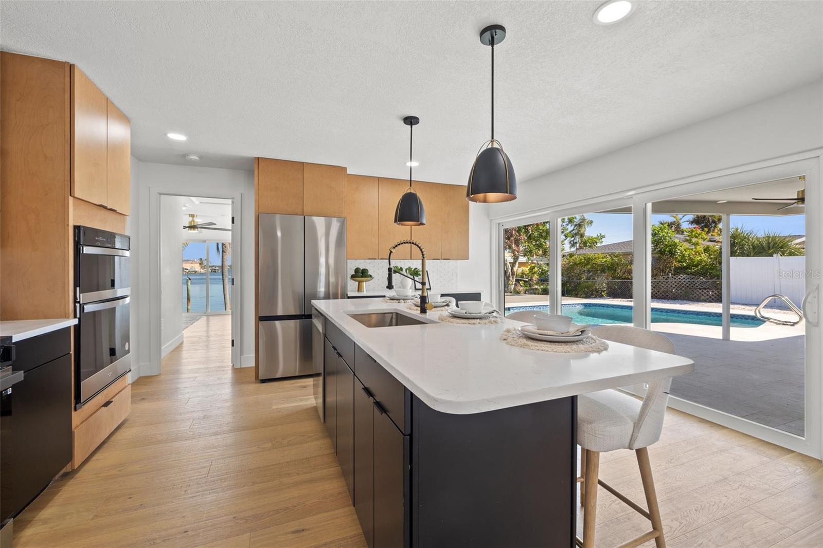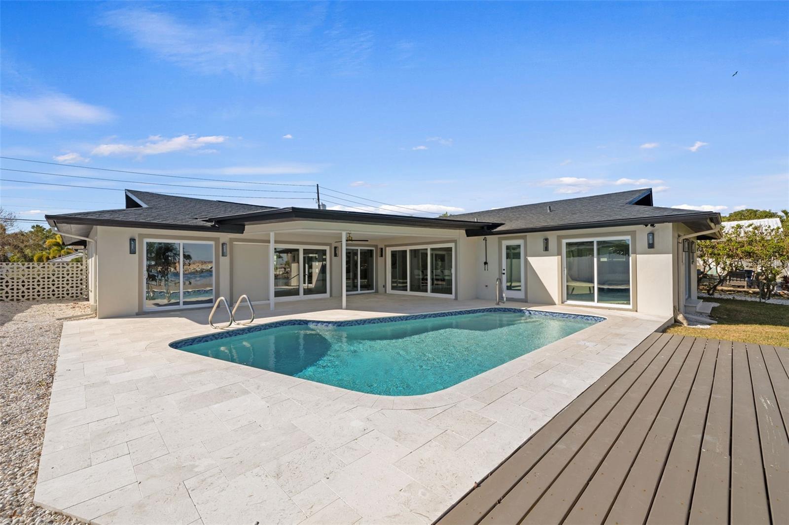 PRICED UNDER APPRAISAL VALUE! Modern Scandinavian Waterfront Home This stunning 4-bedroom, 5-bathroom home has stood the test of time and weather — has NEVER flooded per the seller. This beauty blends sleek modern design with Scandinavian elegance, offering luxurious waterfront living in a prime location. Situated on a large waterfront with sailboat water and direct, bridge-free access to Boca Ciega Bay, this property is perfect for boaters and water enthusiasts. The solid block construction provides durability and peace of mind, while the open-concept layout and modern finishes create a bright, airy interior. Every detail of this home has been thoughtfully updated, including new engineer hardwood floors, new ROOF, new HVAC and ductwork, new hurricane impact windows and doors, new bathrooms, water heater, paver driveway. The chef in your life will beam with pride at their new modern kitchen with ample cabinet and quartz countertop space — perfect for cooking up a storm with all the entertaining you’ll be doing! Better yet, the home has DOUBLE master suites, and every bedroom has a bathroom. This home is truly a gem. Outside, enjoy a sparkling pool surrounded by a stylish outdoor living area, perfect for relaxing or entertaining. The private dock offers easy access to open water, making this home ideal for those seeking a waterfront lifestyle. Located just minutes from pristine beaches, shopping, and dining, this home combines convenience with tranquility. With no history of flooding at all per the seller, it offers added security and long-term value. This is a rare opportunity to own a fully updated, move-in-ready waterfront retreat!