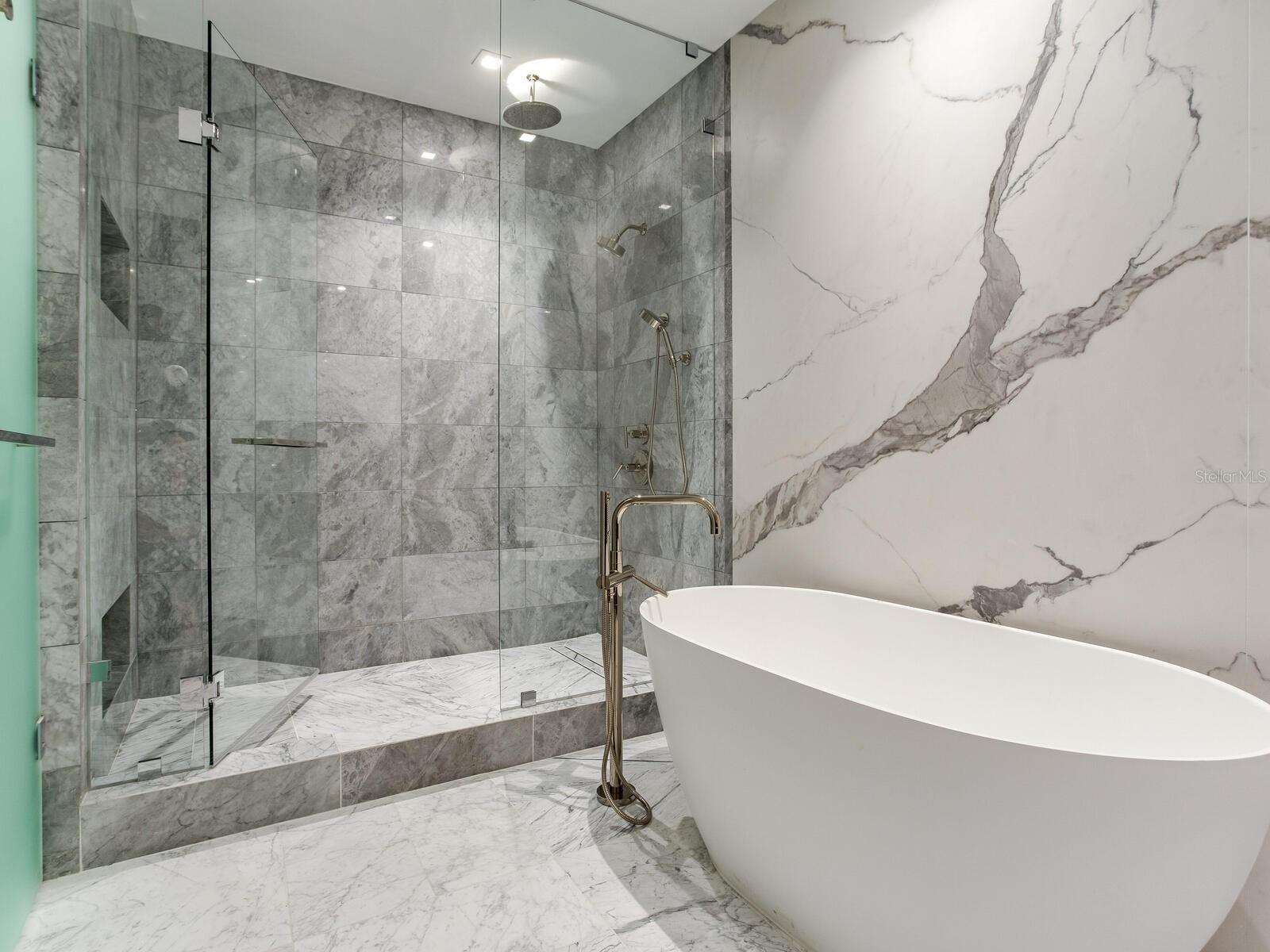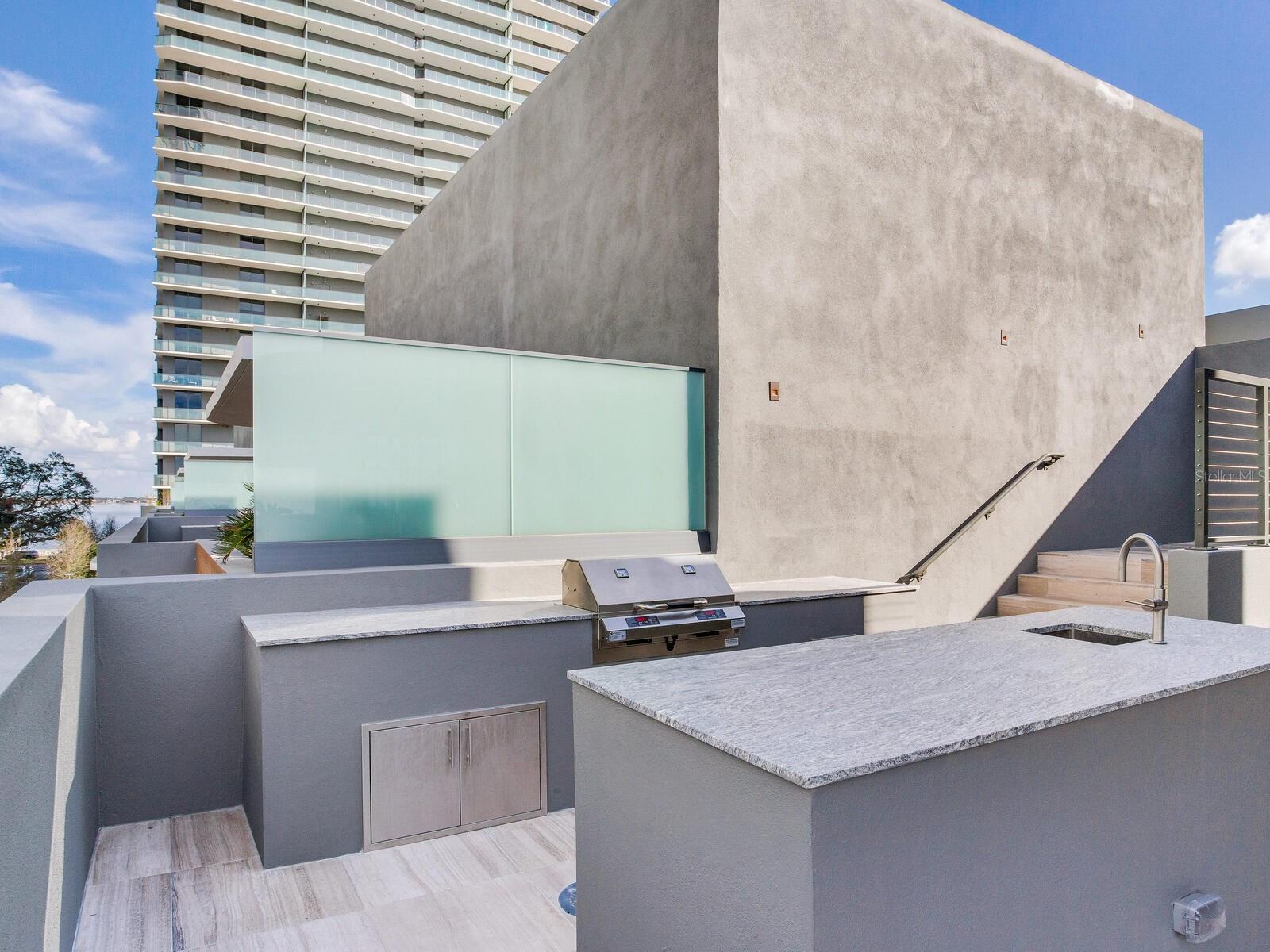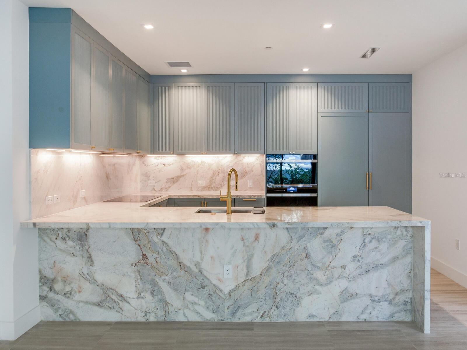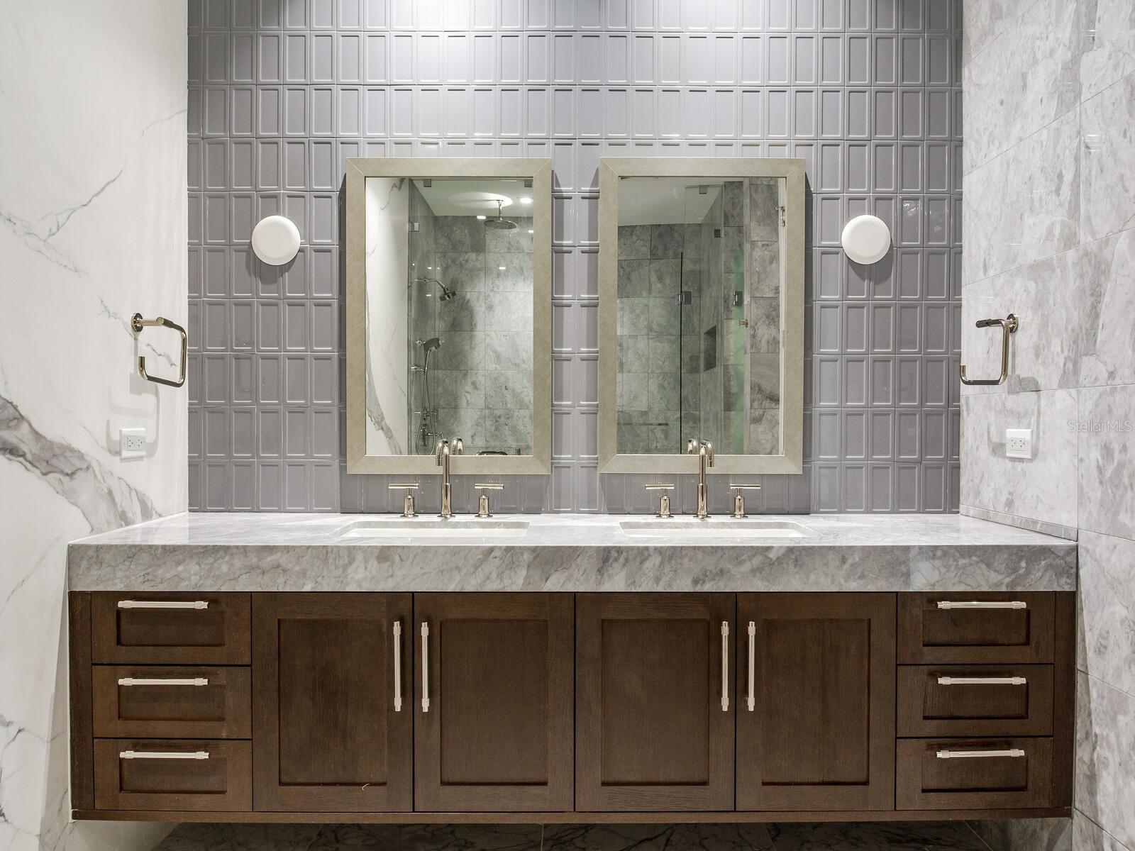 Welcome to the Ritz-Carlton residences, Tampa luxury townhome villa, steps from our iconic Bayshore Boulevard, many restaurants within walking distance and easy distance to all Tampa has to offer. You enter this contemporary townhome through a private courtyard to your front door. Once inside you are swept away with the soaring ceiling, floor-to-ceiling windows, stone flooring and natural light illuminating the residence. The first floor features a great room with 2 story ceiling and the dining room set behind, a first-floor guest room with on suite bathroom, your stunning kitchen and family room. The kitchen features custom cabinetry, above and below the counter tops from Italikraft, beautiful marble counter tops with full marble back splash and water fall edge. All appliances are wolf subzero and included steam oven, oven, beverage fridge, and an Asko dishwasher. The kitchen opens to the family room, so it is perfect for entertaining. You may ascend to the second floor via elevator or the stone staircase with glass railing. The second floor features a den area open downstairs and is frame by a contemporary glass railing. The second guest suite is on the west of the den and the stunning primary suite is on the right. The primary continues the excellence in design, has sliding doors opening to you private balcony (allowing a peak to Bayshore), wonderful walk in closet with custom closet system , and a spa like bathroom, of marble and stone, dual vanities, stunning bathtub , and walk ins seamless glass shower. The third features a very large bonus room with a full bathroom and closet so could become a bedroom if needed. This room has large sliders opening to a huge private terrace with outdoor kitchen, spa, and some water view. This lives like a private home with all the amenities and services of a Ritz-Carlton. The building amenities and services surpass all others. This is a residence not to miss!