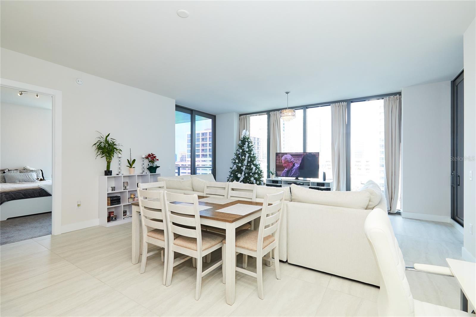 Experience luxury living in the heart of downtown St. Petersburg with Residence 804 at Saltaire. This upgraded 2-bedroom plus den, 3-bath condominium offers 2,036 square feet of open space with panoramic city views and partial water views, soaring 10-foot ceilings, sleek tile flooring, and a gourmet kitchen with premium finishes. The den easily converts to a third bedroom or private home office, while the spacious balcony with new electric shutters provides the perfect spot for sunset views. Additional features include two garage spaces with a private EV charger and dedicated storage. Saltaire residents enjoy resort-style amenities such as a 7th-floor pool deck and outdoor kitchen, a state-of-the-art fitness center, 24/7 security, valet, and concierge services—all just steps from the Pier, Beach Drive, waterfront parks, dining, and cultural attractions. Priced to sell, seller motivated—bring all offers!