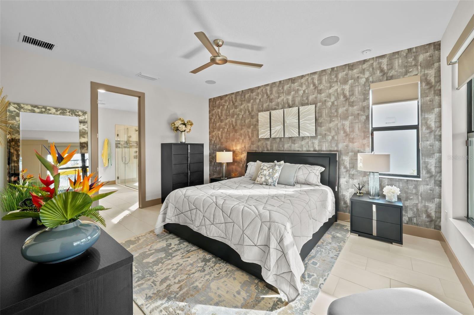 This stunning home, located in a vibrant 55+ community, boasts upgrades at every turn. Step outside to discover an expansive outdoor kitchen, perfect for entertaining, overlooking a luxurious pool and an extended caged lanai, offering the ultimate in outdoor living. The home features a bright and airy open floor plan, with a thoughtfully designed split layout that provides both privacy and spaciousness. Inside, the gourmet kitchen will inspire the chef in you with soft-close cabinetry, gas cooktop, stainless appliances, while the oversized island with a waterfall edge serves a stunning centerpiece, all open to the casual dining area and family room. The whole house has porcelain tile, 8’ solid core doors, custom trim package, upgraded lighting with dimmer switches, custom closets and window treatments. The owner’s suite features double vanities, frameless shower with seat, designer cabinetry and upgraded plumbing fixtures. You also enjoy access to a resident-exclusive clubhouse that features outdoor amenities including pickleball & tennis courts; a dog park with large & small breed sections; wide, lit walkways; resort-style pool and spa; resistance pool; event plaza with food court truck; bocce courts and outdoor social areas. The Cresswind SmartFIT Training Center is powered by EGYM and uses state-of-the-art fitness technology. The full-time Lifestyle Director keeps the social and event calendar full of activities designed for the 55 + lifestyle. This home is the epitome of modern comfort and style, with every detail meticulously designed to create a serene and inviting atmosphere.