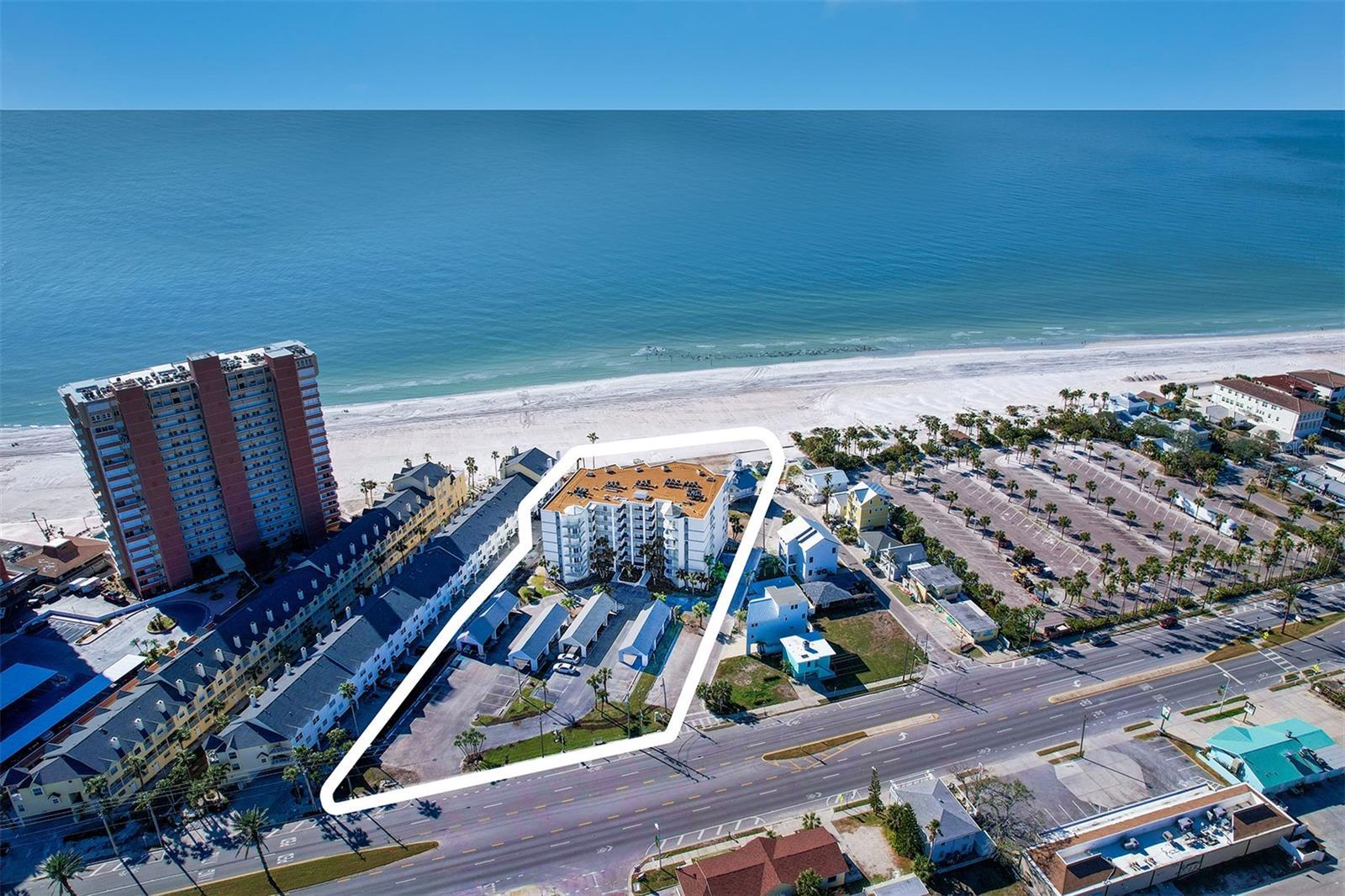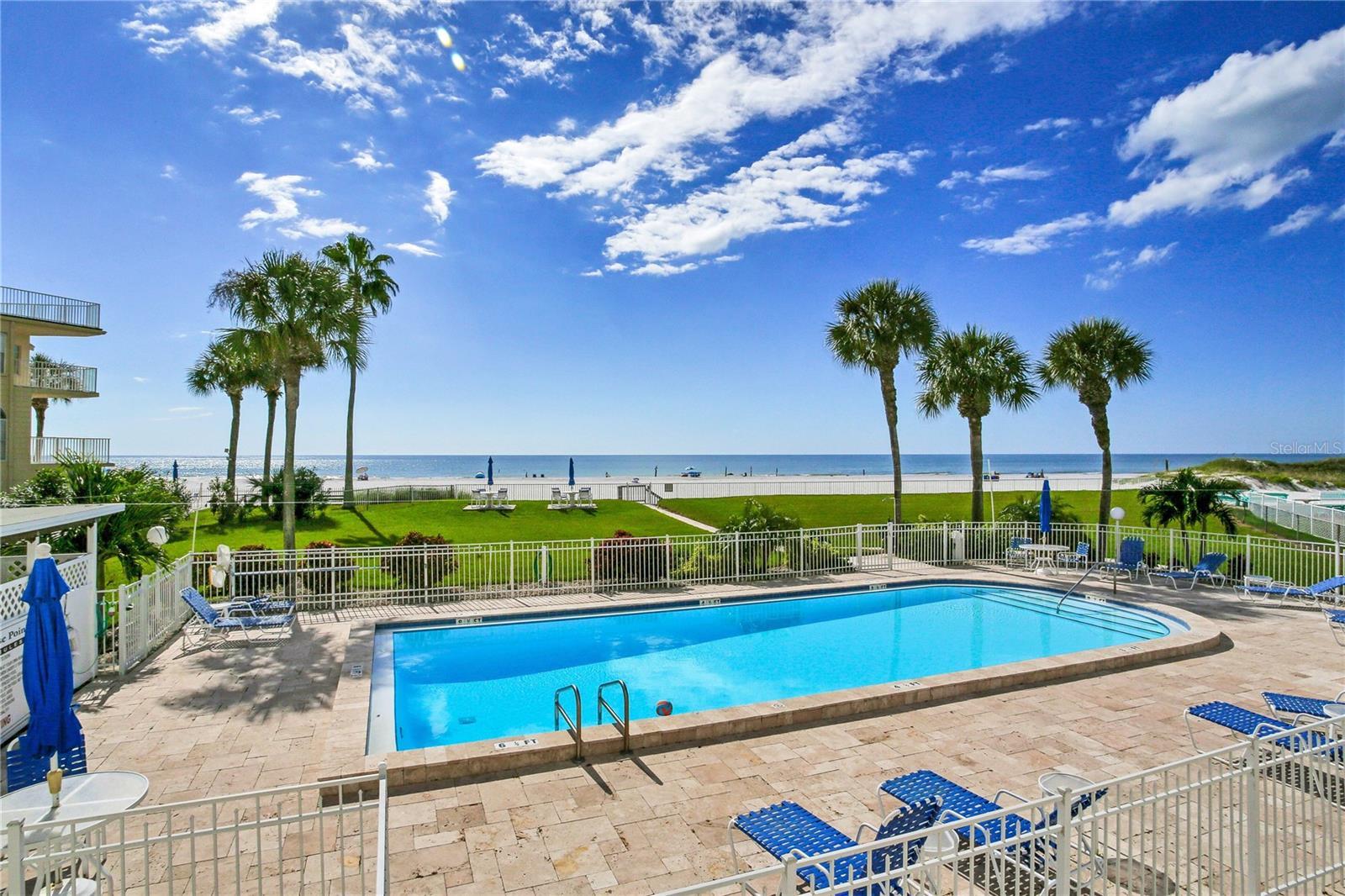 Fantastic beachfront opportunity in the highly regarded Lighthouse Pointe in Redington Shores! This 2-bedroom, 2-bath direct beachfront condo is spacious with over 1,200 square feet and comes fully furnished – turnkey ready. There are gorgeous beach and Gulf of Mexico views from just about everywhere in the condominium. Both the primary bedroom and living room lead out onto a large 8-foot x 22-foot open-air balcony overlooking the pool, beautifully landscaped grounds, and white sandy beaches. Best of all this unit has a rare private spiral staircase leading down to all these mentioned amenities. The kitchen has white wood cabinetry, stainless steel appliances and countertops for easy clean up after cooking, and a convenient breakfast nook. Additional perks include a covered under-building parking space, private storage locker, shared storage for bikes and beach toys, beachfront pool, grilling permissible on balconies, and tons of guest parking. Fully funded association. Lighthouse Pointe is located on one of the widest stretches of beach in the area where you can enjoy what this local paradise has to offer - fishing, shelling, snorkeling, sunbathing, jet skiing, boating, paddle boarding, epic sunsets, and more. Located near many shops, restaurants, pubs, live music, and more. Don’t miss this opportunity, schedule your private tour now.