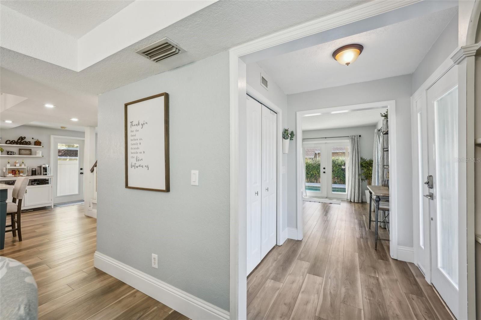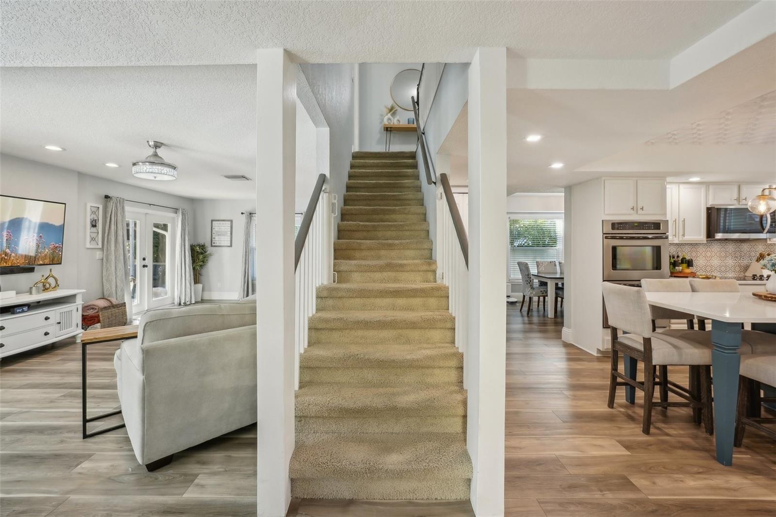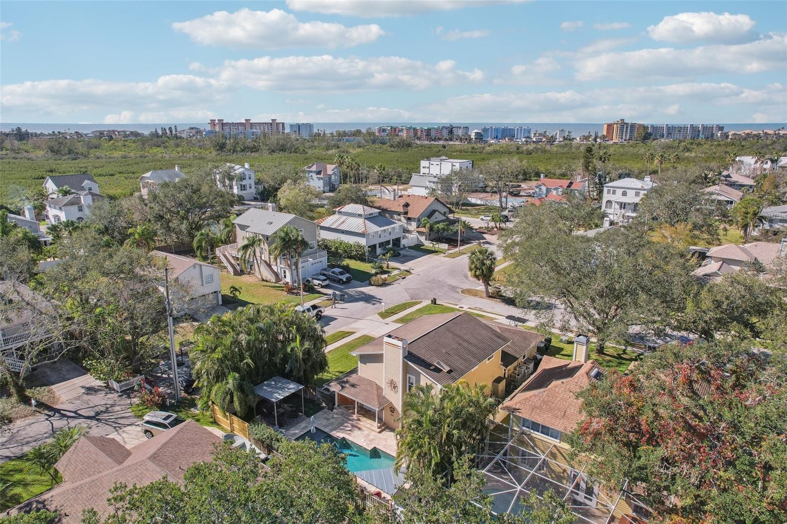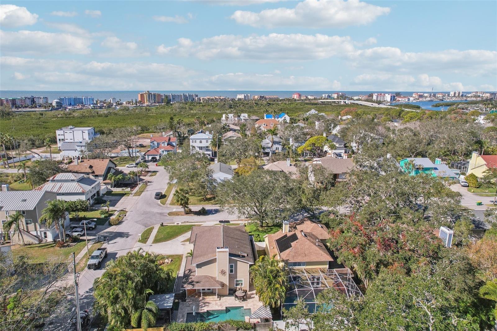 3 Bedrooms + Bonus Room | 2.5 Baths | NO WATER INTRUSION FROM HELENE Live the beach lifestyle without the beach price! Only half a mile to the sand. Welcome to your personal paradise in the highly desirable Crossing at the Narrows in West Seminole. This beautifully maintained corner-lot home was not impacted by floodwaters from Helene and features major upgrades including impact-resistant windows and doors, plus Hardie Board siding. The first floor offers a spacious living room, dining room, updated kitchen, renovated laundry room with custom cabinetry and quartz countertops, and a 330 sq ft bonus family room ideal for a home office, gym, playroom, or home theater. The entire downstairs was renovated in 2021 with LVP flooring, 8” baseboards, and a fully remodeled kitchen featuring custom ceiling panels, an extended quartz island, quartz countertops, custom tile backsplash, and newer appliances including refrigerator, dishwasher, microwave, and wine cooler. French doors off the living room open to a private backyard oasis designed for entertaining. Enjoy a saltwater pool with LED lighting, two sun shelves with bubblers, an in-floor cleaning system, and umbrella holder. The custom 10x10 deck includes a metal roof and power for TV, music, lighting, and fans. Additional covered space is perfect for grilling, smoking, or shaded poolside seating. With travertine decking, turf, mature Arecas for privacy, and custom fencing, the backyard is both beautiful and low-maintenance. The expansive upstairs primary suite spans the width of the home and offers a walk-in closet and ensuite bath with double vanity and a walk-in shower with dual rain shower heads. Also upstairs are two generously sized additional bedrooms and a full guest bathroom. Located on a corner lot with an extended driveway, this home provides easy parking for a boat or RV—just one mile from the nearest boat ramp. Indian Shores Beach is right across the Park Blvd bridge, making sunset walks and morning bike rides a daily option. Close to shops, dining, and just minutes from Seminole City Center.