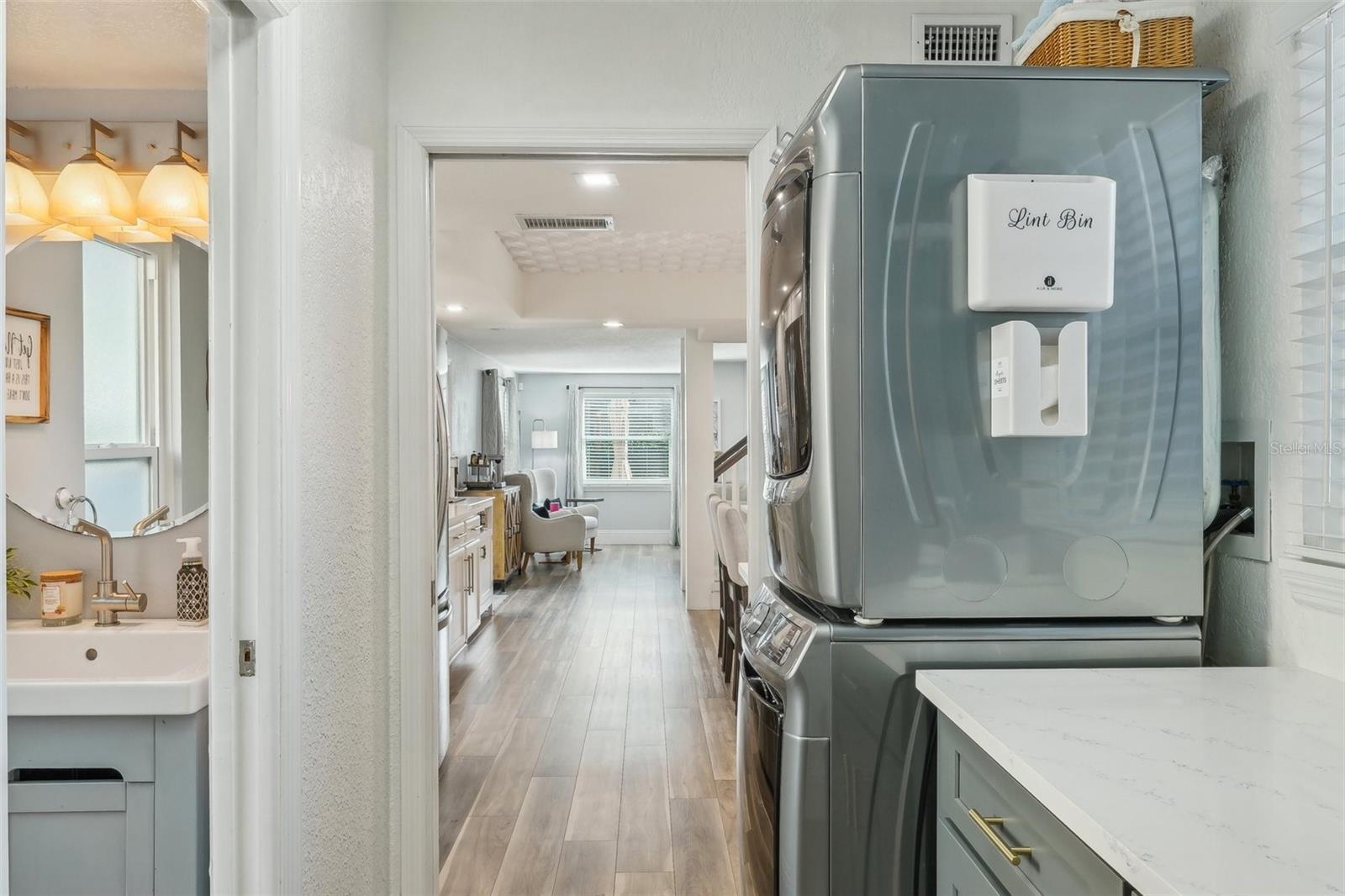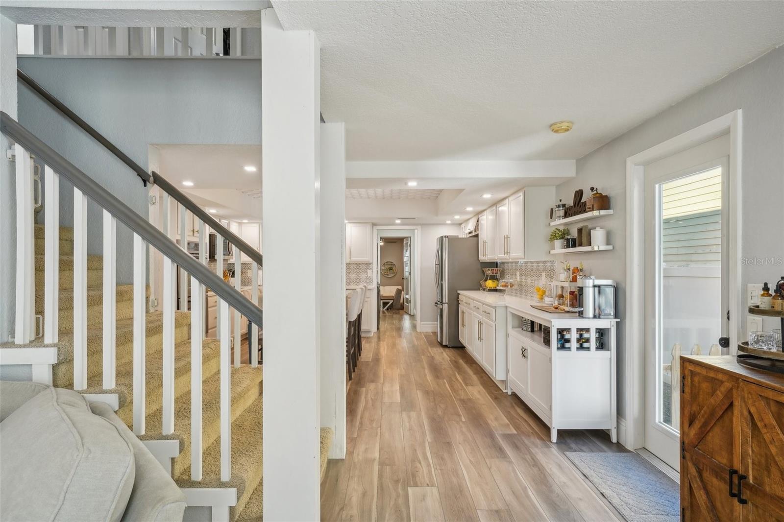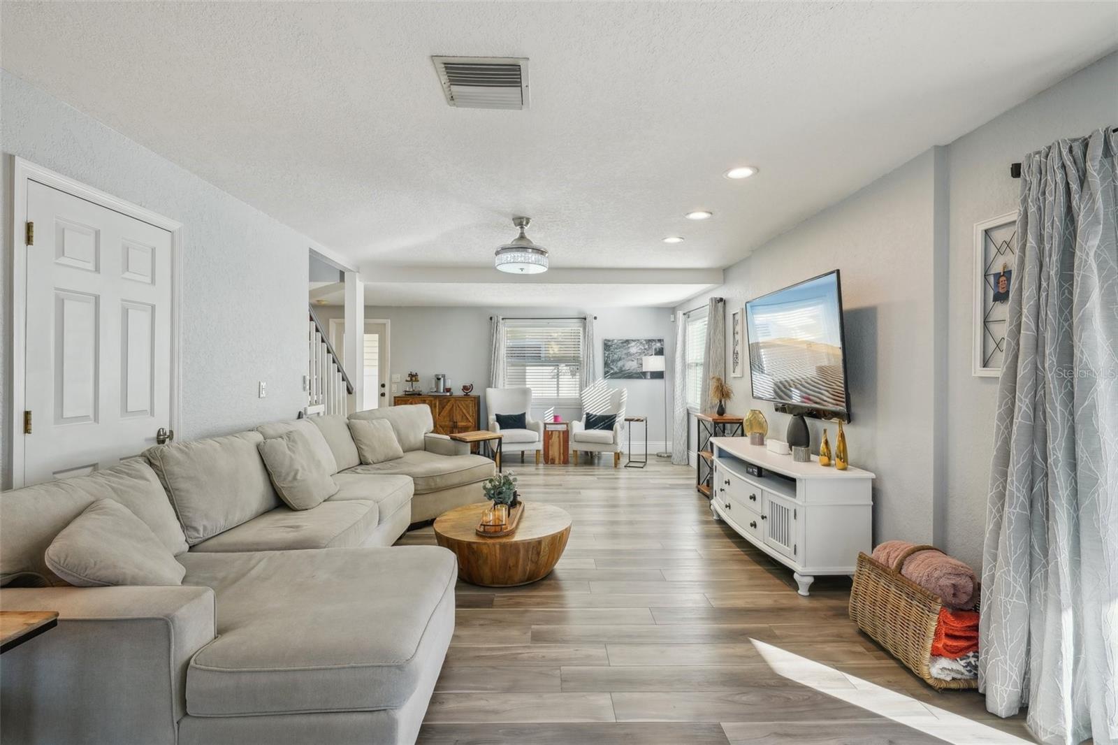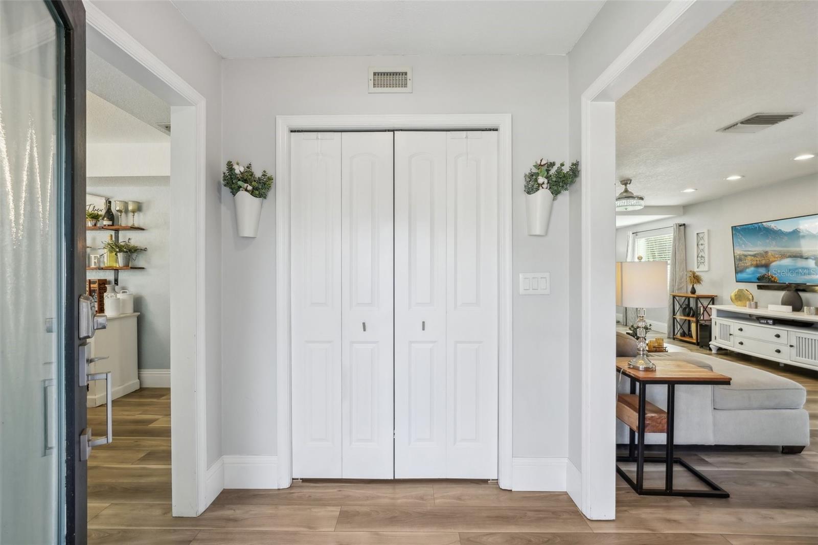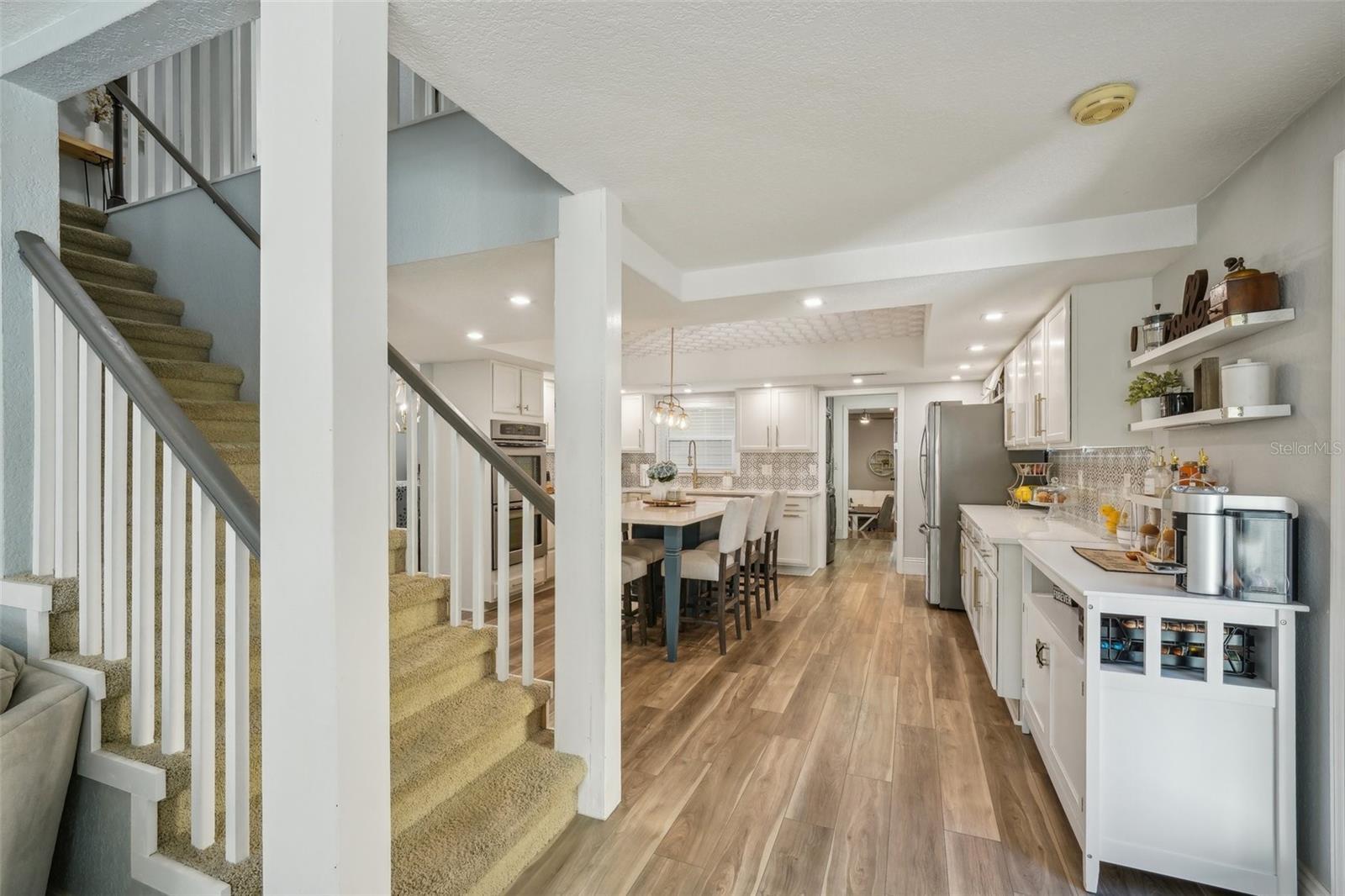 3 Bedrooms + Bonus Room | 2.5 Baths | NO WATER INTRUSION FROM HELENE Live the beach lifestyle without the beach price! Only half a mile to the sand. Welcome to your personal paradise in the highly desirable Crossing at the Narrows in West Seminole. This beautifully maintained corner-lot home was not impacted by floodwaters from Helene and features major upgrades including impact-resistant windows and doors, plus Hardie Board siding. The first floor offers a spacious living room, dining room, updated kitchen, renovated laundry room with custom cabinetry and quartz countertops, and a 330 sq ft bonus family room ideal for a home office, gym, playroom, or home theater. The entire downstairs was renovated in 2021 with LVP flooring, 8” baseboards, and a fully remodeled kitchen featuring custom ceiling panels, an extended quartz island, quartz countertops, custom tile backsplash, and newer appliances including refrigerator, dishwasher, microwave, and wine cooler. French doors off the living room open to a private backyard oasis designed for entertaining. Enjoy a saltwater pool with LED lighting, two sun shelves with bubblers, an in-floor cleaning system, and umbrella holder. The custom 10x10 deck includes a metal roof and power for TV, music, lighting, and fans. Additional covered space is perfect for grilling, smoking, or shaded poolside seating. With travertine decking, turf, mature Arecas for privacy, and custom fencing, the backyard is both beautiful and low-maintenance. The expansive upstairs primary suite spans the width of the home and offers a walk-in closet and ensuite bath with double vanity and a walk-in shower with dual rain shower heads. Also upstairs are two generously sized additional bedrooms and a full guest bathroom. Located on a corner lot with an extended driveway, this home provides easy parking for a boat or RV—just one mile from the nearest boat ramp. Indian Shores Beach is right across the Park Blvd bridge, making sunset walks and morning bike rides a daily option. Close to shops, dining, and just minutes from Seminole City Center.