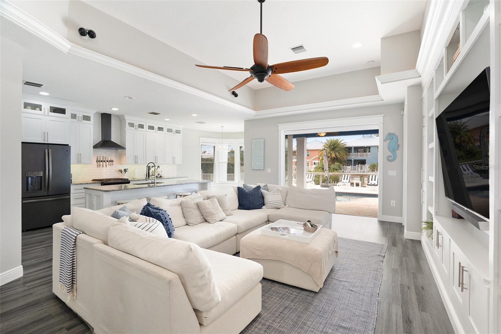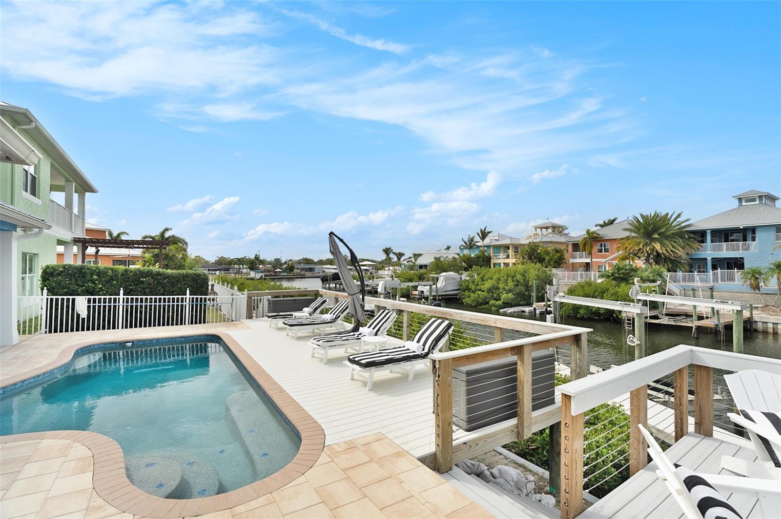 Under contract-accepting backup offers. MAJOR PRICE REDUCTION!!!!!! Welcome to 6408 Key Island Ave, a stunning waterfront retreat in the gated community of Bimini Bay. Perfectly situated on a peaceful cul-de-sac, this beautifully remodeled ranch-style home combines modern coastal design, everyday comfort, and breathtaking water views into one exceptional lifestyle. Built in 2009 and thoughtfully reimagined in recent years, this home showcases upscale finishes and effortless style throughout. Step inside to soaring ceilings, custom shiplap accents, and an open, sunlit floor plan designed for both relaxation and entertaining. Just off the entry, a versatile office with sliding barn doors features built-in cabinetry and a cozy window seat and is ideal for remote work, a formal dining room, or even a potential 4th bedroom if desired. The heart of the home is the chef-inspired kitchen, featuring a gas range, 42” cabinets, sleek countertops, and a charming bay-window breakfast nook with built-in bench seating and hidden storage while all overlooking tranquil water views. Step outside to your private waterfront oasis, where the resurfaced solar-heated pool (2024) invites year-round enjoyment. The expanded pool deck, fire pit area, and private boat lift make this the perfect setting for outdoor living and entertaining. The spacious primary suite opens directly to the lanai and features a spa-like ensuite bath with a rainfall shower and modern finishes. Luxury vinyl plank flooring flows throughout the home, complemented by automatic blinds and thoughtful upgrades at every turn. Additional improvements include a new A/C and water heater (2023). Now offered at a dramatically reduced price, this is your chance to own a true waterfront masterpiece in Apollo Beach. Don’t miss the opportunity to make this incredible home yours. Schedule your private showing today and experience the elevated coastal lifestyle that awaits.
