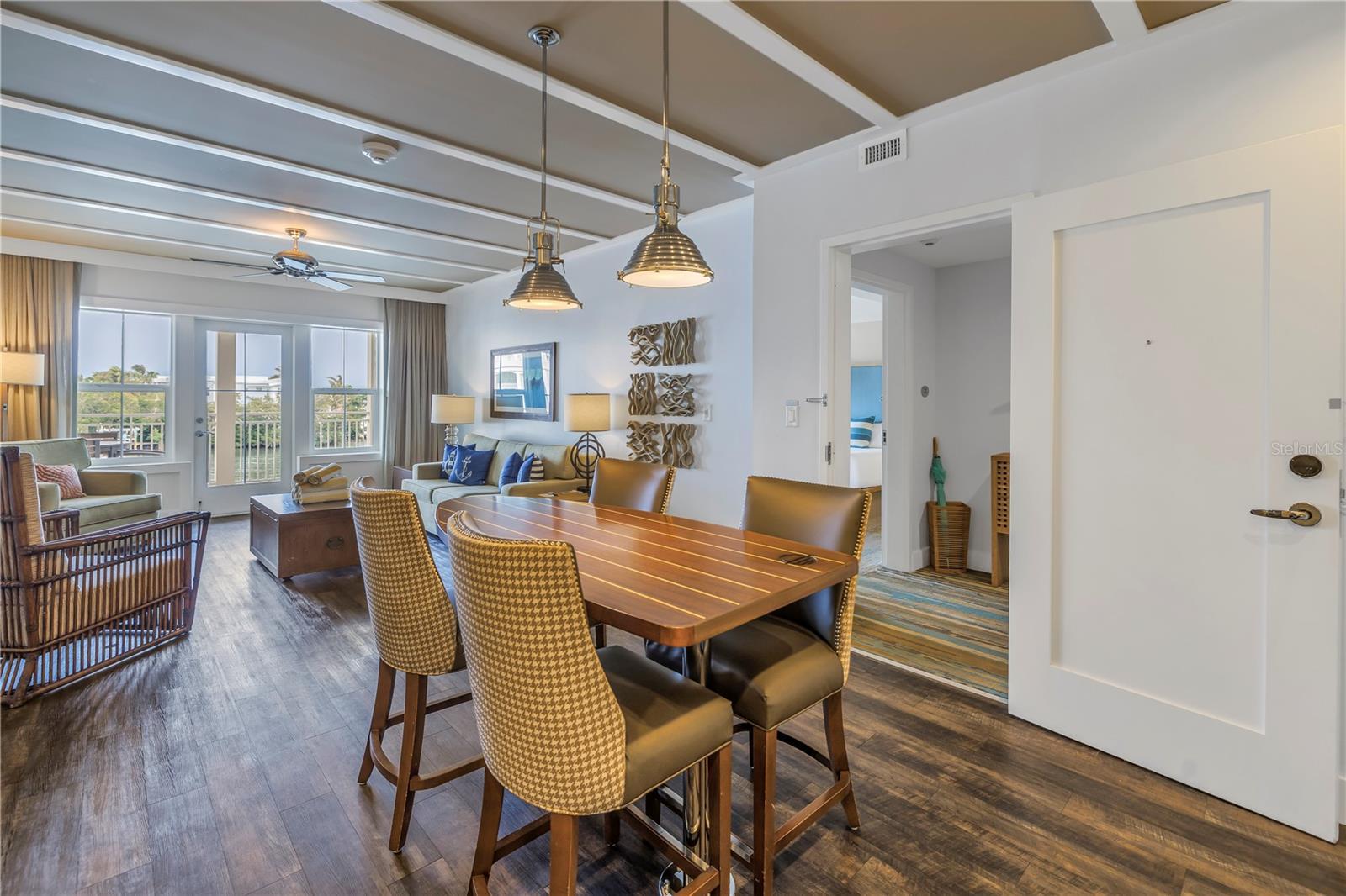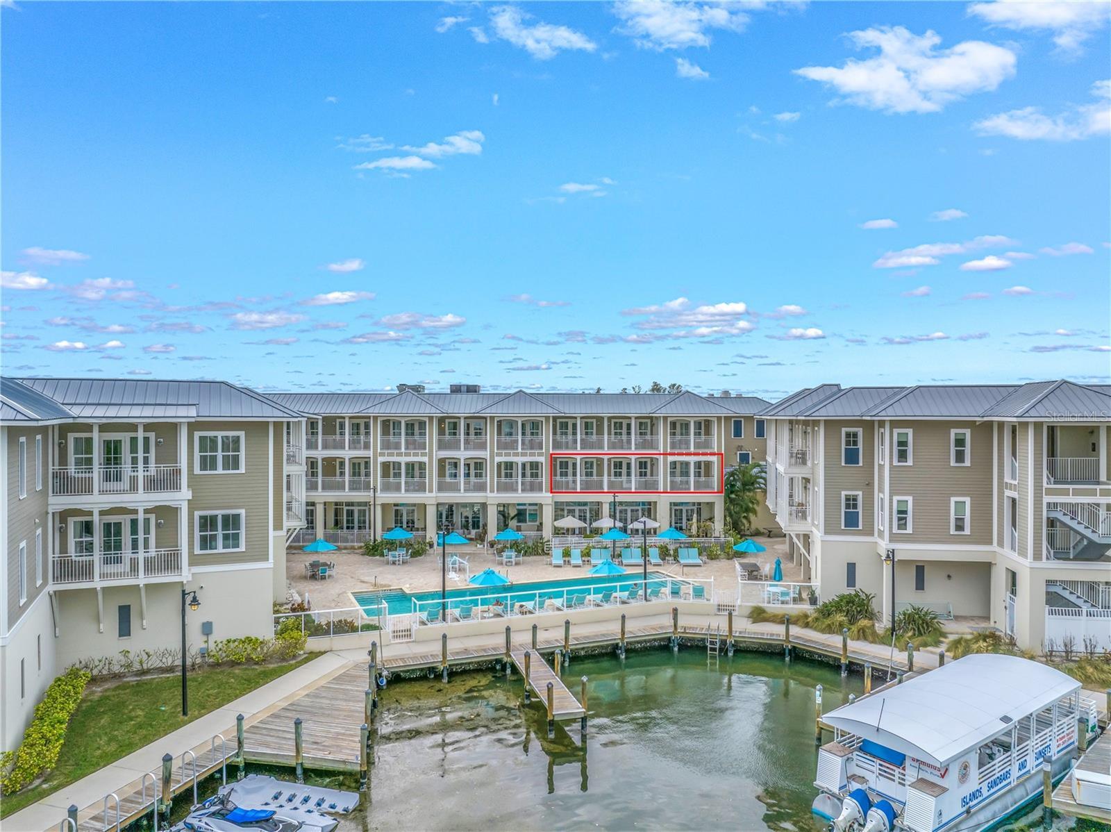 Experience the ultimate in resort-style living at Waterline Villas & Marina, nestled on the picturesque Holmes Beach of Anna Maria Island. This beautifully appointed corner unit with a highly sought after floor plan features a 2-bedroom, 2-bathroom condo that offers a seamless blend of coastal charm and modern sophistication. Enter through French doors into a welcoming hallway that leads you to the spacious guest bedroom, featuring two queen-sized beds and an ensuite bathroom. The inviting atmosphere is perfect for family or friends, with ample room and comfort. As you continue through the unit, you'll be drawn to the heart of the home; the open-concept kitchen and living area. Warm wood accents throughout create a cozy, coastal ambiance. The living room offers a comfortable space to relax and unwind, with access to the expansive balcony overlooking the serene pool and canal. The primary suite is a true retreat, complete with a king-sized bed and an ensuite bathroom for added privacy and convenience. Each area of the condo opens to the balcony, enhancing the indoor-outdoor living experience. This prime location within the building offers views of the canal and intercoastal waters, setting the stage for memorable moments. Waterline Villas & Marina is not just a place to stay; it’s a destination. Enjoy resort-like amenities such as an on-site restaurant, fitness center, and a banquet room. For the water enthusiast, boat slips are available on a first-come, first-served basis, and bicycle rentals make exploring the island a breeze. Part of Marriott's Autograph Collection, this unit benefits from professional management, ensuring a consistent revenue stream year after year. The unit is zoned to allow owners to occupy it for up to 120 days annually, providing a flexible ownership experience with the option to enjoy the property personally or generate income through nightly rentals. With a strong rental history, prime location, and luxury amenities, this condo offers a unique opportunity for both personal enjoyment and investment. Don’t miss the chance to own a piece of paradise at Waterline Villas & Marina.