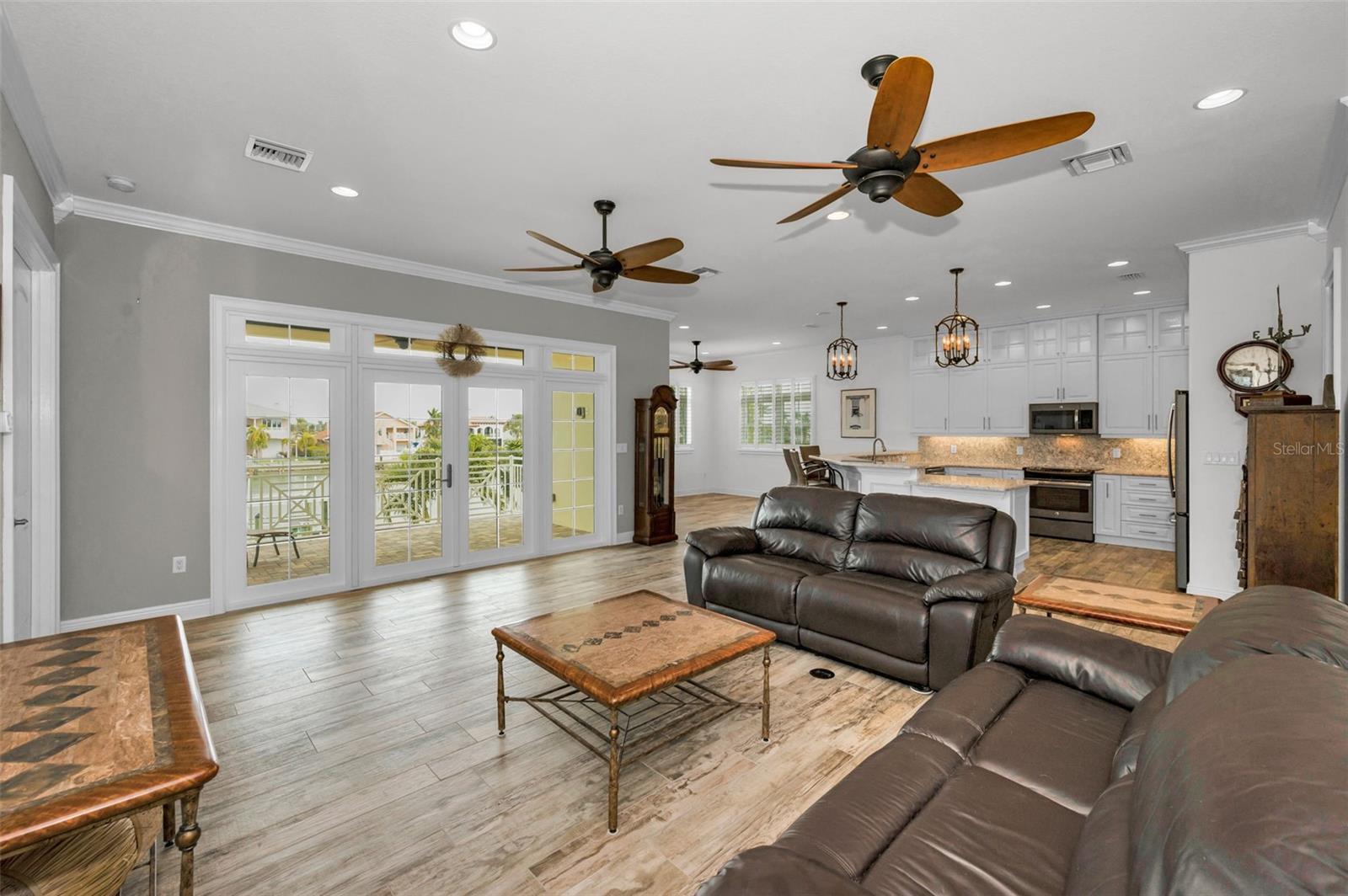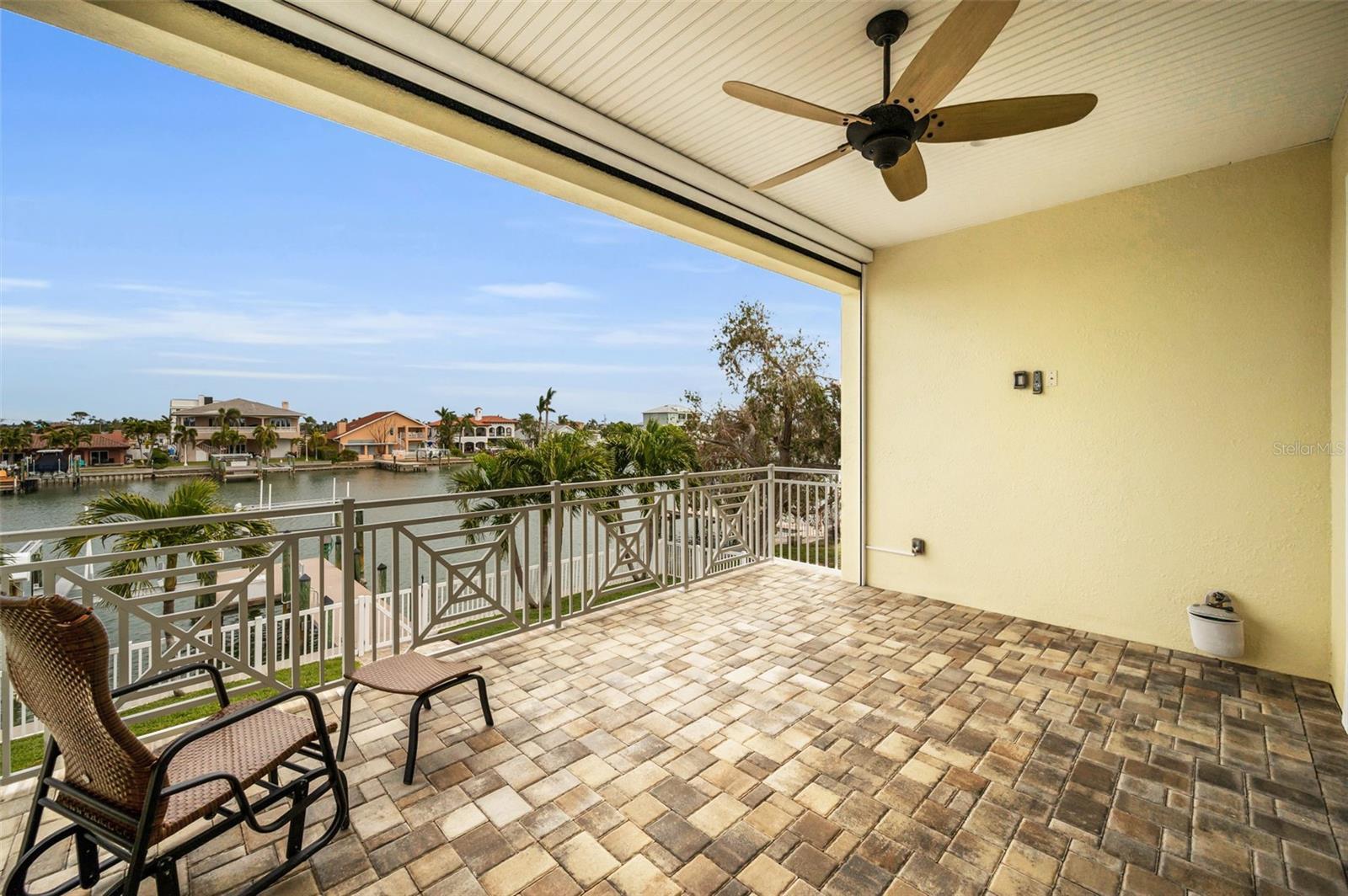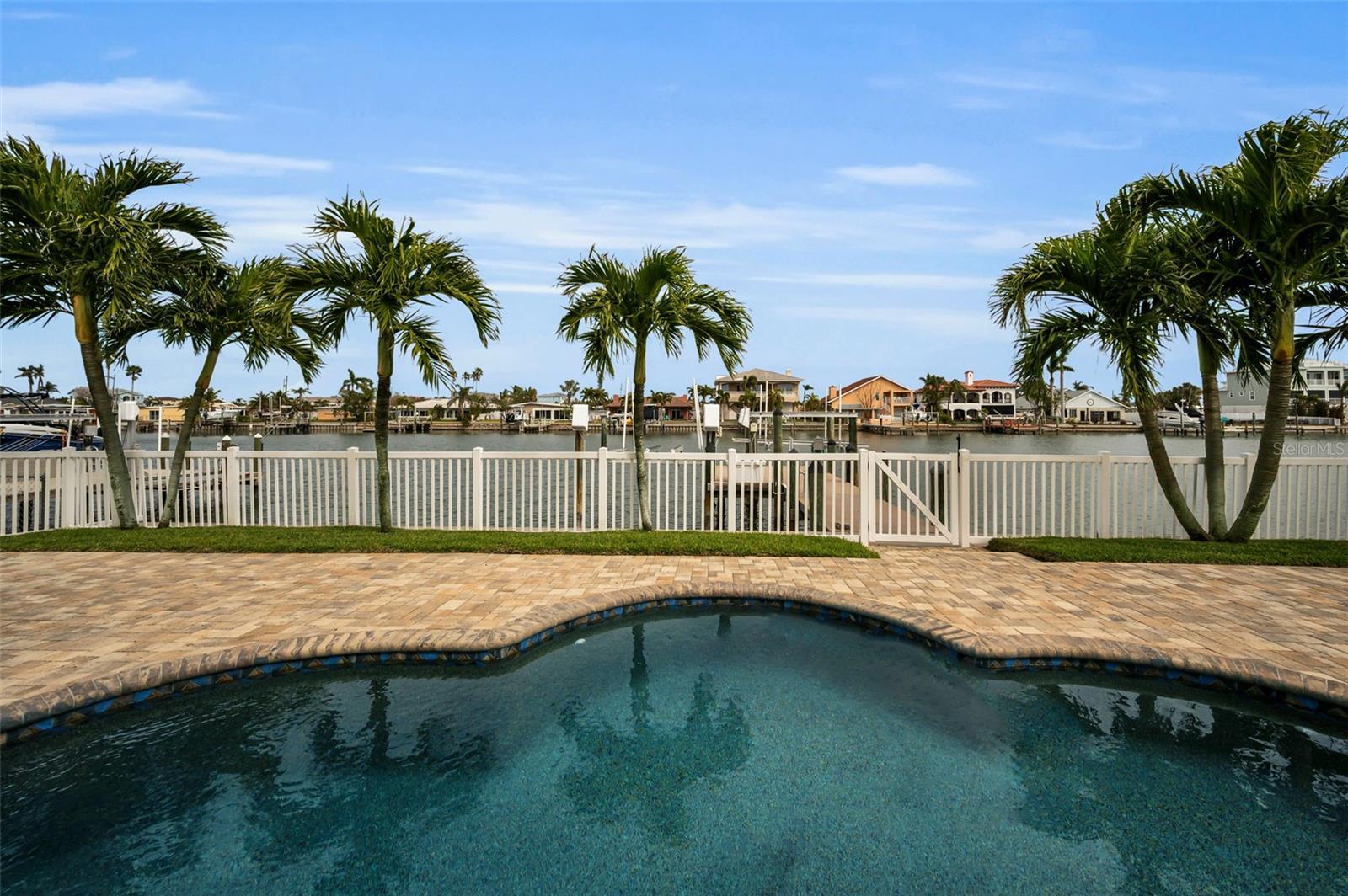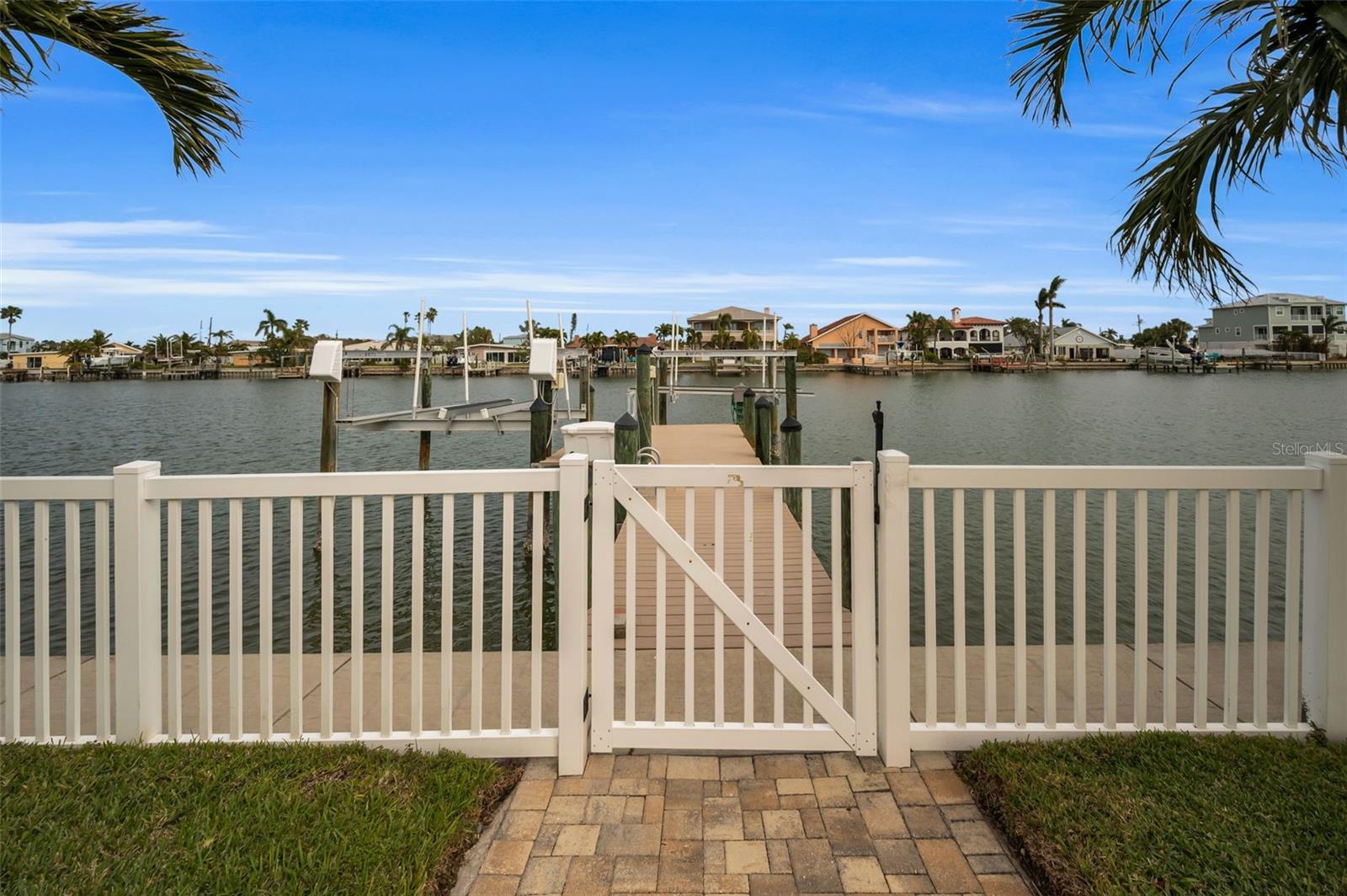 Built-to-last above base flood elevation with all block construction and poured concrete floors, you’ll appreciate the peace of mind offered by this exceptional waterfront residence. A spacious brick paver driveway, generous 6-car garage parking, and two 10,000 lb boat lifts make this the perfect place for your vehicles and watercraft. Driftwood-style porcelain floors, lovely crown woodworking and tall 10ft-high ceilings introduce a wonderful open floorplan with beautiful views of the waterfront. Your spacious living room opens to an elegant 225sqft covered balcony with a built-in electronic sunshade. Fabulous chef’s kitchen boasts fine quartz counters/backsplash, rich coastal cabinetry, huge wrap-around multi-level breakfast bar, under and above cabinet lighting, and pantry closet. Double doors open to a fabulous waterfront owner’s suite that opens to the waterfront balcony and features two walk-in closets with built-in dressers. Owner’s bath provides dual quartz vanities and an exquisite designer walk-in shower with seating bench. Second bedroom is oversized and en suite, and has a graceful bath with jetted tub and shower. Third bedroom is spacious and has a walk-in closet with adjacent full guest bath. Out back discover a huge 470sqft covered deck that transitions to a large paver area with a gorgeous Pebbletech Pool/Spa. Deck offers lots of lounging space and covered outdoor dining. Updated seawall supports a composite dock with two boat lifts. Bahamian shutters on the outside, plantation shutters on the inside, large and well-finished laundry room with extensive cabinetry storage, lower-level multi-purpose area, large 8ft-high elevator, PVC privacy fencing, and so much more. Located within easy walking distance of the beach, dining and entertainment. An outstanding value in an excellent waterfront boating community! Buyer to verify all dimensions. Bathroom Mirror does not Convey.