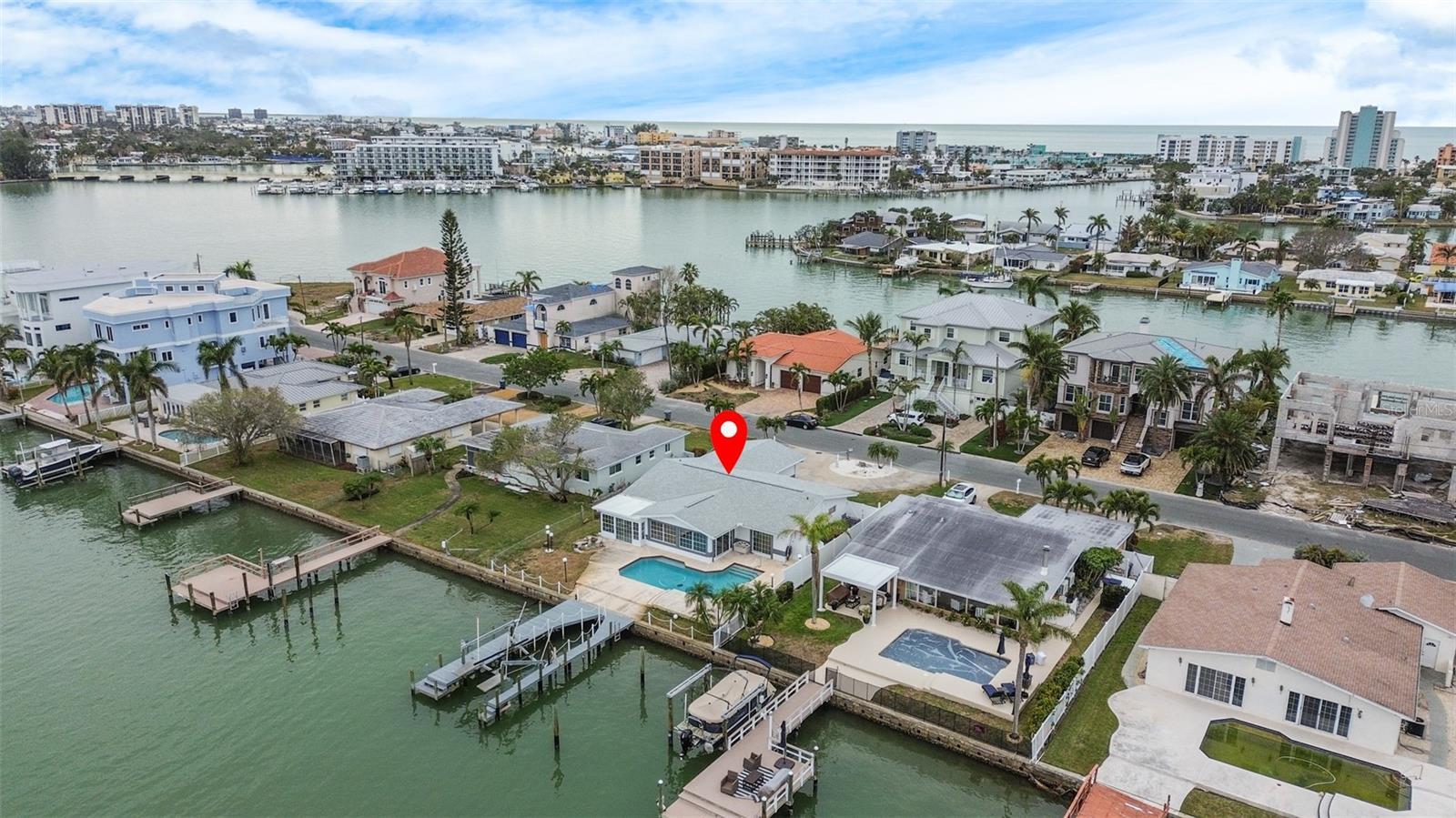 Under contract-accepting backup offers. Your Slice of Paradise Awaits! Welcome to the Isle of Palms, an idyllic Intracoastal neighborhood in Treasure Island, just steps away from the pristine sandy beaches of Treasure Island. This incredible property offers the perfect combination of location, lifestyle, and potential. Nestled on 5th St. East, the highest street in the neighborhood, this home enjoys breathtaking sunrise views over open water and sits on a deep-water lot, perfect for boating enthusiasts. The dock previously accommodated a 40-foot Scarab, offering ample space for your water toys and adventures. The home features a desirable split floor plan, presenting the option to restore its charm or start fresh by building your dream waterfront home or a perfect deep water lot to design your dream home. While the property experienced the rare 100-year storm of Hurricane Helene, its potential is undeniable. Located just minutes from restaurants, entertainment, grocery stores, and more, this property also provides convenient access to the heart of St. Petersburg, making it a perfect blend of tranquility and accessibility. Opportunities like this are rare—don’t let it slip away!