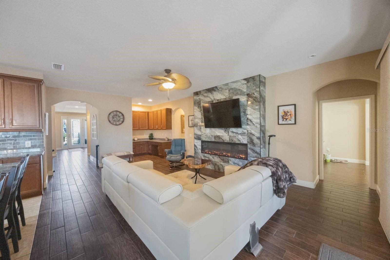 Welcome to your dream 3 bedroom PLUS OFFICE home nestled in Grand Cypress on Lake Tarpon, a serene gated community, offering the perfect blend of functionality, luxury, and timeless style. This charming abode in a NON FLOOD ZONE boasts a spacious layout with an open floor plan, creating an inviting ambiance ideal for both family living and entertaining. Curb appeal draws you in with a beautiful paver driveway and lush landscaping. Then you open the front door into a spacious foyer which leads to the heart of the home, where the living area seamlessly flows into the dining room and kitchen, providing a versatile space for gatherings and relaxation. The chef's kitchen is a standout feature, boasting stainless steel appliances, a double oven, a built-in wine rack, and gas cooking for precision and ease. A butler’s pantry and a walk-in pantry provide ample storage space, making it perfect for entertaining and everyday living. Enjoy casual meals at the breakfast bar or in the nook…you have both! The dining room is large enough for a crowd or small enough for an intimate dinner, and features a tray ceiling. The heart of the living space is the inviting fireplace, adorned with stunning new Italian marble, offering both warmth and elegance. A cozy desk area is tucked into the corner of the great room, keeping the family connected. Step outside to the charming lanai through sparkling sliding doors in the great room, and relax in the hot tub as you enjoy backyard views. After a long day, retreat to the primary bedroom suite which includes a sitting/workout area, a 12x12 walk in closet with organizers and a stunning bath with double sinks in a stylish vanity, a soaking tub, a stellar stall shower and a separate water closet. The split bedroom plan provides privacy and flexibility, catering to a variety of lifestyles. The two additional bedrooms are spacious and accomodating and share an attractive bathroom. A generous office at the front of the home is accessible through French doors, offering both privacy and functionality. Pass thru the mud room into the Laundry room, making laundry day a breeze! The roomy laundry room also features a laundry sink for convenience, and shelves for storage. An adorable half bath completes the inside! Step outside to a nice fenced yard with a firepit to enjoy on chilly evenings. With a three-car garage providing ample parking and storage space, along with a water softener and amenities and access to Lake Tarpon, this home is perfect for any family. But the perks of this home don't end there. This home offers a brand new Hot Water Heater, new coils on the A/C, a newer dishwasher, washer and dryer, and microwave, new gutters installed, a newer hot tub, and a freshly painted exterior and interior. All this, and a fabulous location close to shopping, beaches, fine dining, world class golf, and just 30 minutes to Tampa International airport. Add the proximity to downtown Tarpon Springs and our famous Sponge Docks, and this home has it all!