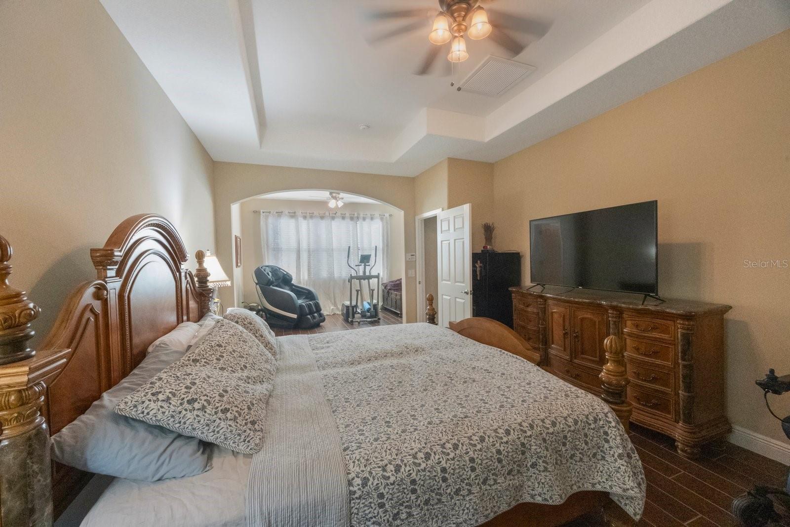 - Ceiling Fans(s), High Ceilings, Open Floorplan, Primary Bedroom Main Floor, Solid Surface Counters, Thermostat, Tray Ceiling(s), Walk-In Closet(s)