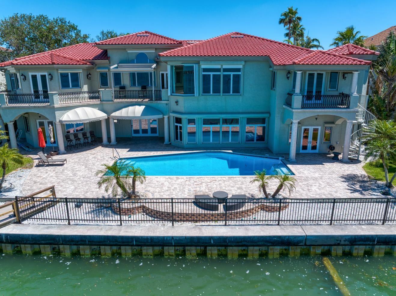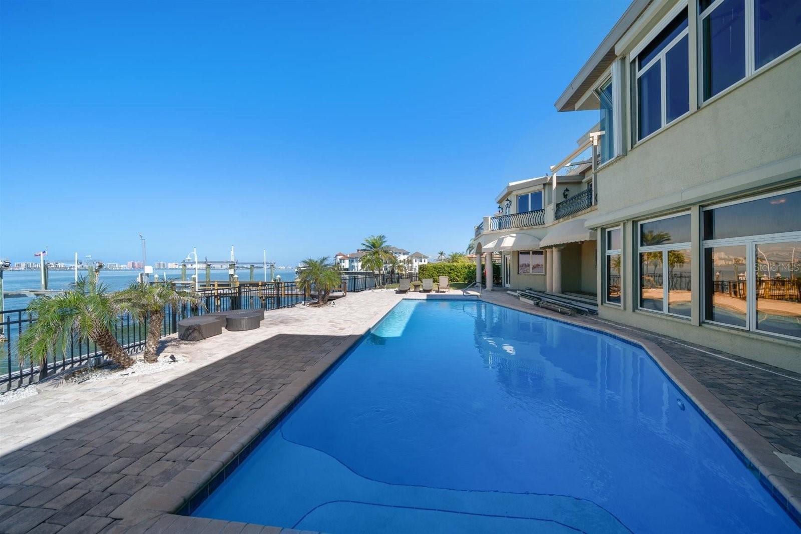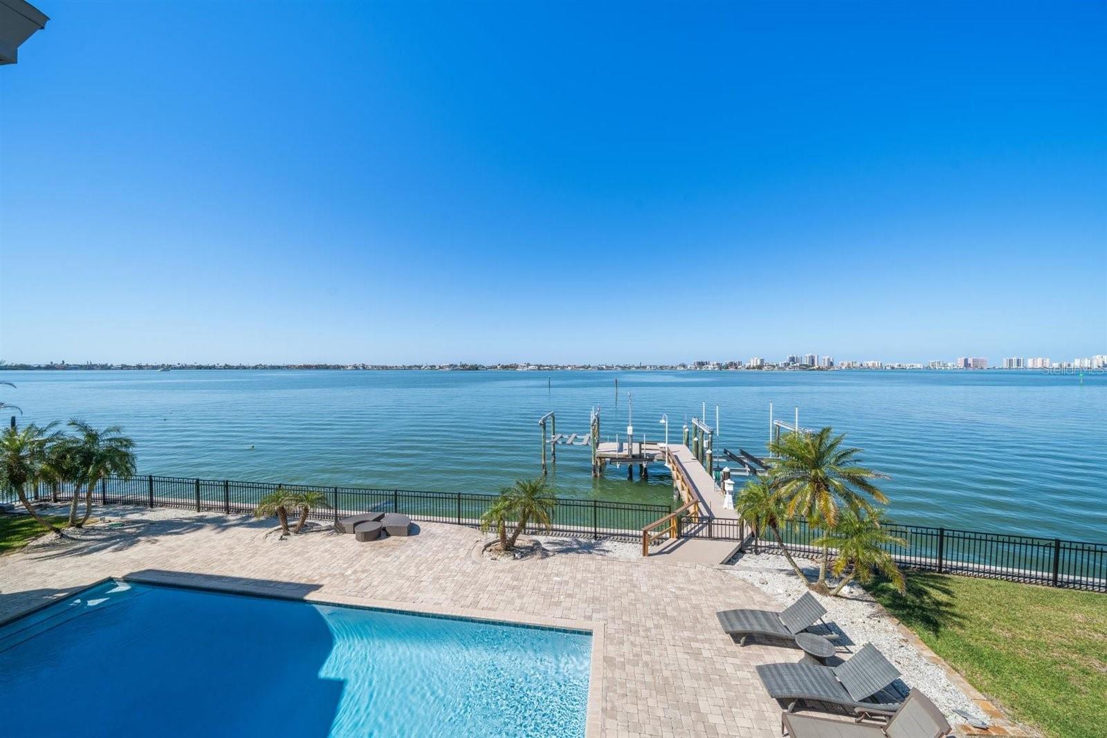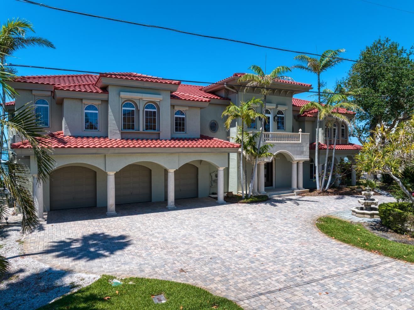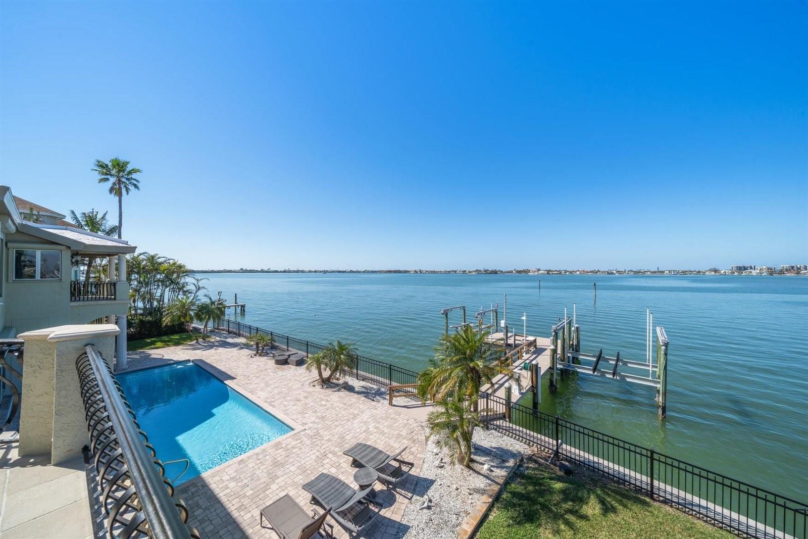 One or more photo(s) has been virtually staged. This Belleair Estate is an architectural masterpiece! With its stunning 140 feet of water frontage, it offers one of the best views in Pinellas County. Nestled on a oversized double lot, this rare to find waterfront home offers a unique blend of luxury and comfort, boasting breathtaking panoramic views of Sand Key, Belleair Beach, and the iconic Belleair Causeway. For the boating enthusiast, this property is nothing short of a dream come true. Imagine stepping onto your own composite dock equipped with a jet ski lift and both 25,000 lbs. and 9,000 lbs. boat lifts, complemented by a dedicated fish station—your gateway to endless adventures on Clearwater Beach and the Gulf. Spanning nearly 6,000 square feet, this residence features five generously sized bedrooms, six full bathrooms, an additional half bath, plus a study/office—perfect for accommodating family and guests alike. The first-floor game room opens to a large sparkling swimming pool that invites you to bask in the sun while enjoying the tranquil waters beyond. Ascend via the elevator to discover the expansive great room on the second floor where high ceilings and seamless window frames awe-inspiring intra-coastal vistas that will leave you breathless. The foyer welcomes you with a striking floating staircase adorned with exquisite light fixtures that enhance the home's traditional charm. Car & truck enthusiasts, an oversized 3-car garage plus additional space for recreational vehicles and/or supplies provides ample space for your storage needs. The brand-new tile roof (2025) complements its solid construction on pilings and grade beams with durable concrete flooring. With abundant storage options available throughout, clutter will never be an issue here. This property is truly one-of-a-kind—a rare opportunity not to be missed! Don’t let it slip away; schedule your private tour today and experience firsthand all that this magnificent waterfront paradise has to offer!