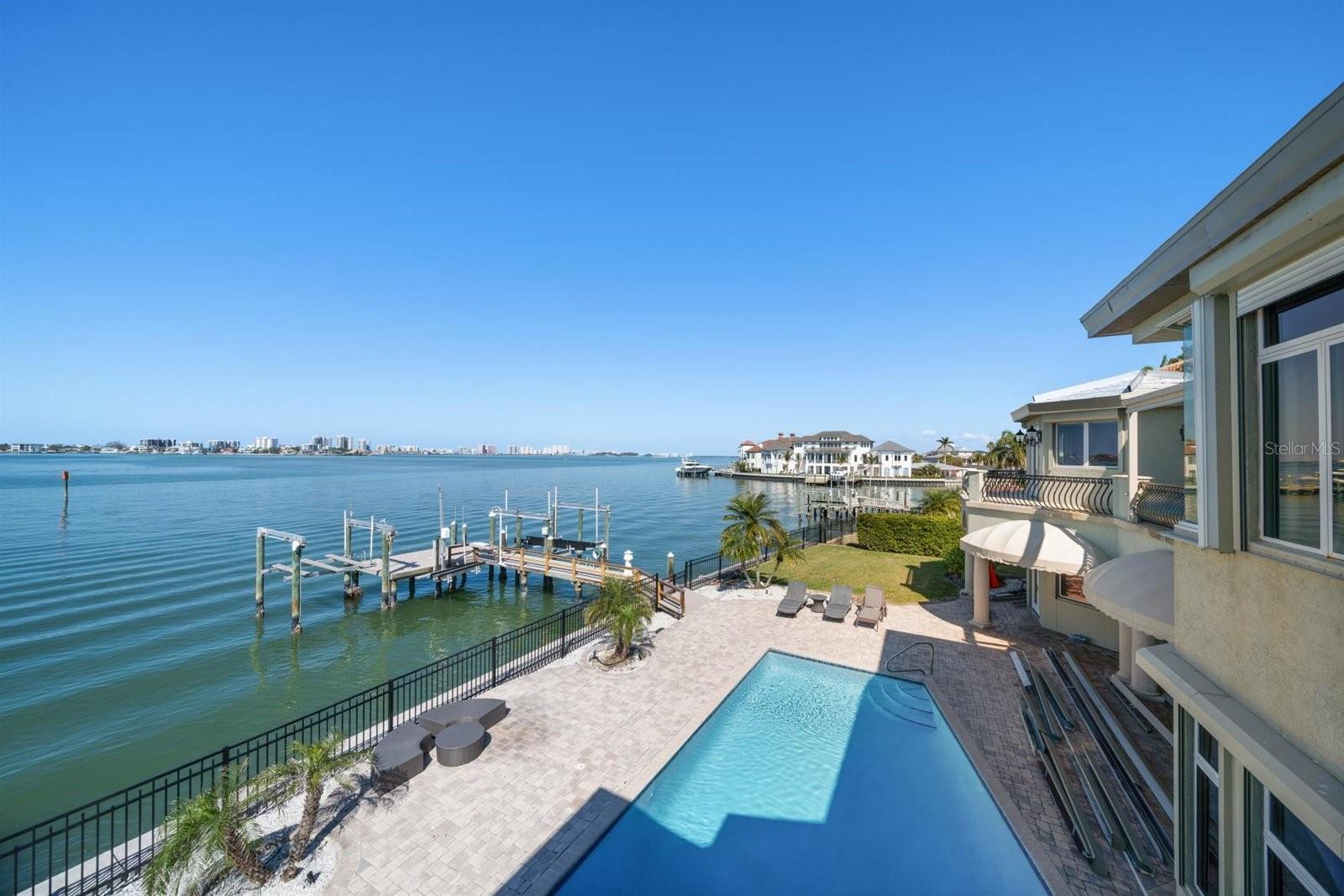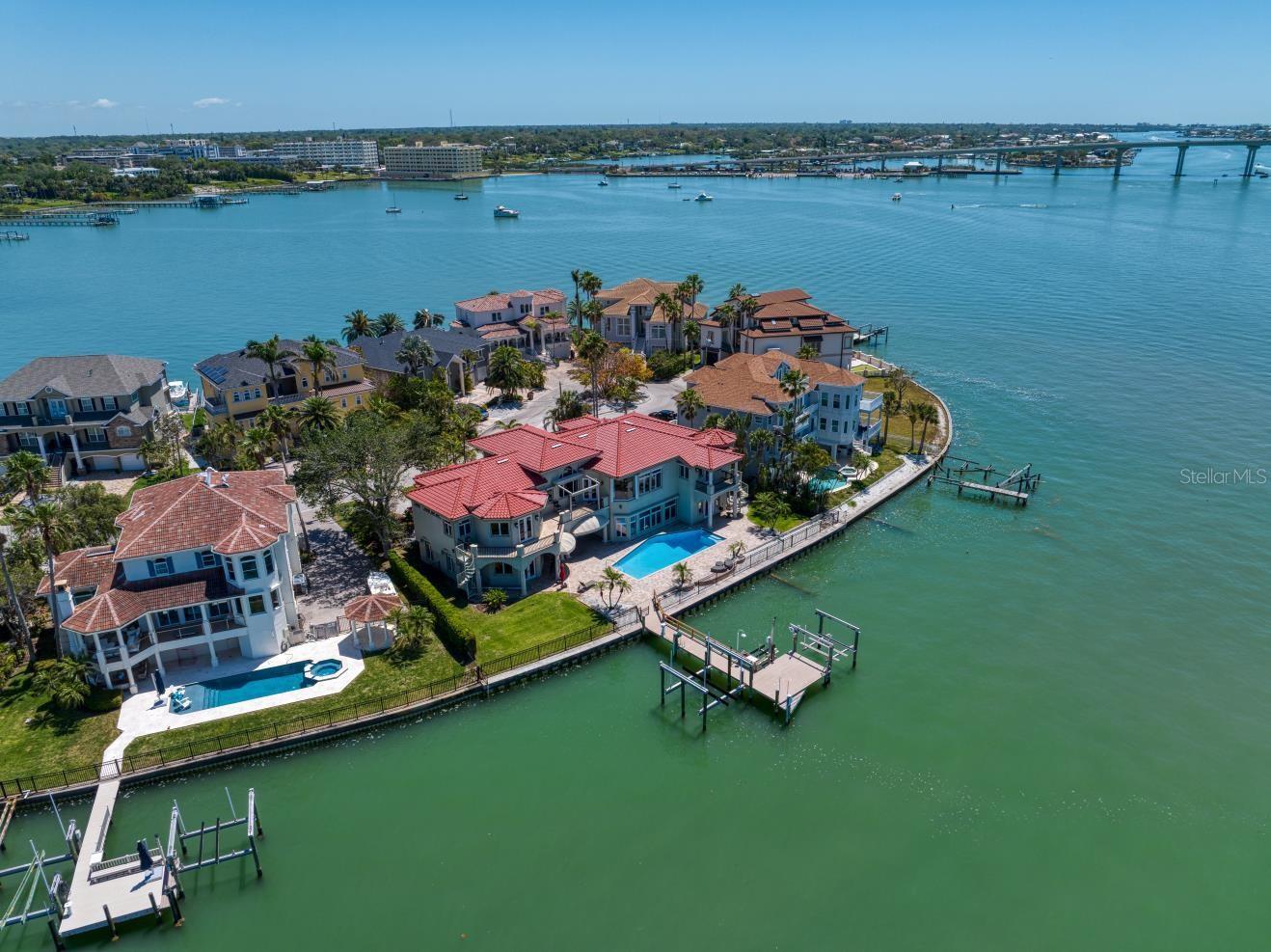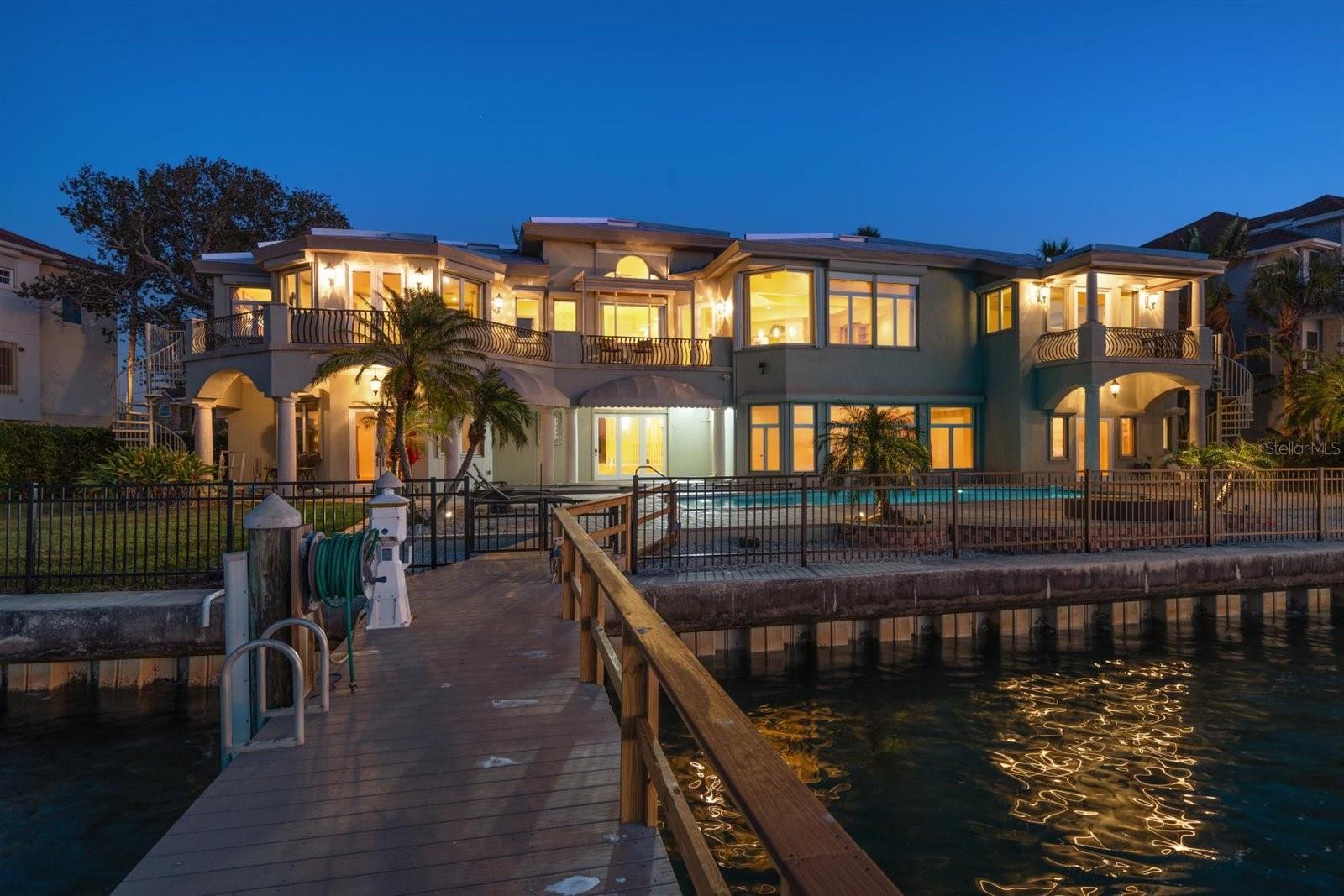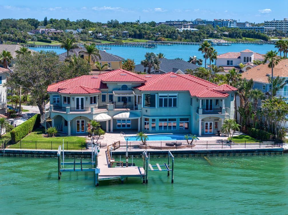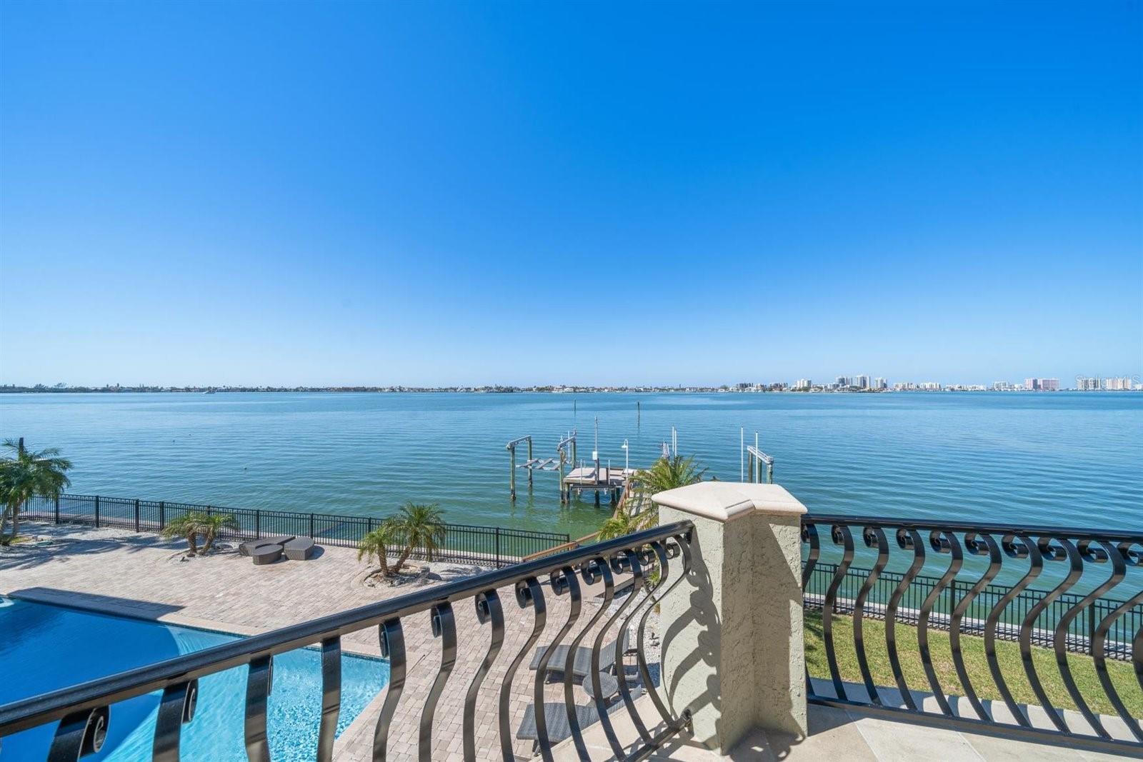 One or more photo(s) has been virtually staged. This Belleair Estate is an architectural masterpiece! With its stunning 140 feet of water frontage, it offers one of the best views in Pinellas County. Nestled on a oversized double lot, this rare to find waterfront home offers a unique blend of luxury and comfort, boasting breathtaking panoramic views of Sand Key, Belleair Beach, and the iconic Belleair Causeway. For the boating enthusiast, this property is nothing short of a dream come true. Imagine stepping onto your own composite dock equipped with a jet ski lift and both 25,000 lbs. and 9,000 lbs. boat lifts, complemented by a dedicated fish station—your gateway to endless adventures on Clearwater Beach and the Gulf. Spanning nearly 6,000 square feet, this residence features five generously sized bedrooms, six full bathrooms, an additional half bath, plus a study/office—perfect for accommodating family and guests alike. The first-floor game room opens to a large sparkling swimming pool that invites you to bask in the sun while enjoying the tranquil waters beyond. Ascend via the elevator to discover the expansive great room on the second floor where high ceilings and seamless window frames awe-inspiring intra-coastal vistas that will leave you breathless. The foyer welcomes you with a striking floating staircase adorned with exquisite light fixtures that enhance the home's traditional charm. Car & truck enthusiasts, an oversized 3-car garage plus additional space for recreational vehicles and/or supplies provides ample space for your storage needs. The brand-new tile roof (2025) complements its solid construction on pilings and grade beams with durable concrete flooring. With abundant storage options available throughout, clutter will never be an issue here. This property is truly one-of-a-kind—a rare opportunity not to be missed! Don’t let it slip away; schedule your private tour today and experience firsthand all that this magnificent waterfront paradise has to offer!