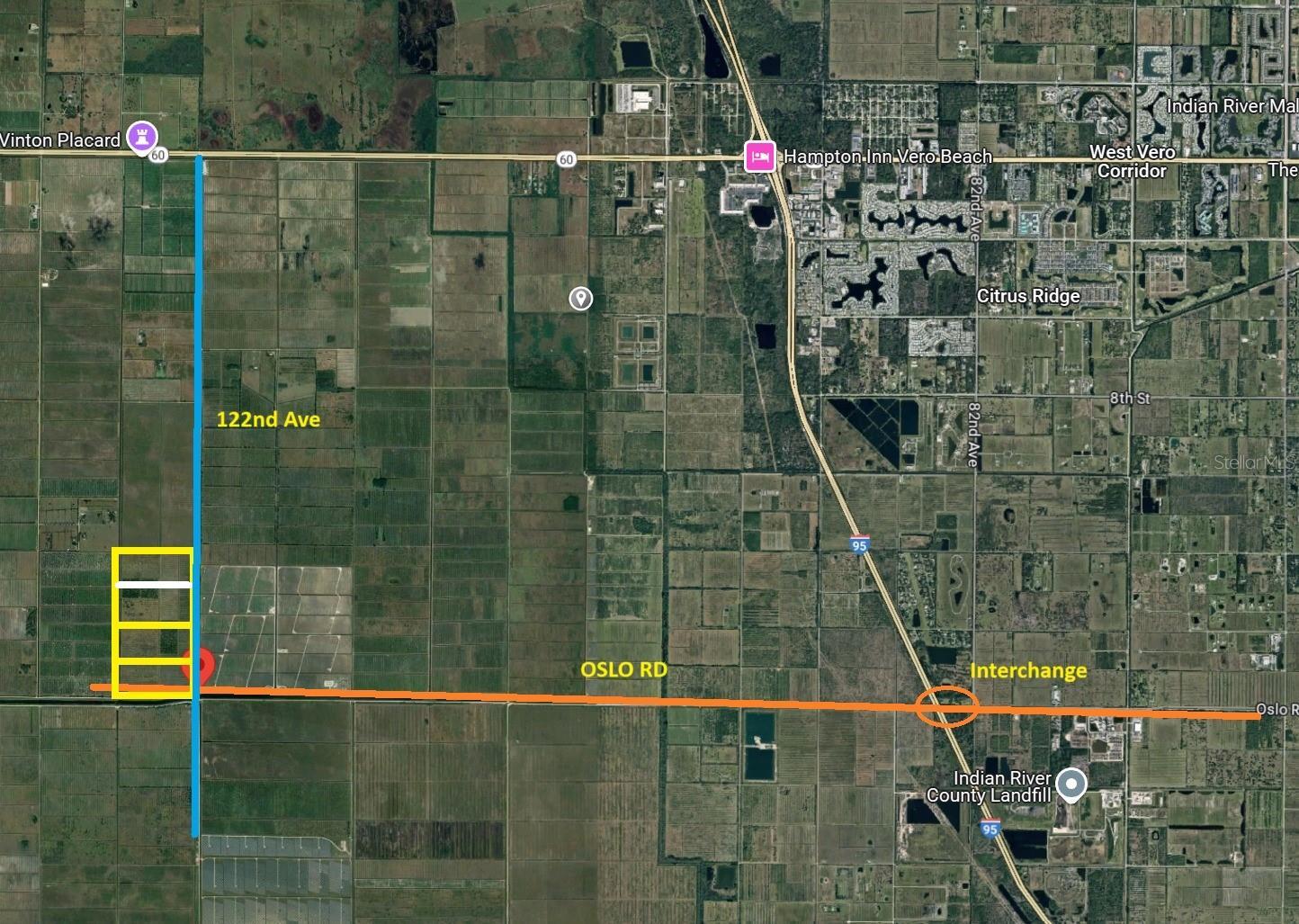 In search of the ideal land for ranch house development or a long-term farmland investment? Look no further! 4 parcels of about 75 acres each are available. This property offers a multitude of potential uses. Excitingly, the Oslo Rd Interchange on I-95 is set to start shaping up in 2026, making this a prime development opportunity. The property is situated in an Opportunity Zone, perfect for capitalizing on tax benefits. Previously used for citrus farming, the land is equipped with irrigation from and drainage into the St. Johns Water Management System. With ample water supply, this land is ideal for various agricultural endeavors, including vegetables or row crops. Google Map https://www.google.com/maps/place/9th+St+SW+26+122nd+Ave+SW,+Florida+32966/@27.5893187,-80.5782461,679m/data=!3m2!1e3!4b1!4m6!3m5!1s0x88de89cf769f0bcd:0x