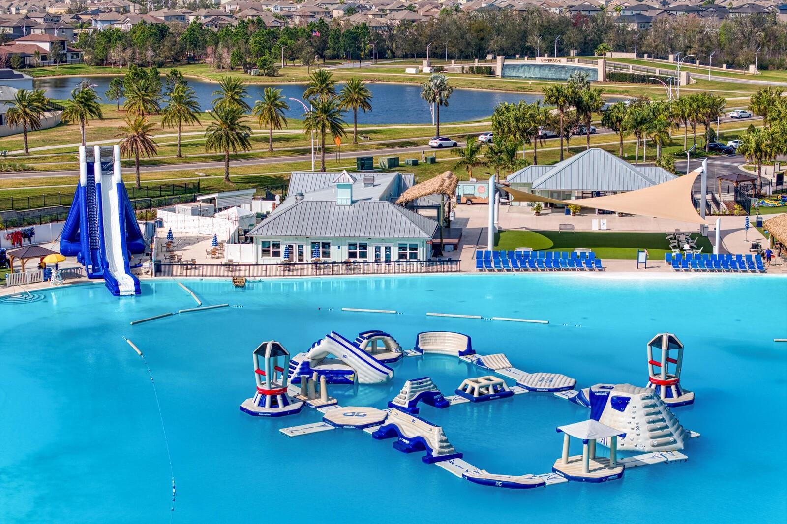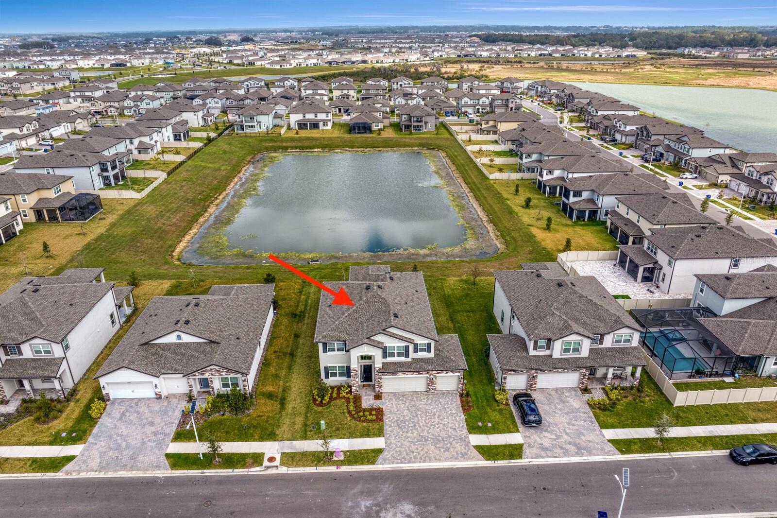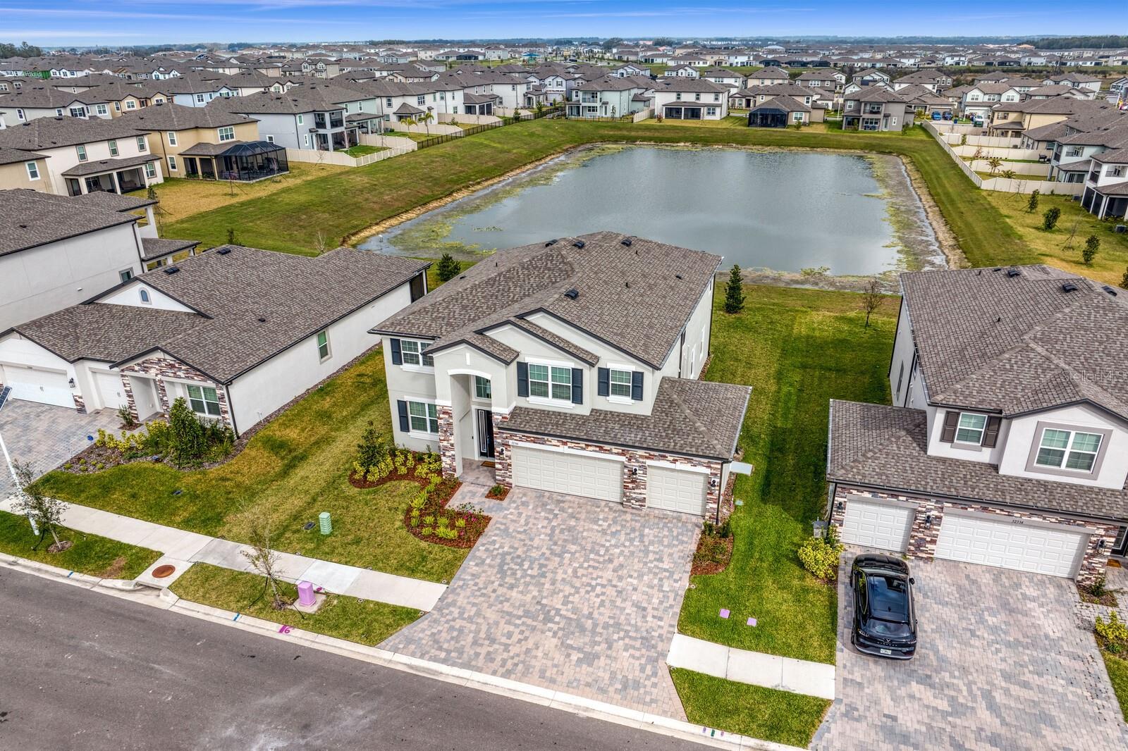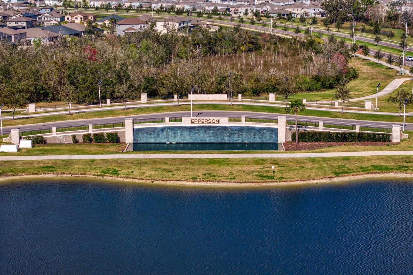 Under contract-accepting backup offers. One or more photo(s) has been virtually staged. +++++++This brand-new, never-lived-in home, purchased in 2024, is a true masterpiece featuring over $140K in premium upgrades. Boasting 3,761 sq. ft., this stunning 5-bedroom, 5-bathroom residence is perfectly positioned on a picturesque waterfront homesite in the sought-after Epperson Ranch community. Thoughtfully designed for modern living, this 2024-built home showcases luxury and innovation, including wood plank tile flooring, a 50-amp car charger, a striking 48” electric fireplace, extra LED can lighting, tray ceilings, and a spacious 15x18 balcony. A Smart Home thermostat adds convenience and efficiency. The open floor plan includes two master suites (one upstairs, one downstairs), five full bathrooms, a private den/office, a large family room, and a massive bonus/media room with a pool bath that leads to the oversized screened lanai. The gourmet kitchen is a showstopper with sleek quartz countertops, stainless steel appliances, a large island with drop pendant lighting, double ovens, and a spacious butler’s pantry with custom shelving. A flexible space near the kitchen can serve as a formal dining room or additional office. Upstairs, you’ll find four generously sized bedrooms, a loft, and a versatile bonus room, perfect for movie or game nights. Step outside to your private backyard retreat featuring an extended screened lanai with breathtaking waterfront views, creating an ideal setting for relaxation and entertaining. Additional features include a three-car garage with epoxy-coated flooring, two automatic garage door openers, a 50-amp circuit for electric vehicle charging, pre-plumbing for a water softener, and reclaimed water for irrigation. Located in the highly desirable Epperson Ranch, residents enjoy access to the Crystal Lagoon, a 7-acre tropical paradise featuring swimming, kayaking, paddleboarding, a floating obstacle course, water slides, a rock-climbing wall, and a sandy beach. The community also offers a swim-up bar and Lagoon Café for refreshments. Conveniently located near top-rated schools, shopping, dining, and major highways, this exceptional property offers the ultimate Florida lifestyle. Don’t miss this incredible opportunity—schedule your showing today!