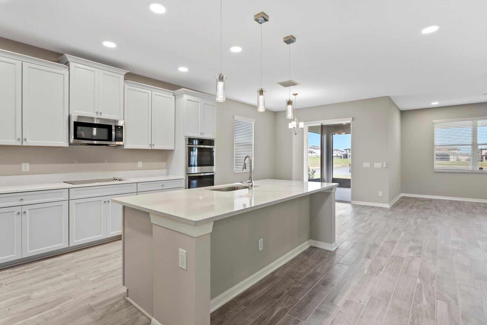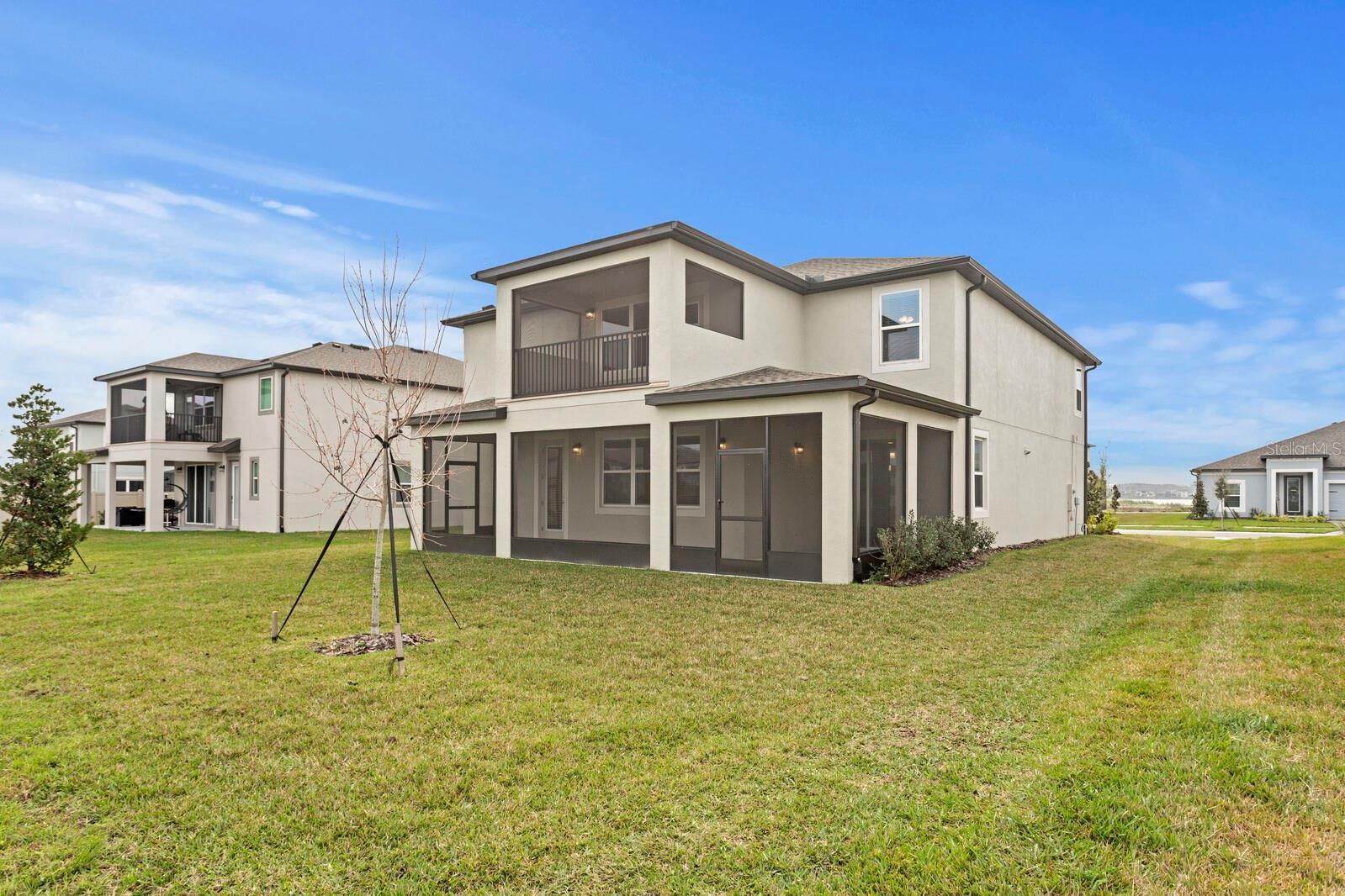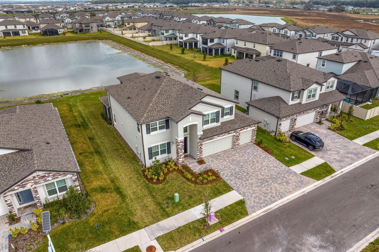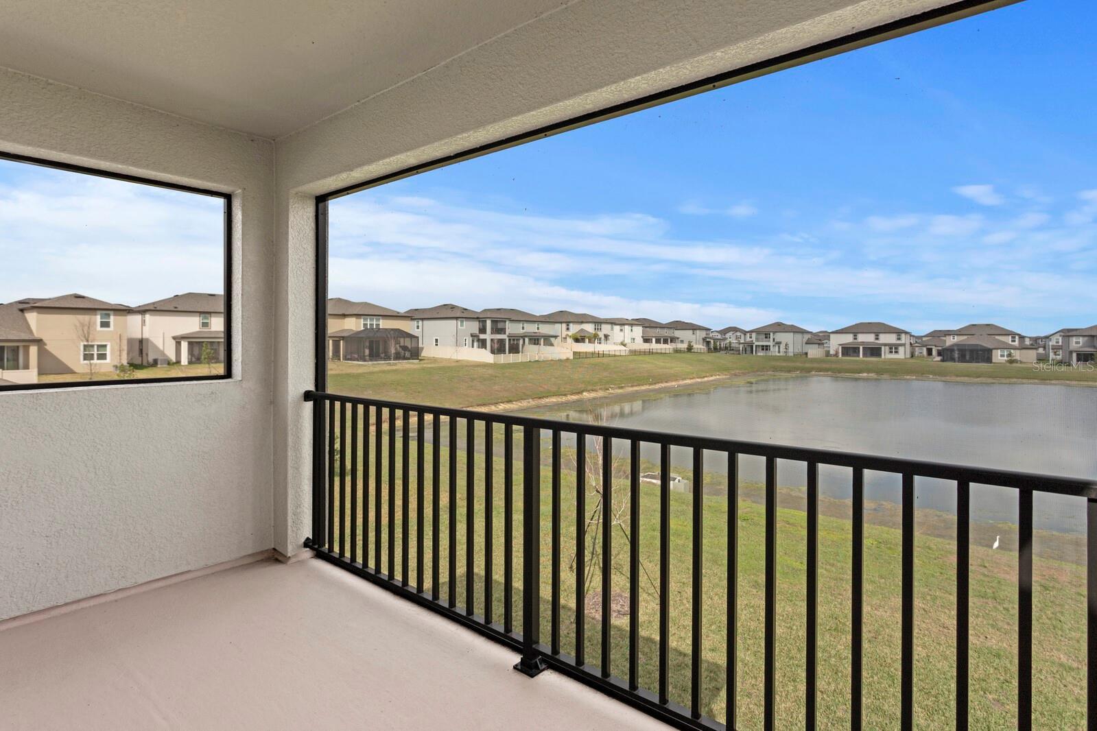 Under contract-accepting backup offers. One or more photo(s) has been virtually staged. +++++++This brand-new, never-lived-in home, purchased in 2024, is a true masterpiece featuring over $140K in premium upgrades. Boasting 3,761 sq. ft., this stunning 5-bedroom, 5-bathroom residence is perfectly positioned on a picturesque waterfront homesite in the sought-after Epperson Ranch community. Thoughtfully designed for modern living, this 2024-built home showcases luxury and innovation, including wood plank tile flooring, a 50-amp car charger, a striking 48” electric fireplace, extra LED can lighting, tray ceilings, and a spacious 15x18 balcony. A Smart Home thermostat adds convenience and efficiency. The open floor plan includes two master suites (one upstairs, one downstairs), five full bathrooms, a private den/office, a large family room, and a massive bonus/media room with a pool bath that leads to the oversized screened lanai. The gourmet kitchen is a showstopper with sleek quartz countertops, stainless steel appliances, a large island with drop pendant lighting, double ovens, and a spacious butler’s pantry with custom shelving. A flexible space near the kitchen can serve as a formal dining room or additional office. Upstairs, you’ll find four generously sized bedrooms, a loft, and a versatile bonus room, perfect for movie or game nights. Step outside to your private backyard retreat featuring an extended screened lanai with breathtaking waterfront views, creating an ideal setting for relaxation and entertaining. Additional features include a three-car garage with epoxy-coated flooring, two automatic garage door openers, a 50-amp circuit for electric vehicle charging, pre-plumbing for a water softener, and reclaimed water for irrigation. Located in the highly desirable Epperson Ranch, residents enjoy access to the Crystal Lagoon, a 7-acre tropical paradise featuring swimming, kayaking, paddleboarding, a floating obstacle course, water slides, a rock-climbing wall, and a sandy beach. The community also offers a swim-up bar and Lagoon Café for refreshments. Conveniently located near top-rated schools, shopping, dining, and major highways, this exceptional property offers the ultimate Florida lifestyle. Don’t miss this incredible opportunity—schedule your showing today!