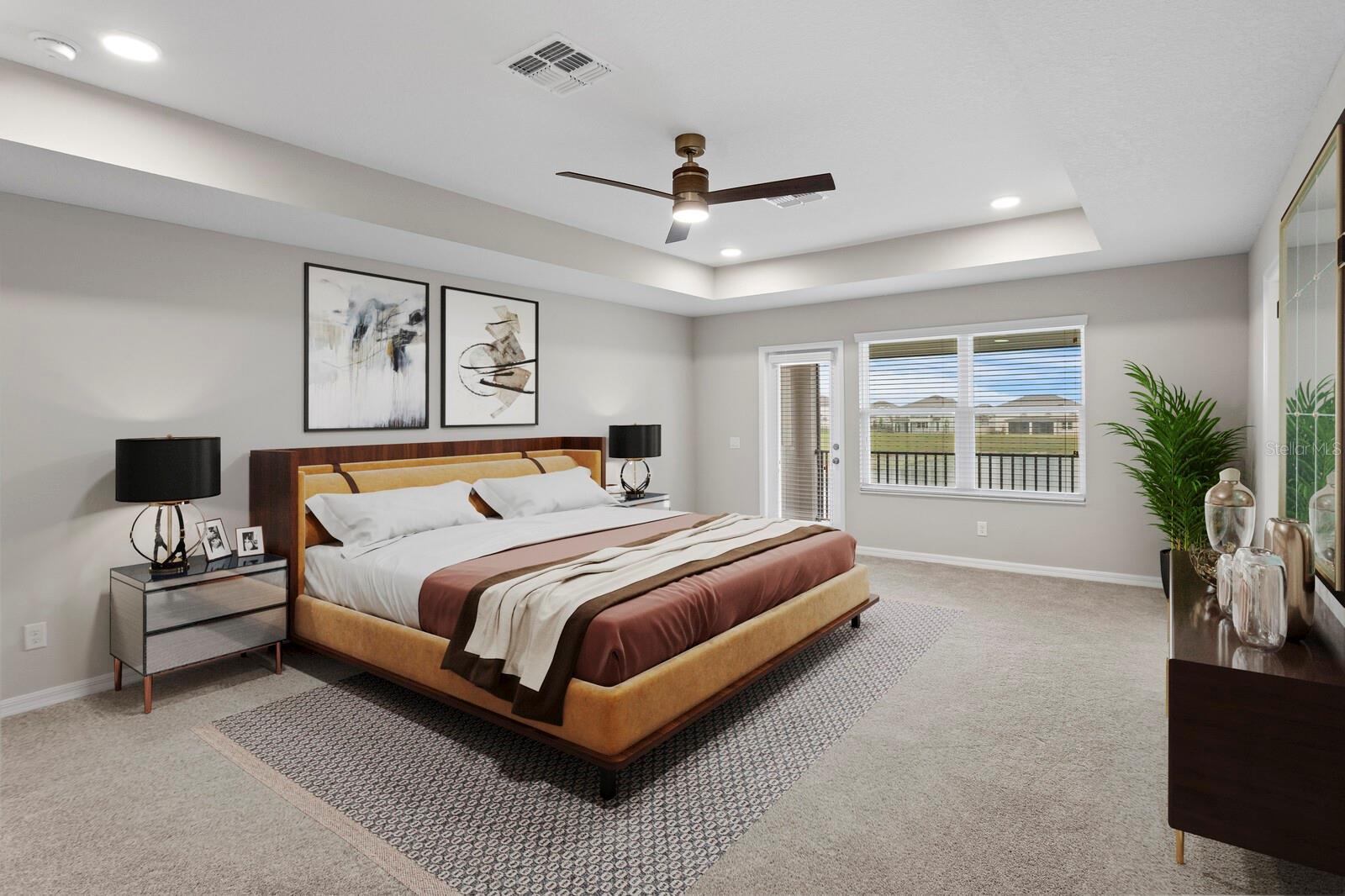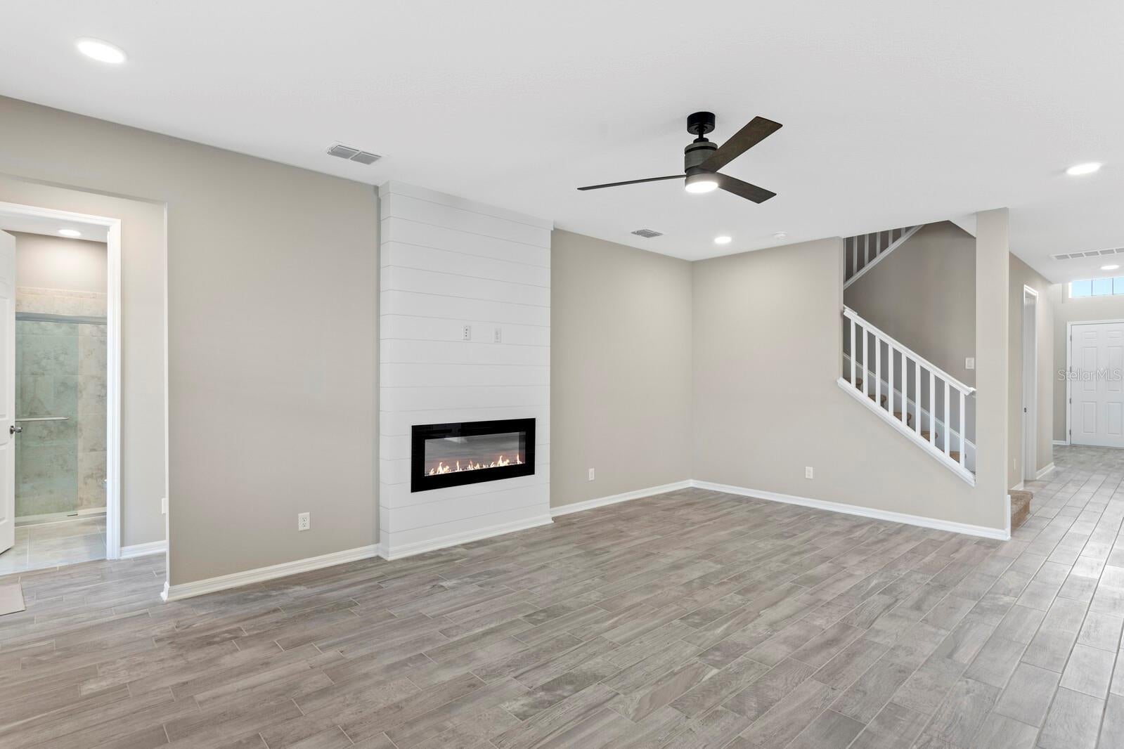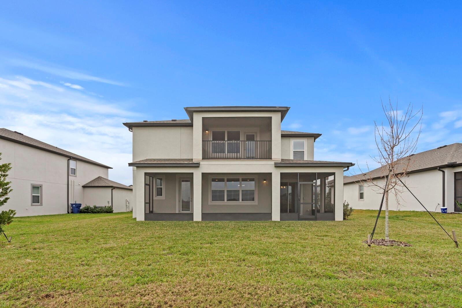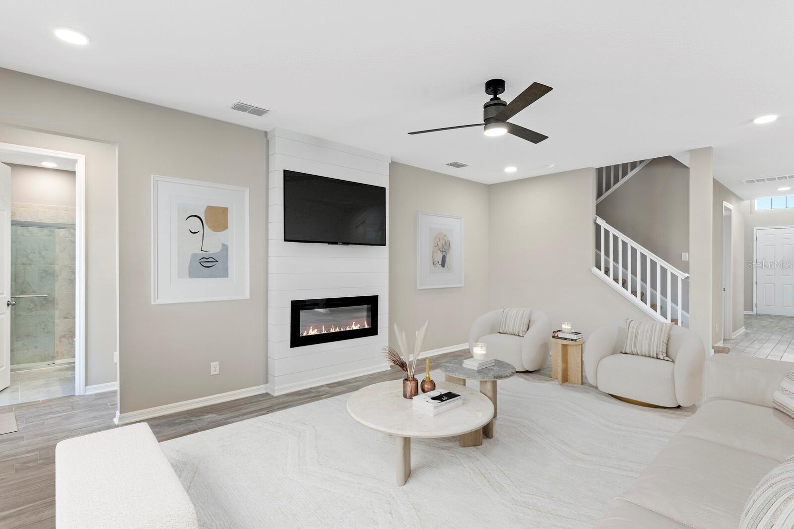 Under contract-accepting backup offers. One or more photo(s) has been virtually staged. +++++++This brand-new, never-lived-in home, purchased in 2024, is a true masterpiece featuring over $140K in premium upgrades. Boasting 3,761 sq. ft., this stunning 5-bedroom, 5-bathroom residence is perfectly positioned on a picturesque waterfront homesite in the sought-after Epperson Ranch community. Thoughtfully designed for modern living, this 2024-built home showcases luxury and innovation, including wood plank tile flooring, a 50-amp car charger, a striking 48” electric fireplace, extra LED can lighting, tray ceilings, and a spacious 15x18 balcony. A Smart Home thermostat adds convenience and efficiency. The open floor plan includes two master suites (one upstairs, one downstairs), five full bathrooms, a private den/office, a large family room, and a massive bonus/media room with a pool bath that leads to the oversized screened lanai. The gourmet kitchen is a showstopper with sleek quartz countertops, stainless steel appliances, a large island with drop pendant lighting, double ovens, and a spacious butler’s pantry with custom shelving. A flexible space near the kitchen can serve as a formal dining room or additional office. Upstairs, you’ll find four generously sized bedrooms, a loft, and a versatile bonus room, perfect for movie or game nights. Step outside to your private backyard retreat featuring an extended screened lanai with breathtaking waterfront views, creating an ideal setting for relaxation and entertaining. Additional features include a three-car garage with epoxy-coated flooring, two automatic garage door openers, a 50-amp circuit for electric vehicle charging, pre-plumbing for a water softener, and reclaimed water for irrigation. Located in the highly desirable Epperson Ranch, residents enjoy access to the Crystal Lagoon, a 7-acre tropical paradise featuring swimming, kayaking, paddleboarding, a floating obstacle course, water slides, a rock-climbing wall, and a sandy beach. The community also offers a swim-up bar and Lagoon Café for refreshments. Conveniently located near top-rated schools, shopping, dining, and major highways, this exceptional property offers the ultimate Florida lifestyle. Don’t miss this incredible opportunity—schedule your showing today!