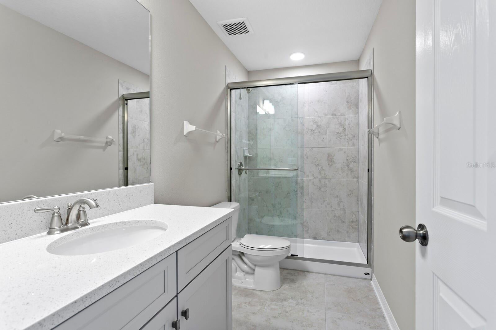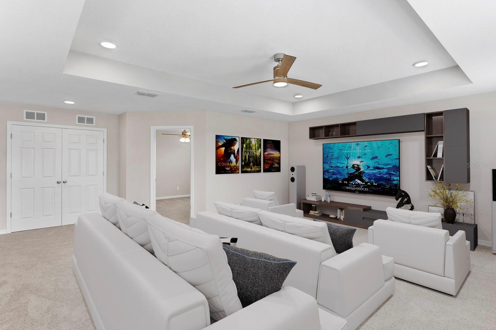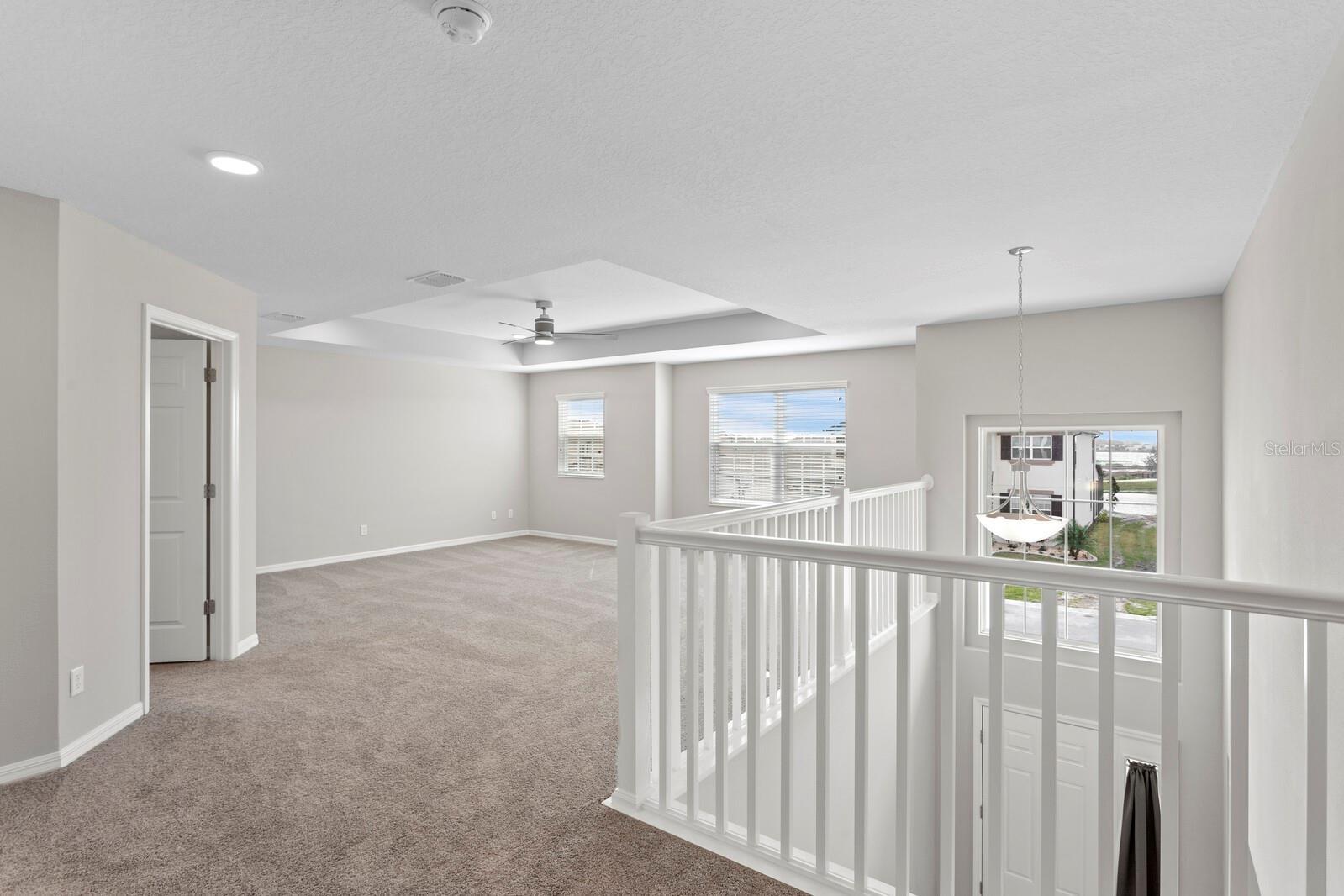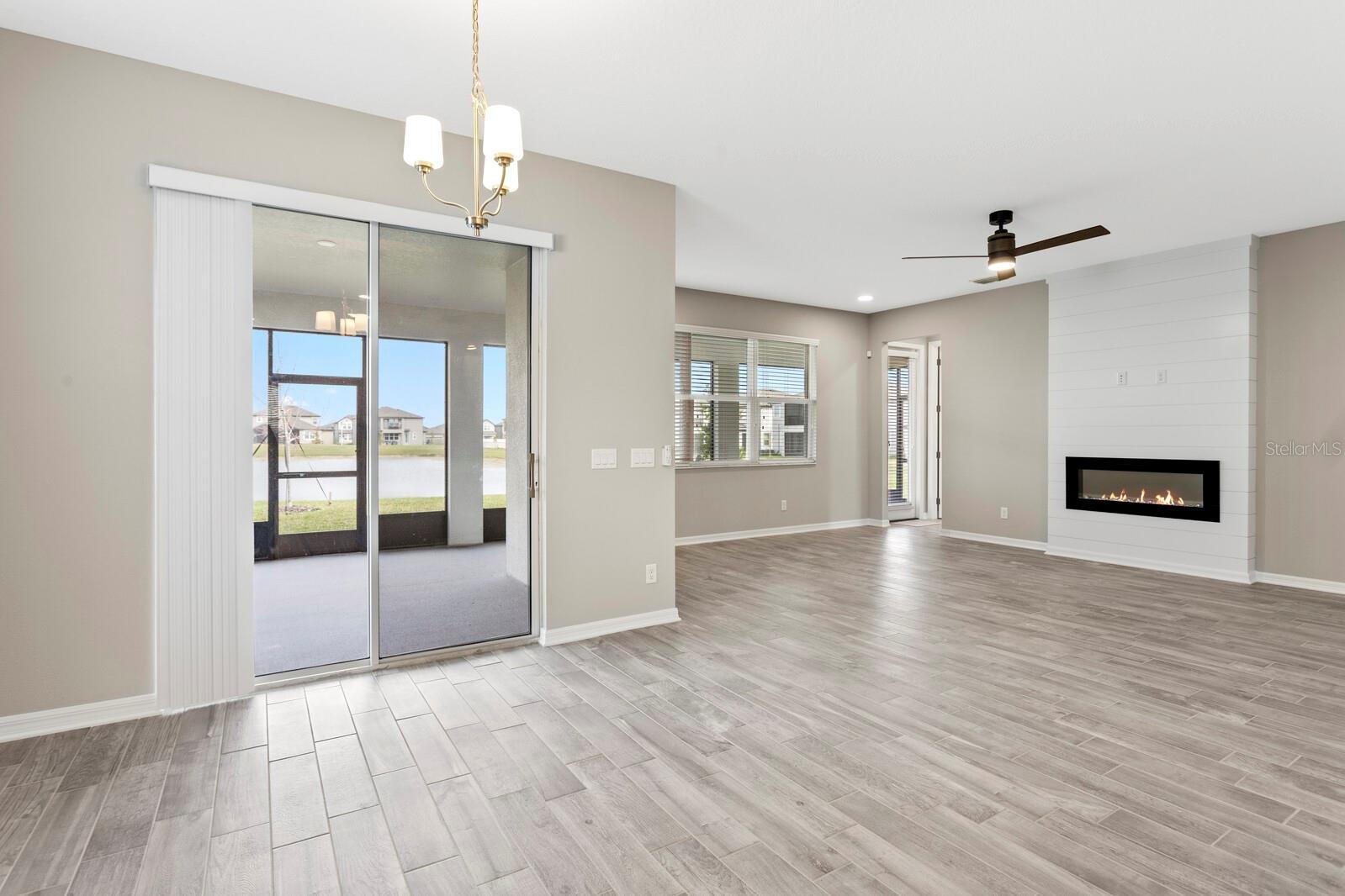 Under contract-accepting backup offers. One or more photo(s) has been virtually staged. +++++++This brand-new, never-lived-in home, purchased in 2024, is a true masterpiece featuring over $140K in premium upgrades. Boasting 3,761 sq. ft., this stunning 5-bedroom, 5-bathroom residence is perfectly positioned on a picturesque waterfront homesite in the sought-after Epperson Ranch community. Thoughtfully designed for modern living, this 2024-built home showcases luxury and innovation, including wood plank tile flooring, a 50-amp car charger, a striking 48” electric fireplace, extra LED can lighting, tray ceilings, and a spacious 15x18 balcony. A Smart Home thermostat adds convenience and efficiency. The open floor plan includes two master suites (one upstairs, one downstairs), five full bathrooms, a private den/office, a large family room, and a massive bonus/media room with a pool bath that leads to the oversized screened lanai. The gourmet kitchen is a showstopper with sleek quartz countertops, stainless steel appliances, a large island with drop pendant lighting, double ovens, and a spacious butler’s pantry with custom shelving. A flexible space near the kitchen can serve as a formal dining room or additional office. Upstairs, you’ll find four generously sized bedrooms, a loft, and a versatile bonus room, perfect for movie or game nights. Step outside to your private backyard retreat featuring an extended screened lanai with breathtaking waterfront views, creating an ideal setting for relaxation and entertaining. Additional features include a three-car garage with epoxy-coated flooring, two automatic garage door openers, a 50-amp circuit for electric vehicle charging, pre-plumbing for a water softener, and reclaimed water for irrigation. Located in the highly desirable Epperson Ranch, residents enjoy access to the Crystal Lagoon, a 7-acre tropical paradise featuring swimming, kayaking, paddleboarding, a floating obstacle course, water slides, a rock-climbing wall, and a sandy beach. The community also offers a swim-up bar and Lagoon Café for refreshments. Conveniently located near top-rated schools, shopping, dining, and major highways, this exceptional property offers the ultimate Florida lifestyle. Don’t miss this incredible opportunity—schedule your showing today!