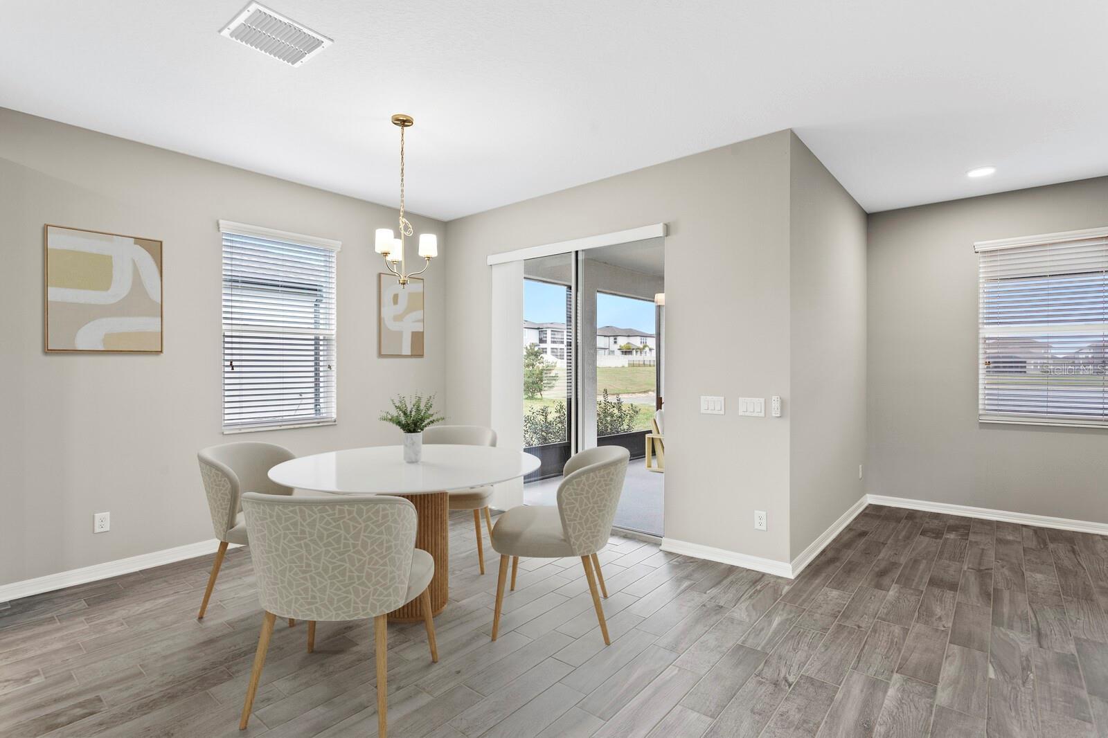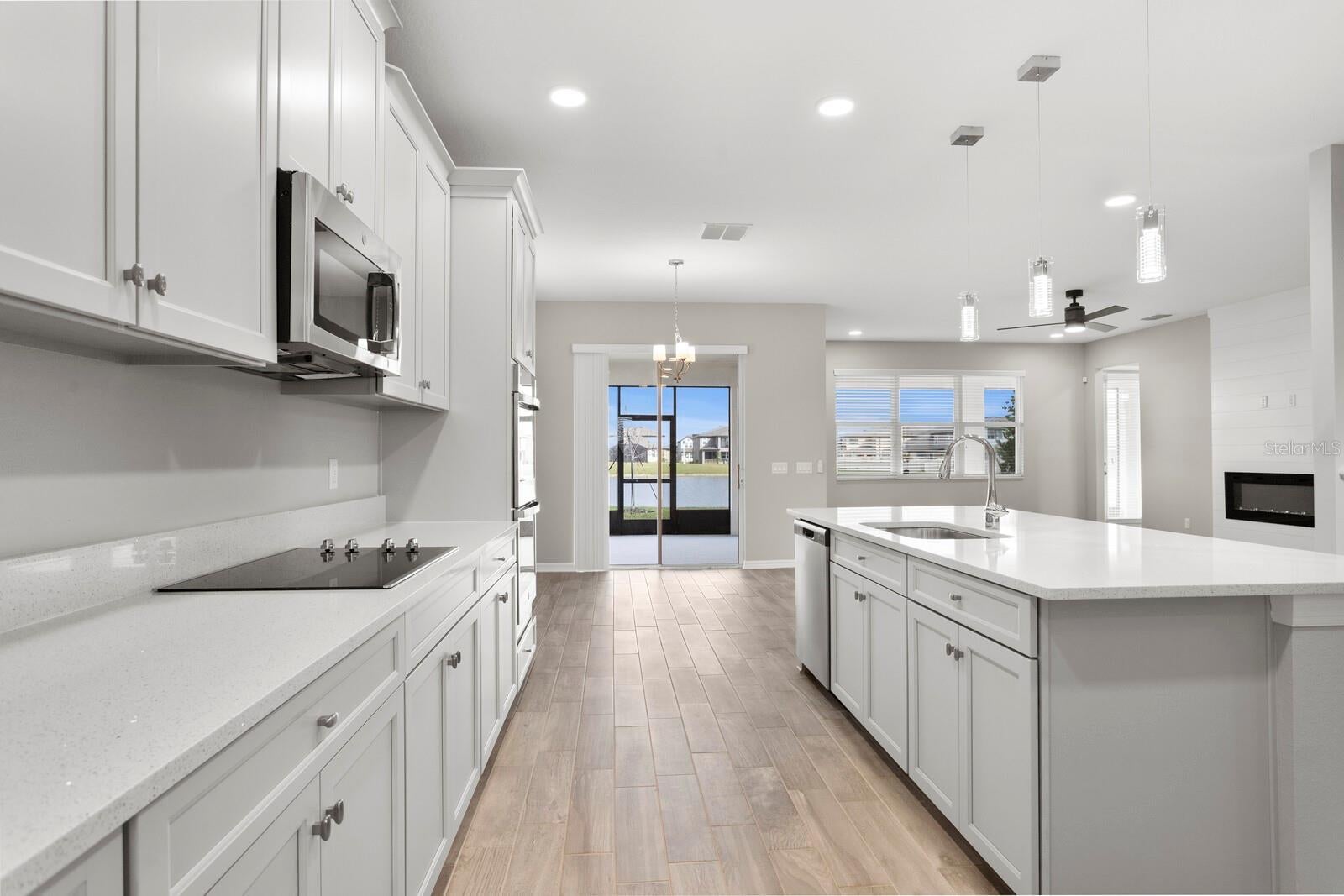 - Attic Ventilator, Ceiling Fans(s), Eat-in Kitchen, High Ceilings, In Wall Pest System, Kitchen/Family Room Combo, Thermostat, Walk-In Closet(s)