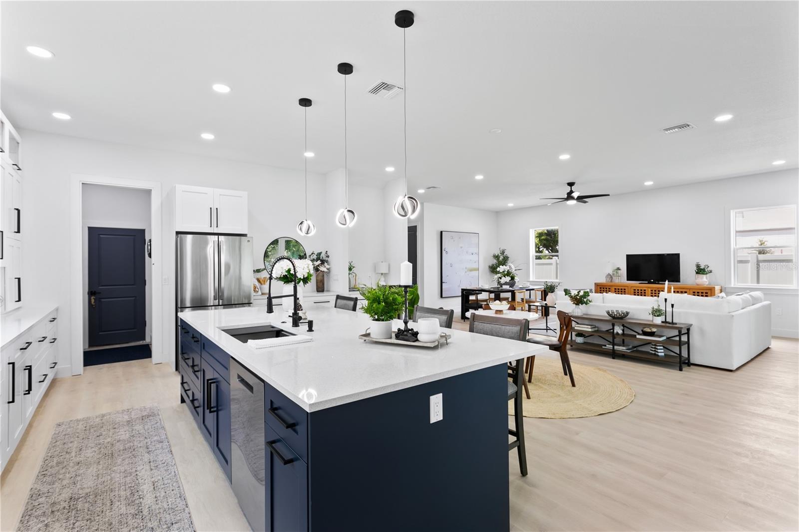 - Kitchen/Family Room Combo, Living Room/Dining Room Combo, Open Floorplan, PrimaryBedroom Upstairs, Solid Wood Cabinets