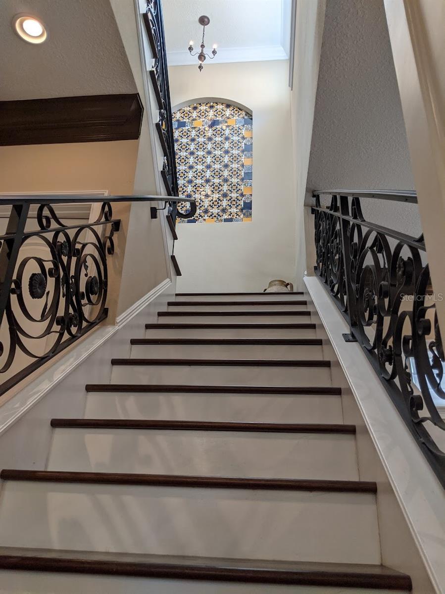 Under contract-accepting backup offers. Discover Safety Harbor living in this Spanish-Mediterranean home. Nestled in vibrant waterfront Safety Harbor on Tampa Bay, this residence offers comfort, style, and convenience. Imagine strolling the marina, enjoying local shops and restaurants, or exploring parks and beaches. Just a short drive from Clearwater Beaches and St. Pete Pier, all Tampa Bay amenities are at your fingertips. Built to last, this two-story home boasts concrete block construction, impact windows, and a stucco finish. Enjoy peace of mind – this property has remained high and dry for a decade, safely outside the flood zone. Exquisite Spanish architectural details set this home apart, from intricate wrought iron accents and the entry doors to the classic Spanish tile roof. A beautiful front facade welcomes you, while rear access leads to a two-car garage and delightful patio—perfect for relaxing. Step inside to be enchanted. The inviting foyer leads to the expansive great room. A gas fireplace takes center stage, creating a focal point. The elegant wrought iron staircase enhances the craftsmanship. A discreet half-bath is readily accessible. To the left, a formal dining room awaits, perfect for hosting memorable meals. This elegant space flows seamlessly into the open-concept kitchen—a chef's delight with rich wood cabinetry, ample counter space, and a central island. Customize the space with your culinary tools. A breakfast nook offers casual dining and access to a private lanai—ideal for morning coffee. Step out to a small garden and enjoy convenient driveway access. The two-car garage is also easily accessible. Between the staircase and kitchen, a cleverly designed bar area serves the living and dining rooms, as well as the adjacent Den. This versatile Den, complete with a glass-doored walk-in closet, is currently a library, a testament to its adaptability. Throughout this exceptional home, find a harmonious blend of natural wood floors, elegant ceramic tile, and tasteful architectural details. From crown moldings to rich wood finishes and built-ins, every element exudes the timeless elegance of Spanish-Mediterranean style. Upstairs, a refreshing mosaic landing