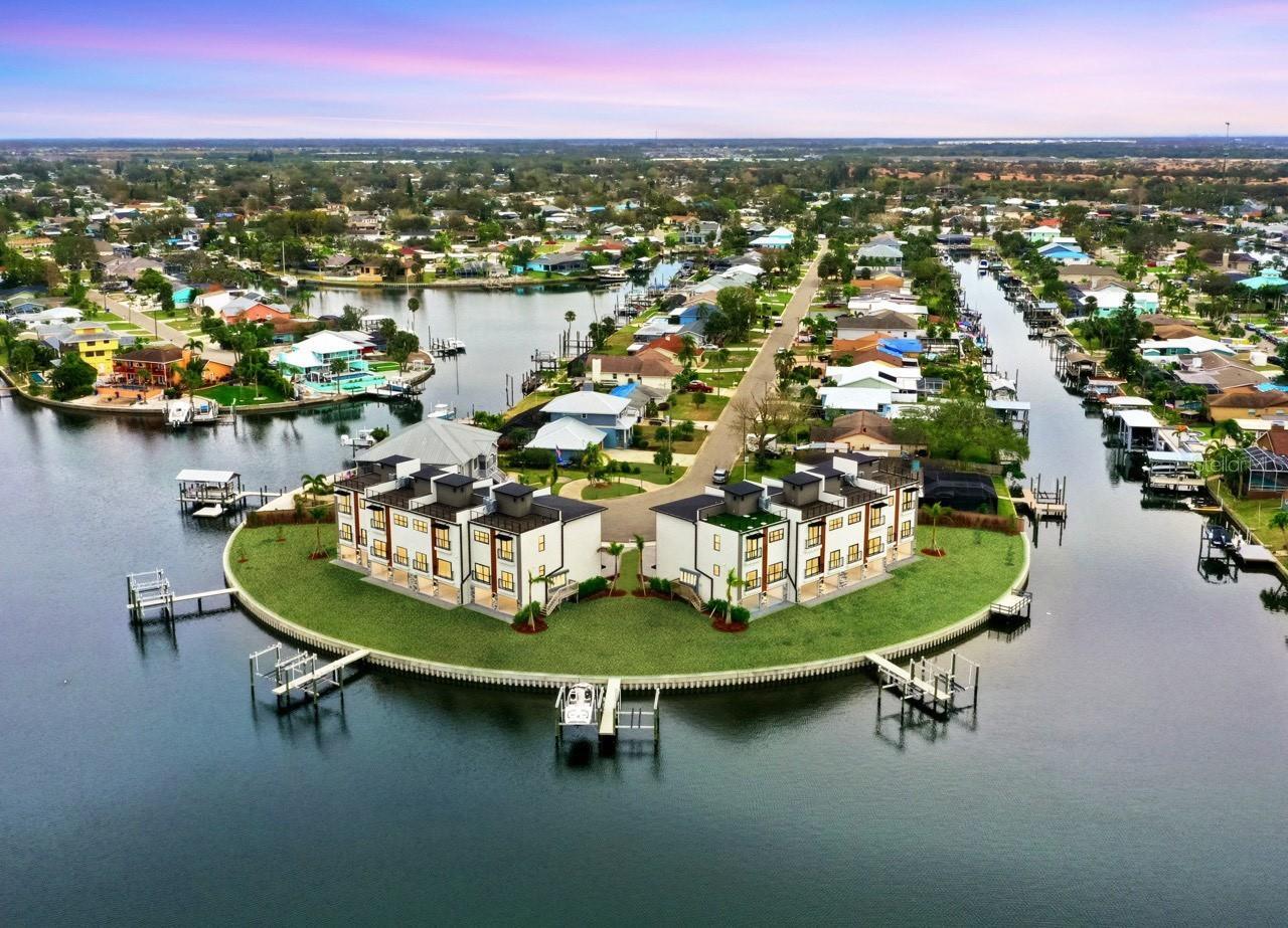 $20,000 FLEX CASH through the end of December! This can be applied towards a private POOL, outdoor kitchen, custom upgrades inside or out! The choice is yours! These townhomes each include a Private Elevator, Rooftop Terrace, Dock with a 10,000lb Boat Lift. Direct and easy access to Tampa Bay! Concrete Block top to bottom. Impact windows and doors, plus designer-curated interior finishes. Designed with flexibility in mind, these townhomes have low rental restrictions. Details meticulously crafted for both function and luxury. The private 2-car garage comes equipped with an EV charging station, extra storage space, and a sleek exterior garage door. Just steps from your car you will be greeted by an expansive covered rear lanai that's pre-plumbed for an outdoor kitchen! An elevator inside your own home effortlessly transports you between floors, adding both grocery/luggage convenience, privacy, and sophistication. The open-concept kitchen is a chef's delight, featuring LG stainless steel appliances, Caesarstone quartz countertops, and a stunning waterfall island with the built-in SHARP drawer microwave. Adjacent to the kitchen, a flex space area provides ample room for gatherings and entertainment. The main living area includes a separate 4th bedroom or den/office along with a guest powder room. Upstairs from the main living space, the primary suite is a true retreat, offering a walk-in closet with custom shelving and an opulent ensuite bathroom with floor-to-ceiling marble, a walk-in shower, and a standalone soaking tub. LED-backlit mirrors adorn every bathroom. Custom walk-in closets. Two additional guest bedrooms also feature walk-in closets, plank tile flooring, and trim work as seen through the main living areas, tall solid core doors, expansive ceiling heights and large windows for plenty of natural light making the space feel elegant and inviting. Crowning this waterfront masterpiece is a private rooftop terrace! Panoramic views of Tampa Bay set the stage for unforgettable sunsets, summer storms, and fireworks. Whether enjoying a quiet evening under the stars or hosting a lively gathering, this rooftop oasis is the pinnacle of luxury living. Tropical landscaping plus lawn maintenance, irrigation, and a fishing pier are included in the low monthly HOA. No CDD fees. NO bridge restrictions! Builder warranty included! Financing Incentive available through preferred lender. Come join us for a Boat Tour and walk the fully decorated model!
