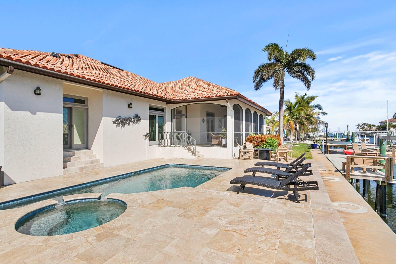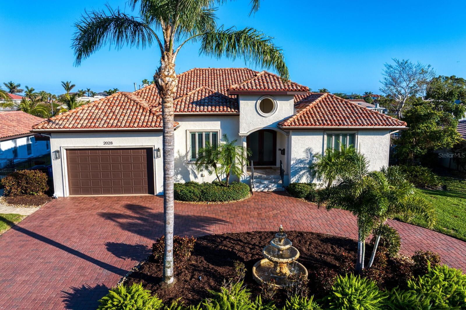 Nestled in the prestigious Venetian Isles, this Modern Mediterranean home offers 90 feet of deep-water frontage with direct access to Tampa Bay, delivering the best in single-level living. Custom-built in 2007 and ideally positioned on the east side of the street, this home boasts a thoughtfully designed layout, where three of the four bedrooms feature en-suite baths. The open-concept design is perfect for both everyday living and entertaining, featuring a formal dining area, an eat-in kitchen, and a spacious island with ample seating. A Wolf gas range and a stylish coffee bar complete the gourmet kitchen. The primary suite serves as a private retreat, offering a separate seating area with serene views of the pool and water. The luxurious primary bath includes dual vanities, a sit-down dressing area, and a charming clawfoot tub, while the expansive walk-in closet is thoughtfully organized and even includes a second laundry area. A dedicated office with built-ins and water views enhances the home’s functionality. Elegant details such as 10-foot ceilings, crown moldings, plantation shutters, and travertine flooring throughout create an inviting ambiance, seamlessly leading to your dream waterfront oasis. Enjoy alfresco dining in the screened-in outdoor kitchen, equipped with a DCS stainless grill and Viking smoker, while overlooking your private dock with triple boat lifts. The travertine-surrounded saltwater pool and spa provide the perfect vantage point to observe manatees, dolphins, and coastal birds, all while soaking in Florida’s endless sunshine. A grand three-tier fountain welcomes you at the circular driveway, offering ample off-street parking alongside a spacious two-car garage with additional storage. A 24KW Generac Air-Cooled Standby Generator with a 200Amp Transfer Switch was installed 7/ 2025. HVAC's (2024), Tankless HW (2022). This is truly a must-see waterfront retreat!