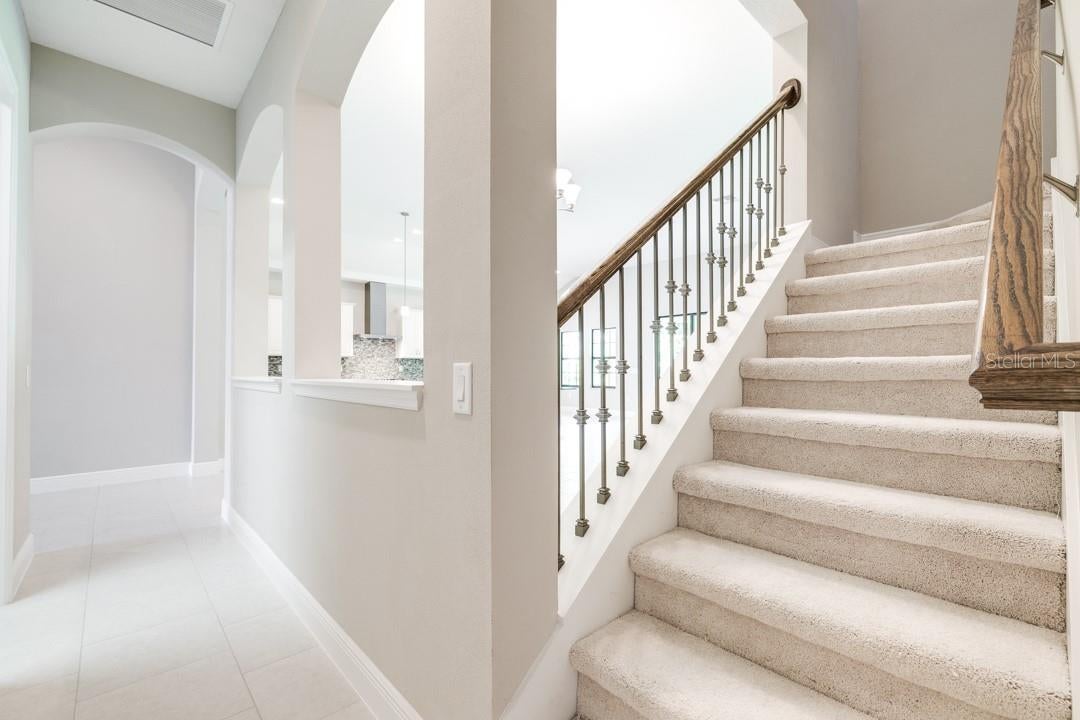 Welcome to LUXURY LIVING at its finest in the beautiful Pristine Lake Preserve. This STUNNING, NEVER BEEN LIVED IN, WESTBAY BISCAYNE II floor plan offers 5 Bedrooms, 4 Full Baths, and a Bonus Room, making it perfect for families or those who love to entertain. From the moment you arrive this home’s curb appeal shines, with a covered entryway and elegant double ornate glass doors setting the tone for the beauty that awaits inside. As you step through the inviting foyer, you are greeted by 12 ft ceilings and an expansive entryway which flows seamlessly into your new home. Walking through the spacious main living areas, you’ll immediately notice the many thoughtful upgrades that elevate this home to a new level of sophistication starting with the extended sliders overlooking a conservation homesite with no rear neighbors. The Kitchen is a showstopper with upgraded built-in appliances, extended kitchen cabinets and the expansive island with its built-in dining table. The great room is ideal for hosting family gatherings or lively get-togethers, and the extended sliders merge indoor and outdoor spaces into one spectacular area. The oversized lanai is designed for ultimate relaxation and entertainment and features outdoor kitchen pre-plumbing so you can create your "perfect" outdoor living space ambiance. The Primary Bedroom is a peaceful retreat, overlooking the quiet backyard. Featuring two walk-in closets, a luxurious oversized walk-in shower, dual sinks and a linen closet for added convenience. This split-bedroom floor plan offers privacy, with two guest bedrooms and a bath located at the front of the home, and a third bedroom with an additional guest bath on the opposite side—perfect for visiting family or friends. Upstairs, the 5th bedroom, full bath, and BONUS ROOM create a private living space, ideal for multi-generational living or as a sanctuary for your guests! Living in Pristine Lake Preserve offers NO CDD and LOW HOA fees. With access to the spring fed lake and private boat ramp, while fishing off the dock, or while playing at the beautifully maintained park, you'll find this inviting community offers the dream lifestyle. This home is the perfect blend of luxury, space, and functionality so schedule your showing today!