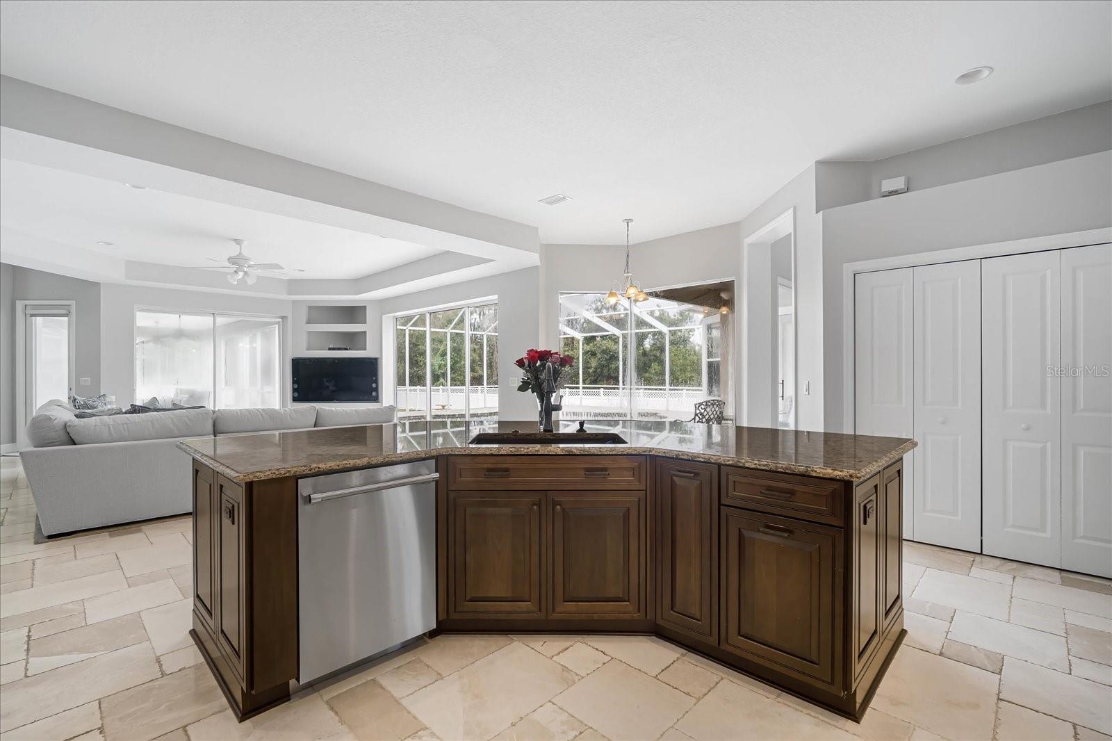 - Ceiling Fans(s), Kitchen/Family Room Combo, Open Floorplan, Primary Bedroom Main Floor, Solid Wood Cabinets, Split Bedroom, Stone Counters, Thermostat, Tray Ceiling(s), Vaulted Ceiling(s), Walk-In Closet(s), Wet Bar