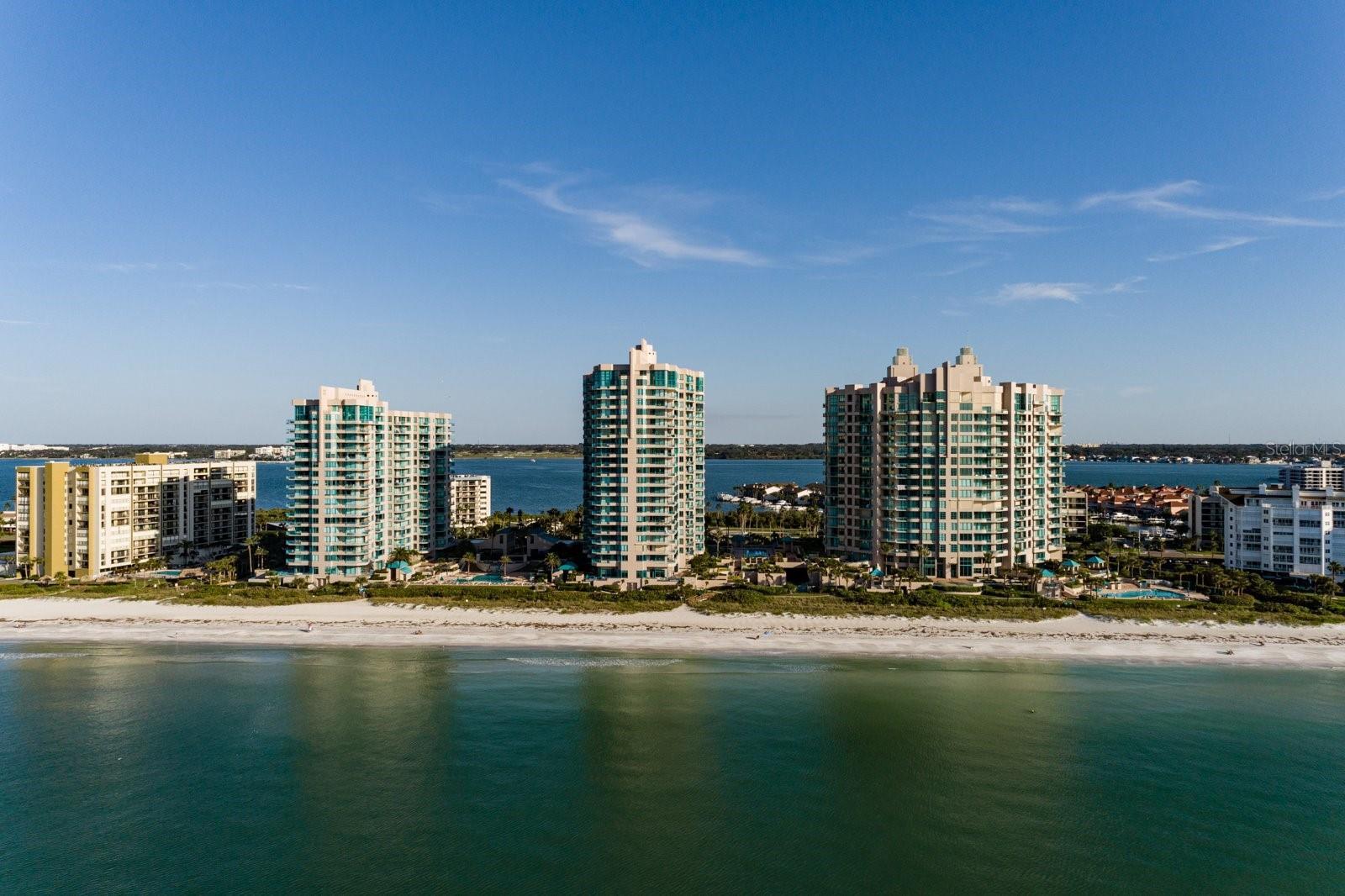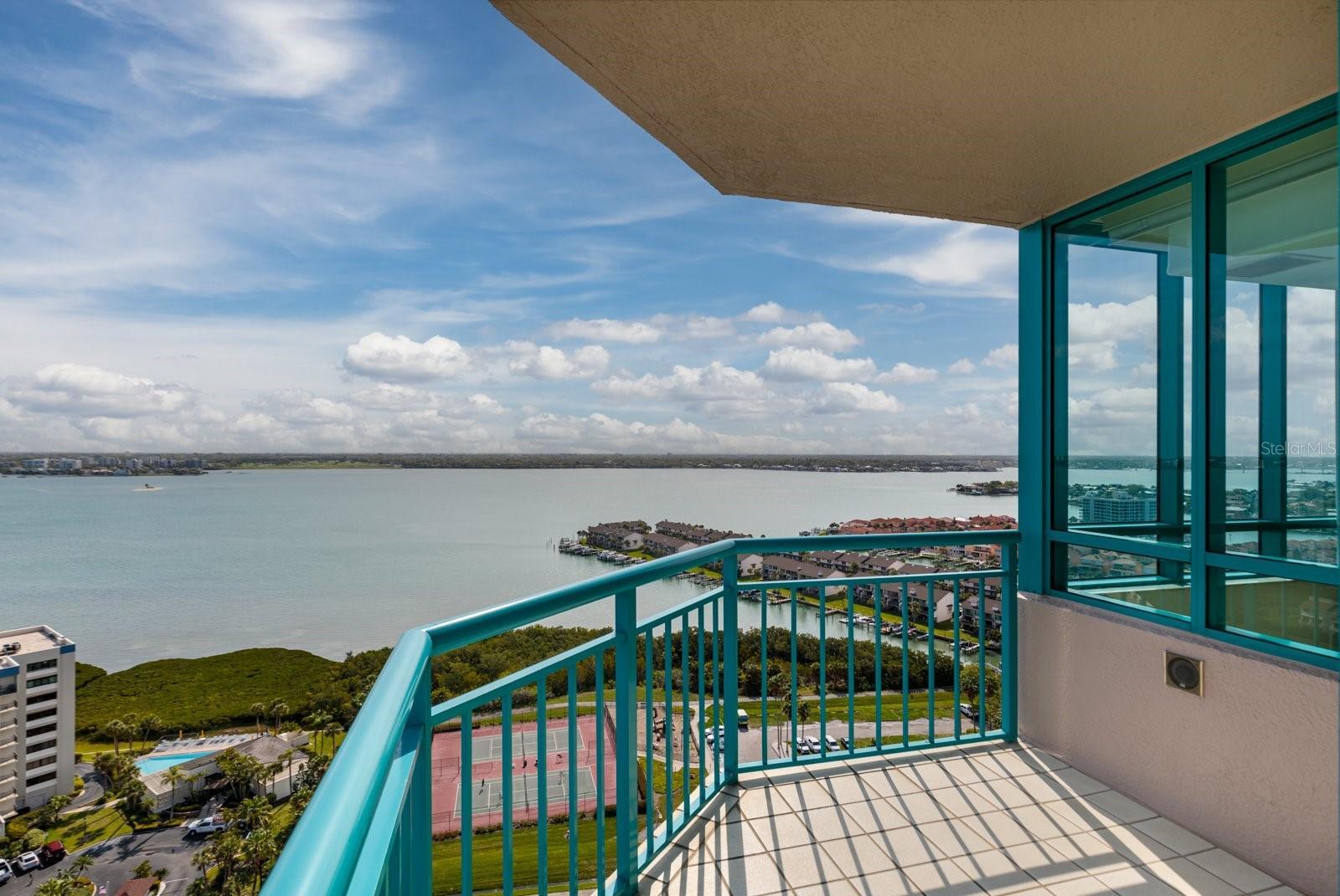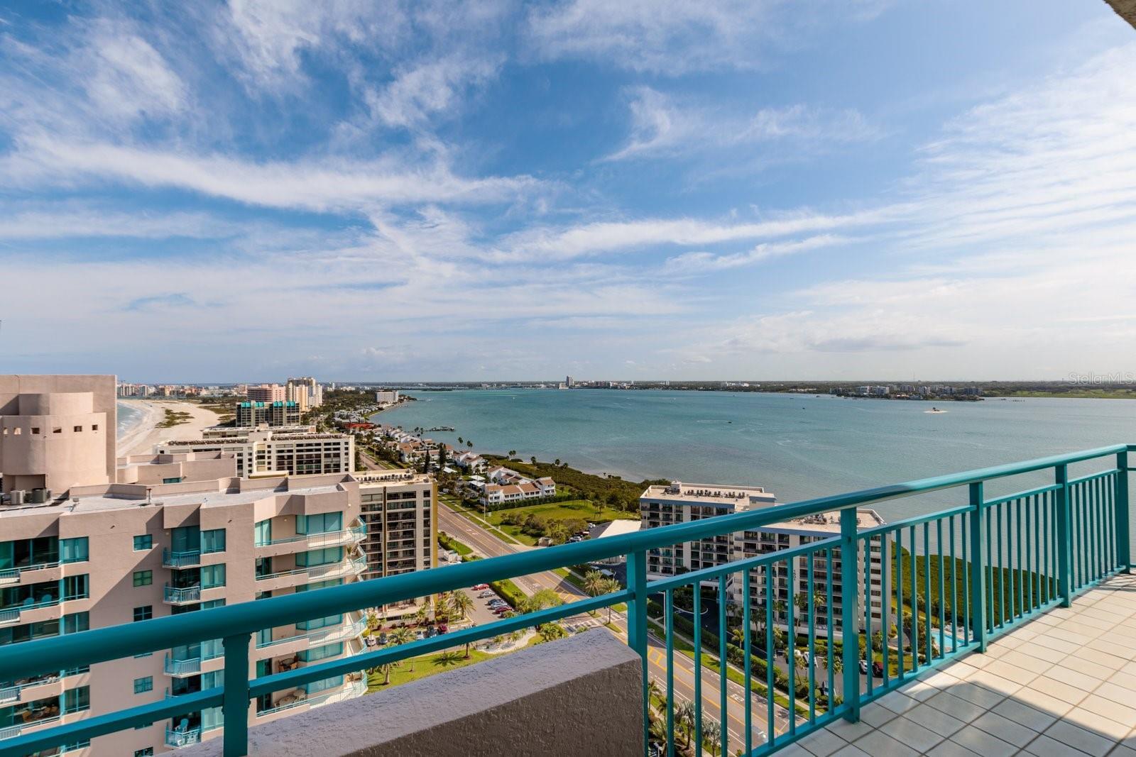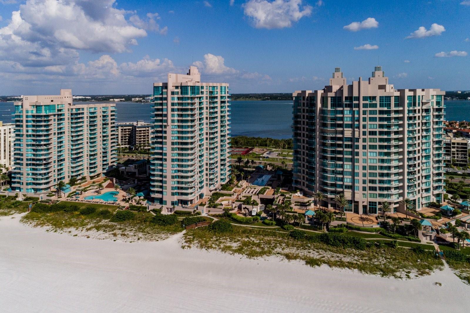RARELY AVAILABLE 2 STORY PENTHOUSE, CORNER UNIT WITH COVETED 4 CAR PRIVATE GARAGE #14, WITHIN THE PARKING GARAGE. Located on desirable Sand Key this condo has soaring 18 ft ceilings in the living room with window wall overlooking the Gulf of Mexico. Wood burning fireplace creates beautiful ambiance for those occasional cool nights. Wrap around balconies afford 270 degree views of the Azure Gulf of Mexico and the nighttime lights of the Intracoastal. Luxurious 3 bedrooms & 3.5 baths recently updated in Chic Coastal Style by Decker Ross Interiors . Also has a den/office on the main level. European Travertine floors on the main level with wood look tile on the stairs & 2nd level. Open kitchen has black granite tops, white cabinets, cooking island & stainless steel appliances. Kitchen opens to dining area Fantastic water views from every room. See all the way north to Honeymoon Island & south to the Sunshine Skyway Bridge. Relax on any of your balconies, while having a cool drink, feeling the tropical breezes. Birds eye view of the fireworks for the holidays up & down the beach & all the way to Dunedin, Tampa, St Pete & beyond. Dual water heaters, dual A/C units. Large laundry room with laundry tub along with front loading washer & dryer. The World Class community of Ultimar on Sand Key offers true resort style living with 3 geo-thermal heated pools & spas (one is a lap pool). 3 tennis courts, pickle ball, basketball court, putting green, grill area, fire pit area, shuffleboard, corn hole, club room, median room, billiards room, social room, steam & sauna, 24hr guard gated. Walk to great restaurants & shops or catch the beach trolley right !out in front of the building. A short drive to Tampa & the airport plus all the sports venues of our championship teams. See virtual tour! Call for your private showing! Start Living the Florida Beach Lifestyle Today! Ultimar 2 has been through Milestone & SIRS Inspections. No issues. They are fully funded & their fees did not go up for 2025 despite the insurance increase.
