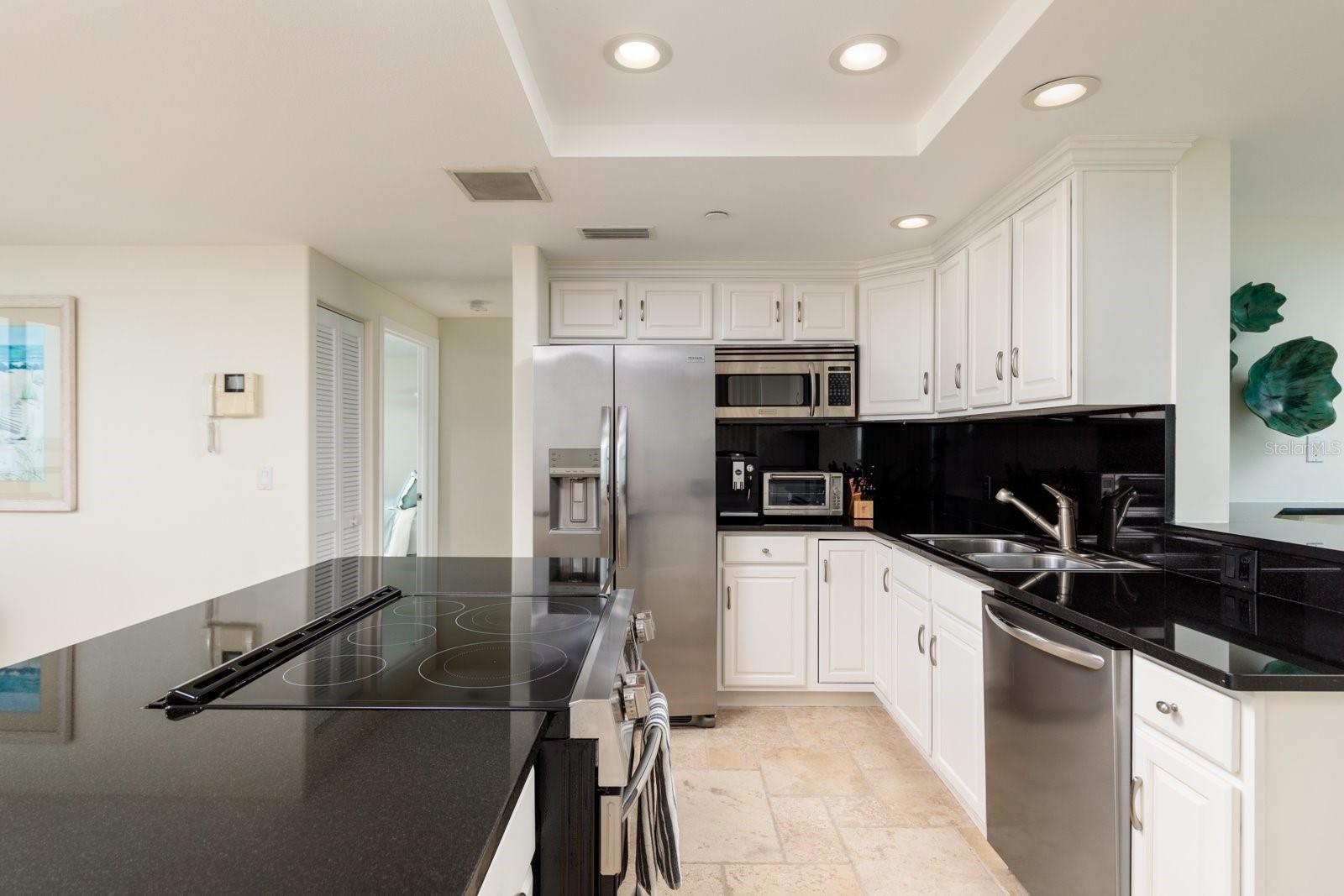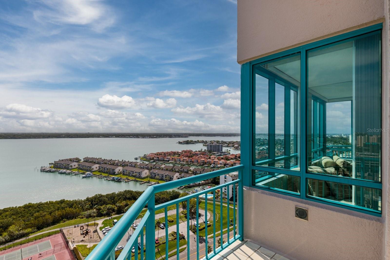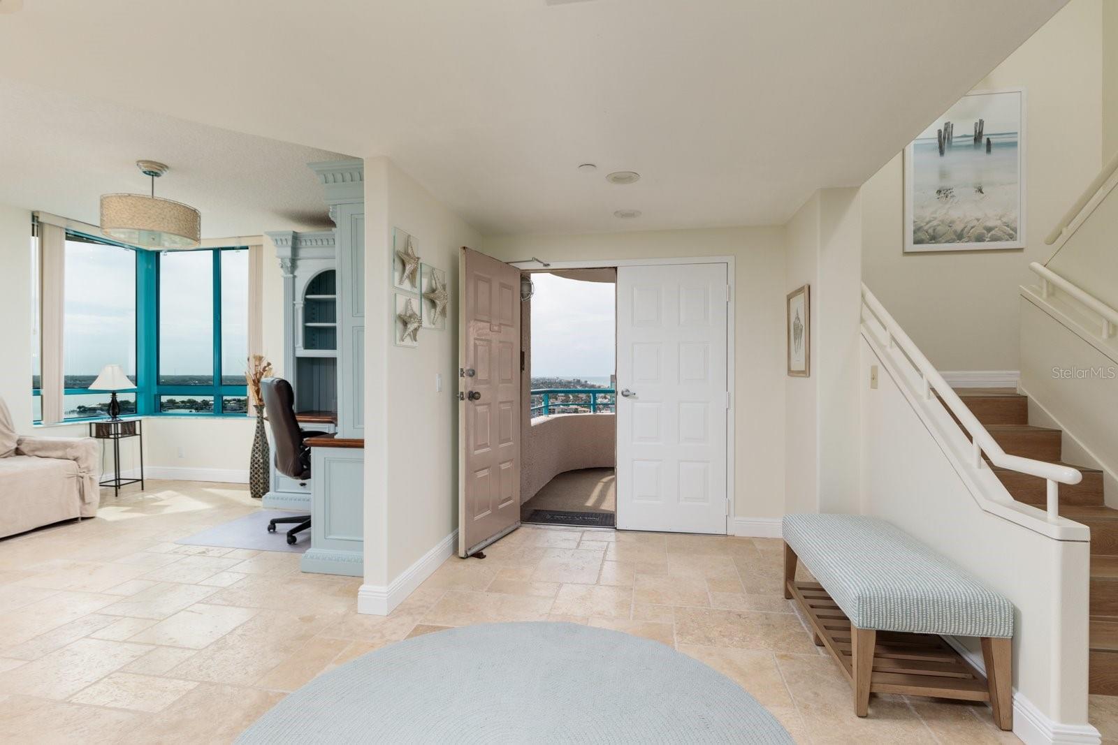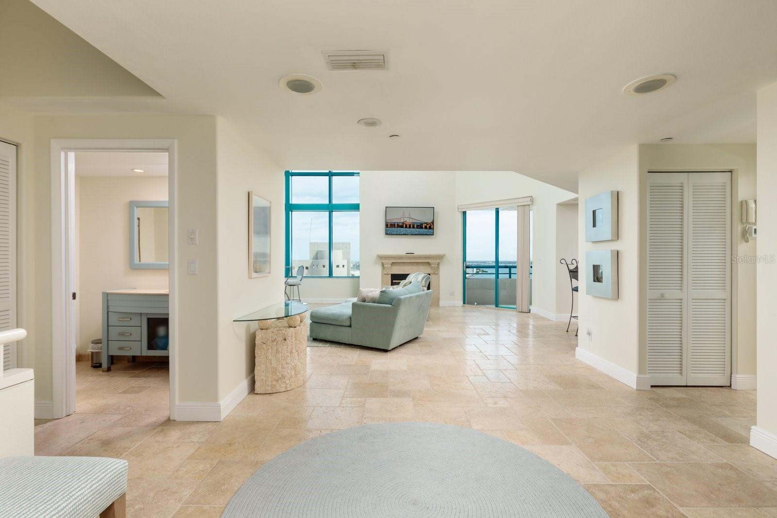 RARELY AVAILABLE 2 STORY PENTHOUSE, CORNER UNIT WITH COVETED 4 CAR PRIVATE GARAGE #14, WITHIN THE PARKING GARAGE. Located on desirable Sand Key this condo has soaring 18 ft ceilings in the living room with window wall overlooking the Gulf of Mexico. Wood burning fireplace creates beautiful ambiance for those occasional cool nights. Wrap around balconies afford 270 degree views of the Azure Gulf of Mexico and the nighttime lights of the Intracoastal. Luxurious 3 bedrooms & 3.5 baths recently updated in Chic Coastal Style by Decker Ross Interiors . Also has a den/office on the main level. European Travertine floors on the main level with wood look tile on the stairs & 2nd level. Open kitchen has black granite tops, white cabinets, cooking island & stainless steel appliances. Kitchen opens to dining area Fantastic water views from every room. See all the way north to Honeymoon Island & south to the Sunshine Skyway Bridge. Relax on any of your balconies, while having a cool drink, feeling the tropical breezes. Birds eye view of the fireworks for the holidays up & down the beach & all the way to Dunedin, Tampa, St Pete & beyond. Dual water heaters, dual A/C units. Large laundry room with laundry tub along with front loading washer & dryer. The World Class community of Ultimar on Sand Key offers true resort style living with 3 geo-thermal heated pools & spas (one is a lap pool). 3 tennis courts, pickle ball, basketball court, putting green, grill area, fire pit area, shuffleboard, corn hole, club room, median room, billiards room, social room, steam & sauna, 24hr guard gated. Walk to great restaurants & shops or catch the beach trolley right !out in front of the building. A short drive to Tampa & the airport plus all the sports venues of our championship teams. See virtual tour! Call for your private showing! Start Living the Florida Beach Lifestyle Today! Ultimar 2 has been through Milestone & SIRS Inspections. No issues. They are fully funded & their fees did not go up for 2025 despite the insurance increase.