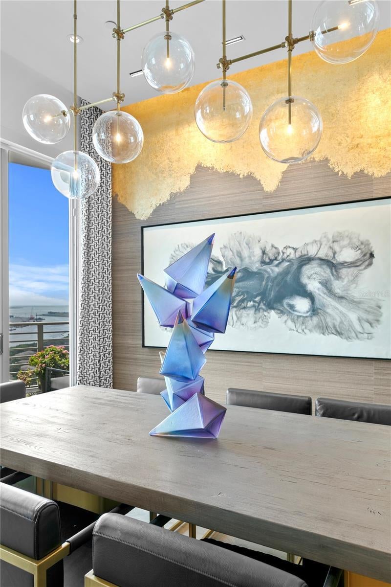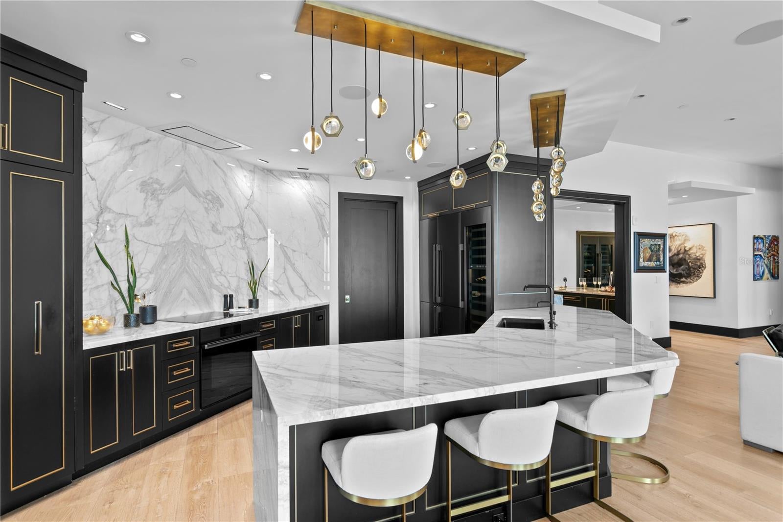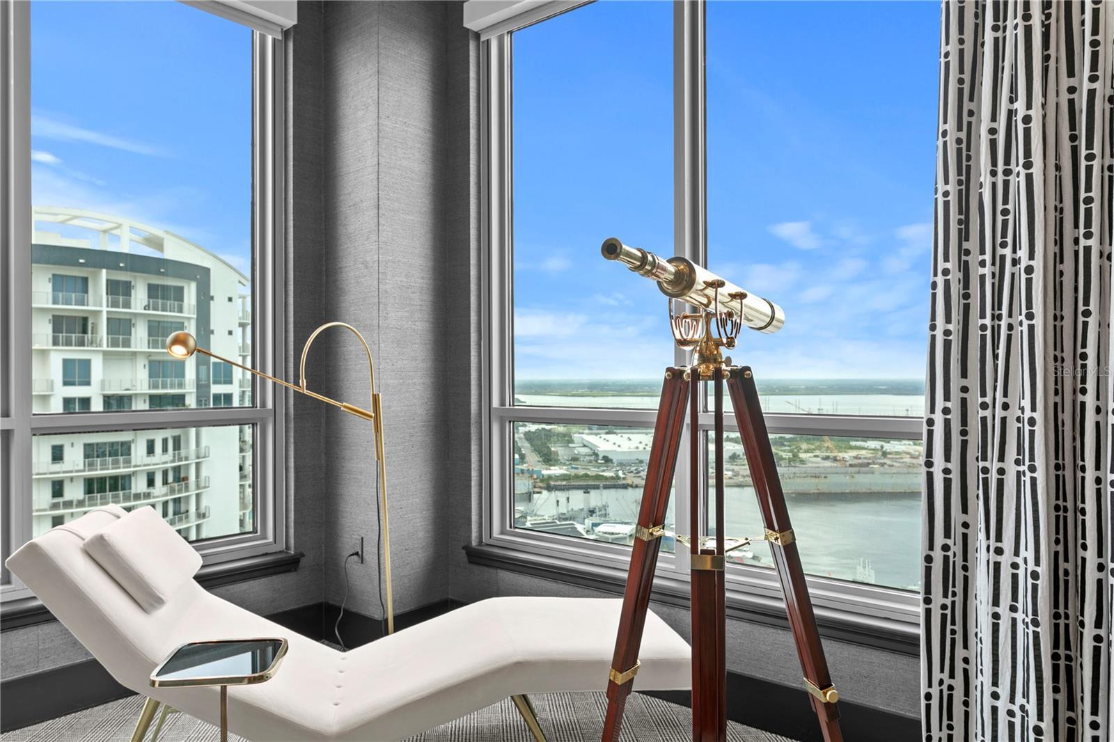 Welcome to 449 S 12th St, Unit 2702, Tampa—your penthouse in the sky. Nestled on the 27th floor of the prestigious Towers of Channelside, this exquisite residence offers a luxurious blend of comfort and style. Spanning 2,995 sqft, this expansive 3-bedroom, 3-bathroom, with two private balconies with nearly 500 sqft of private outdoor space. This home invites you to experience unparalleled living with breathtaking views, high-end finishes, and an ambiance of sophistication. Whether entertaining guests or seeking a private retreat, this penthouse delivers an elevated lifestyle in one of Tampa's most exclusive addresses. Upon entering, you’re greeted by an immersive whole-home audio system, seamlessly integrated into every room for an unparalleled auditory experience. The ceilings have been raised to their maximum height, creating a spacious and airy atmosphere that feels both expansive and intimate. In the versatile, large, bedrooms, Missoni wool carpeting provides comfort and understated luxury with each having en-suite bathrooms. The primary bedroom has more than enough room for a sitting area while also encompassing close to floor to ceiling windows to allow yourself to take in the water views. The primary bathroom is a true masterpiece. It features custom Ann Sacks tile on both the floors and walls, a unique Catchpool and Rye tub, and a stunning smoked mirror feature wall, all contributing to an open, airy, and undeniably sophisticated vibe. The secondary bathrooms have been reimagined with custom Walker Zanger tile, bringing a refined aesthetic to these spaces. Custom millwork in a sophisticated smoke color with bronze inlay adds depth and character throughout the home. The kitchen and entertaining areas are equipped with top-of-the-line Dacor appliances and rare Blanco Carrera countertops, with a full splash on the feature wall, exuding elegance and functionality. The living room is a work of art, featuring a stunning wall clad in hand-carved Nero Marquina marble with inlaid bronze details. The dining room offers a luxurious experience with its custom Phillip Jeffries horsehair feature wall, accented by a gold leaf abstract ombre detail. The column in the main living area adds warmth and texture with vintage, custom-colored terracotta bricks, a nod to timeless craftsmanship. The entire home is unified by custom French oak DuChateau wood flooring, with dynamic light coves that accentuate the sleek architectural lines, creating a play of light and shadow that enhances the home’s modern aesthetic. This penthouse is not just a living space, but an experience—luxurious, intimate, and truly unique. Every detail has been thoughtfully designed to showcase the true value and artistry of this exceptional home. This home allows for an exclusive lifestyle, complemented by top-tier amenities. Enjoy the resort-style pool with a spa and waterfall, perfect for relaxing or entertaining. This incredible property also includes 2 designated parking spaces as well as a separate storage room. Benefit from 24-hour concierge service and on-site property management, ensuring that your every need is met with the highest level of care. A designated parking garage provides convenience and security for residents. Situated in the heart of Tampa, this residence is just moments away from premier attractions like Amalie Arena, the Tampa Bay Riverwalk, and Sparkman Wharf, placing the best of the city at your doorstep.