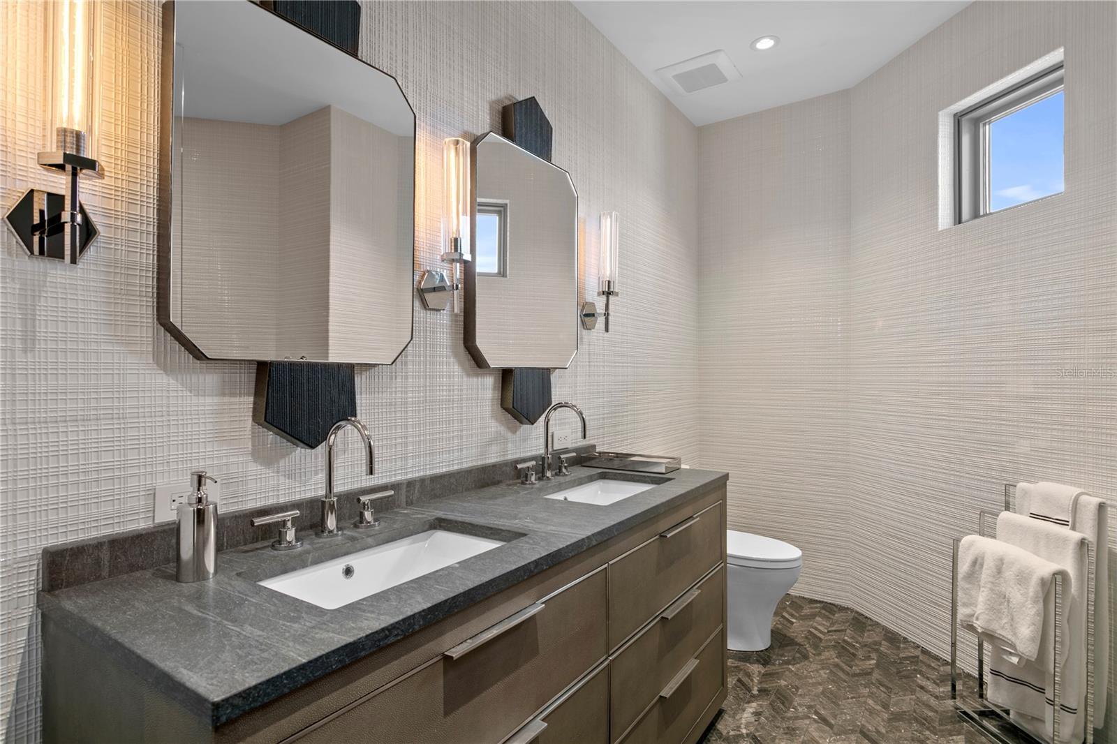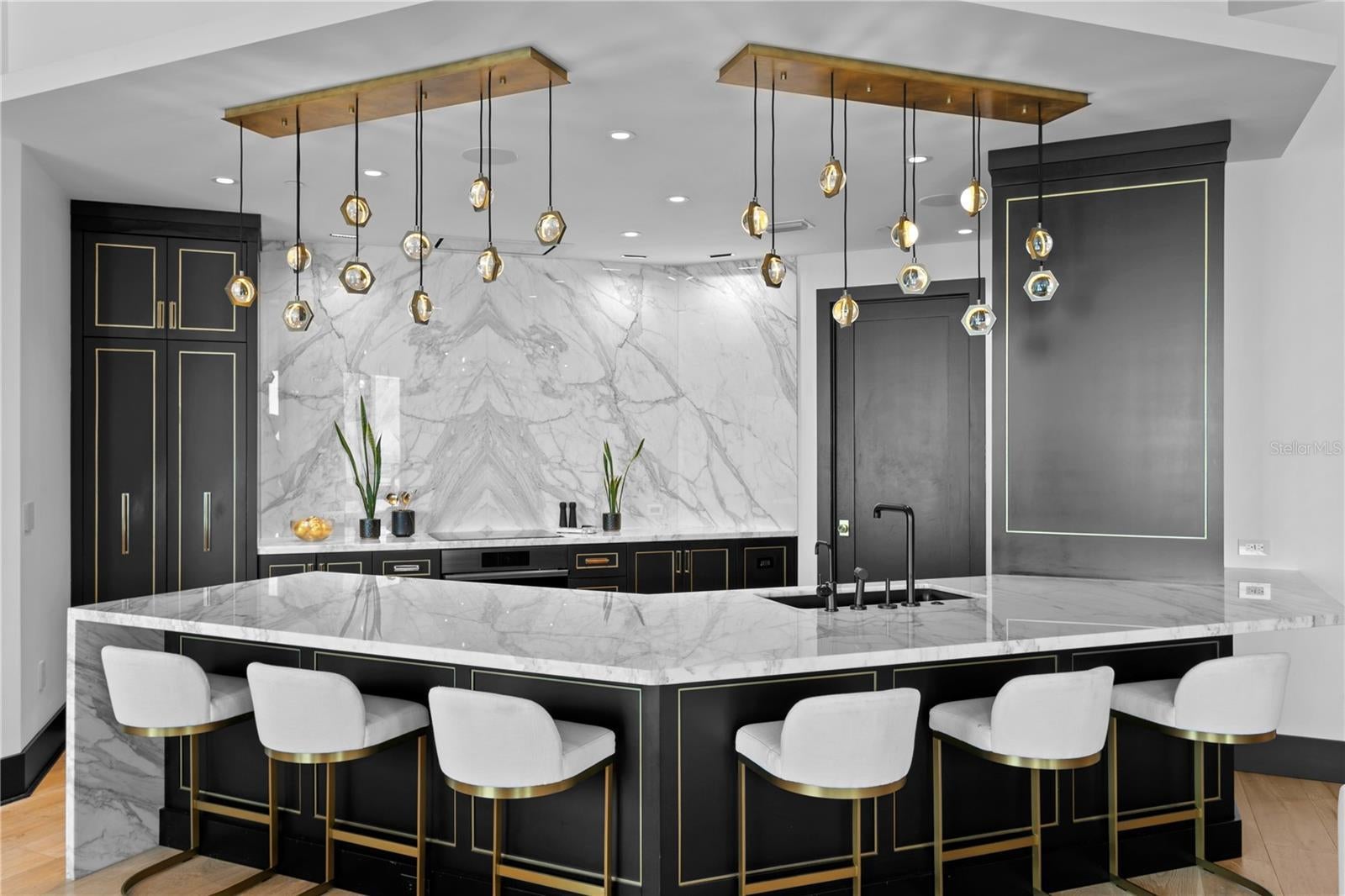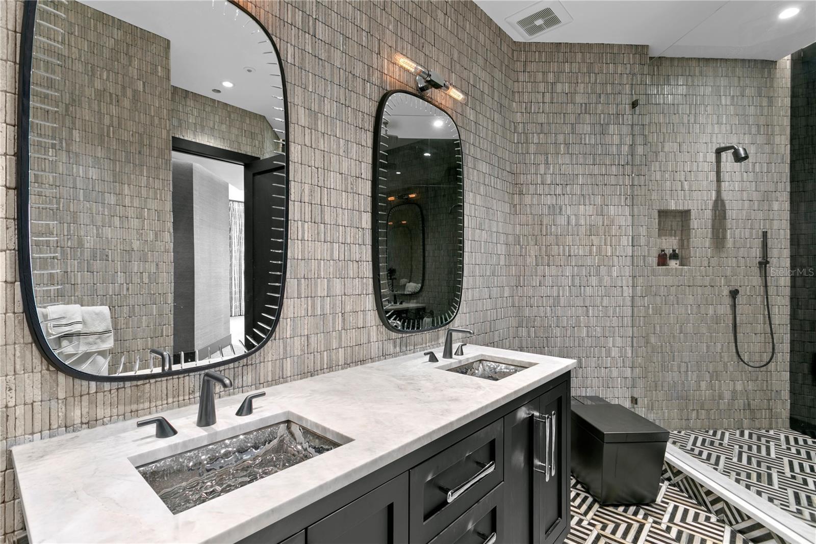 Welcome to 449 S 12th St, Unit 2702, Tampa—your penthouse in the sky. Nestled on the 27th floor of the prestigious Towers of Channelside, this exquisite residence offers a luxurious blend of comfort and style. Spanning 2,995 sqft, this expansive 3-bedroom, 3-bathroom, with two private balconies with nearly 500 sqft of private outdoor space. This home invites you to experience unparalleled living with breathtaking views, high-end finishes, and an ambiance of sophistication. Whether entertaining guests or seeking a private retreat, this penthouse delivers an elevated lifestyle in one of Tampa's most exclusive addresses. Upon entering, you’re greeted by an immersive whole-home audio system, seamlessly integrated into every room for an unparalleled auditory experience. The ceilings have been raised to their maximum height, creating a spacious and airy atmosphere that feels both expansive and intimate. In the versatile, large, bedrooms, Missoni wool carpeting provides comfort and understated luxury with each having en-suite bathrooms. The primary bedroom has more than enough room for a sitting area while also encompassing close to floor to ceiling windows to allow yourself to take in the water views. The primary bathroom is a true masterpiece. It features custom Ann Sacks tile on both the floors and walls, a unique Catchpool and Rye tub, and a stunning smoked mirror feature wall, all contributing to an open, airy, and undeniably sophisticated vibe. The secondary bathrooms have been reimagined with custom Walker Zanger tile, bringing a refined aesthetic to these spaces. Custom millwork in a sophisticated smoke color with bronze inlay adds depth and character throughout the home. The kitchen and entertaining areas are equipped with top-of-the-line Dacor appliances and rare Blanco Carrera countertops, with a full splash on the feature wall, exuding elegance and functionality. The living room is a work of art, featuring a stunning wall clad in hand-carved Nero Marquina marble with inlaid bronze details. The dining room offers a luxurious experience with its custom Phillip Jeffries horsehair feature wall, accented by a gold leaf abstract ombre detail. The column in the main living area adds warmth and texture with vintage, custom-colored terracotta bricks, a nod to timeless craftsmanship. The entire home is unified by custom French oak DuChateau wood flooring, with dynamic light coves that accentuate the sleek architectural lines, creating a play of light and shadow that enhances the home’s modern aesthetic. This penthouse is not just a living space, but an experience—luxurious, intimate, and truly unique. Every detail has been thoughtfully designed to showcase the true value and artistry of this exceptional home. This home allows for an exclusive lifestyle, complemented by top-tier amenities. Enjoy the resort-style pool with a spa and waterfall, perfect for relaxing or entertaining. This incredible property also includes 2 designated parking spaces as well as a separate storage room. Benefit from 24-hour concierge service and on-site property management, ensuring that your every need is met with the highest level of care. A designated parking garage provides convenience and security for residents. Situated in the heart of Tampa, this residence is just moments away from premier attractions like Amalie Arena, the Tampa Bay Riverwalk, and Sparkman Wharf, placing the best of the city at your doorstep.