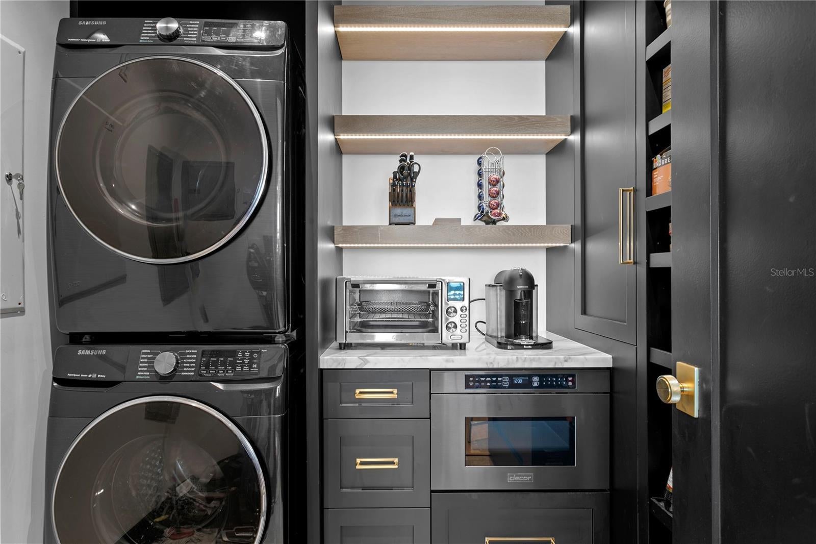 - Built-In Oven, Cooktop, Disposal, Dryer, Electric Water Heater, Exhaust Fan, Microwave, Refrigerator, Washer, Wine Refrigerator